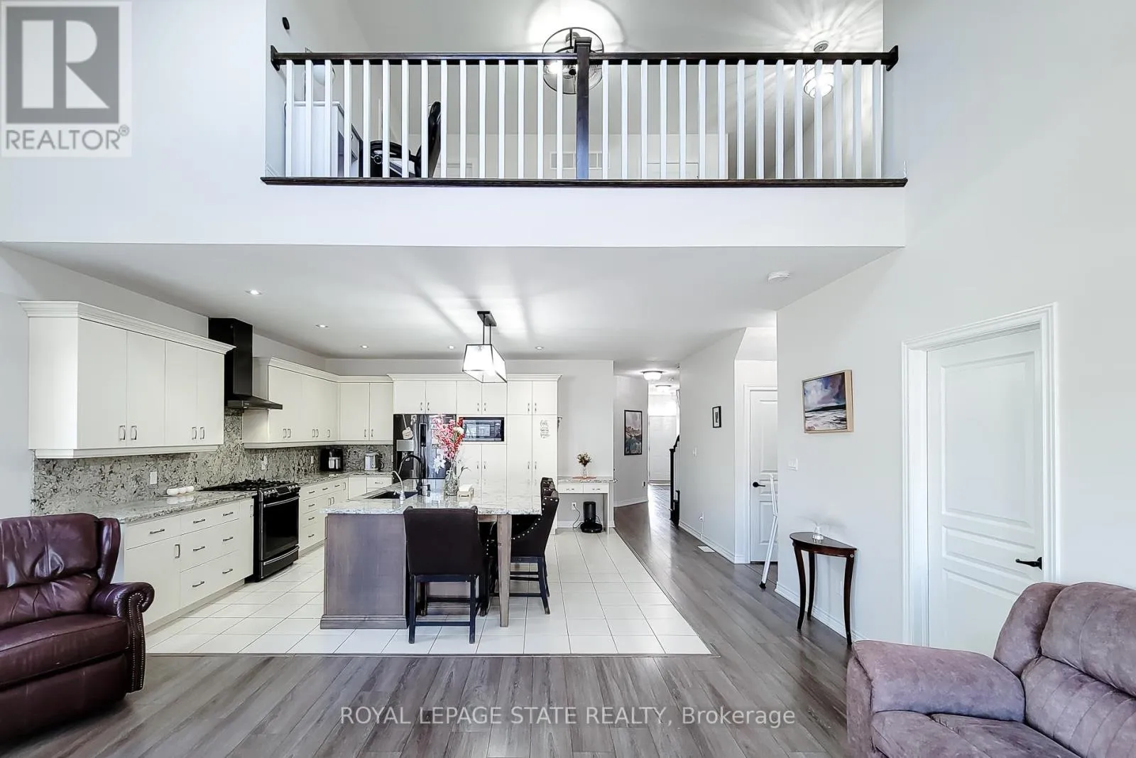 Cross Streets: Harvest Gate. ** Directions: Harvest Gate/ Anastasia. Gorgeous bungaloft offering 3+2 bedrooms, 4 full bathrooms, and a fully finished basement. Built in 2017 by Phelps Homes. Recent upgrades (2024) include a heat pump, water softener, water heater, and new attic insulation-ensuring low utility costs with no rentals; everything is owned. The home features a beautiful interlocking stone driveway and a welcoming foyer with ceramic flooring and a walk-in closet, leading into an open-concept main floor. The eat-in kitchen offers ample cabinetry, black stainless steel appliances, granite countertops and backsplash, soft-close cabinets, and a large island with a breakfast bar. The great room showcases vaulted ceilings and a sliding patio door that opens to the backyard. The main floor primary bedroom includes a spacious walk-in closet and a luxurious 5-piece ensuite with double vanity and glass shower. An additional main floor bedroom also features a walk-in closet, along with a 4-piece bathroom on the main level. An oak staircase leads to the second-floor loft overlooking the great room, complete with another bedroom with walk-in closet and a 4-piece bathroom. The double car garage provides inside entry to a mudroom and separate laundry room. The fully finished basement includes two additional bedrooms with luxury vinyl flooring, a 4-piece bathroom with ensuite privilege, and a spacious recreation room-perfect for family living. Enjoy the extensively landscaped backyard, featuring a two-tiered deck, interlock patio, outdoor gas fireplace, and gas BBQ hookup-ideal for entertaining. (id:27476)