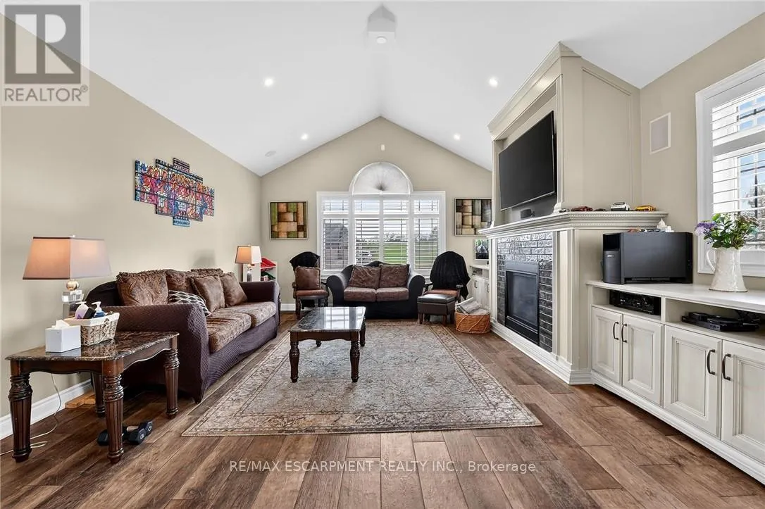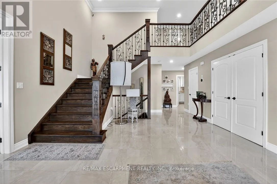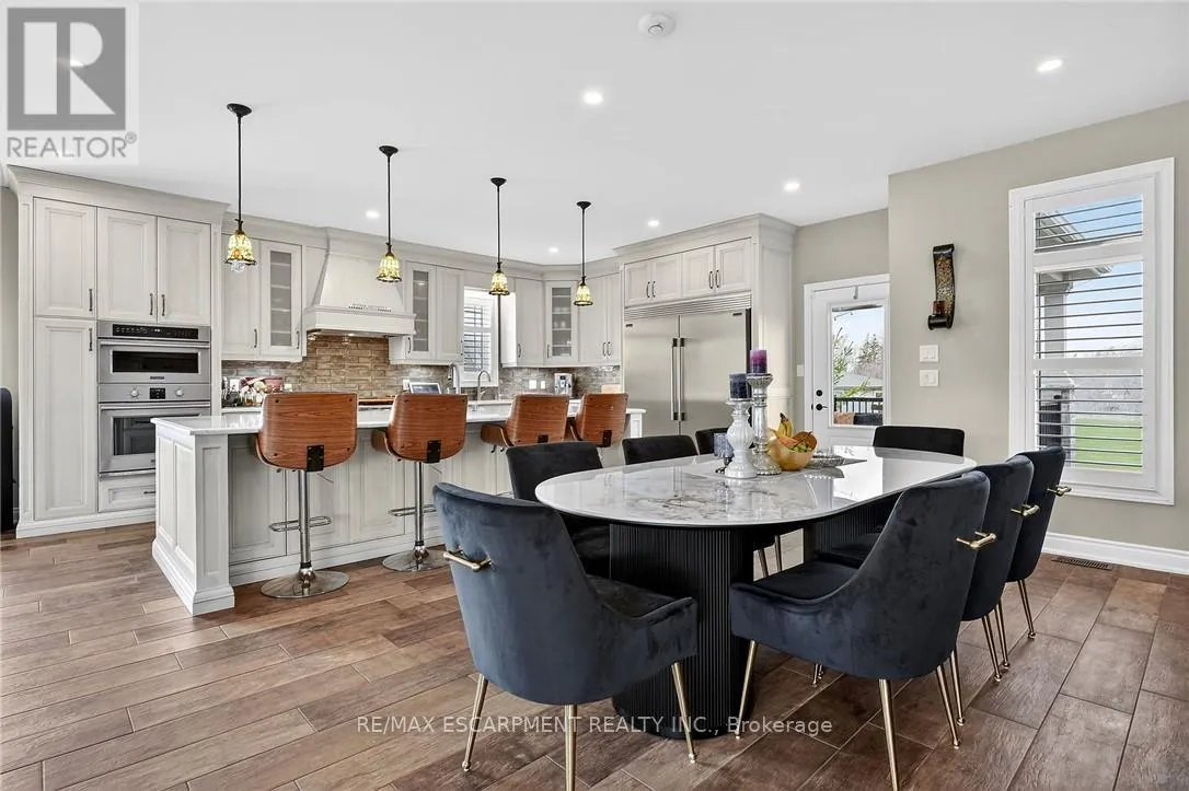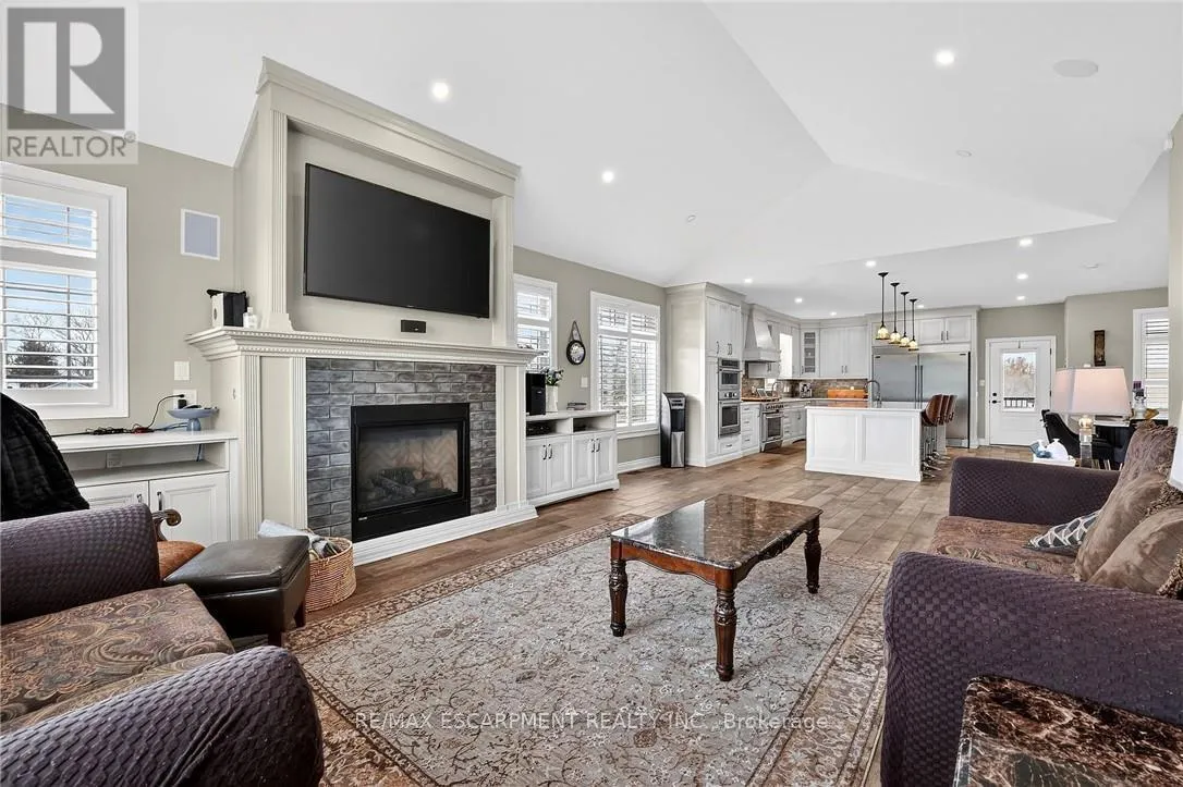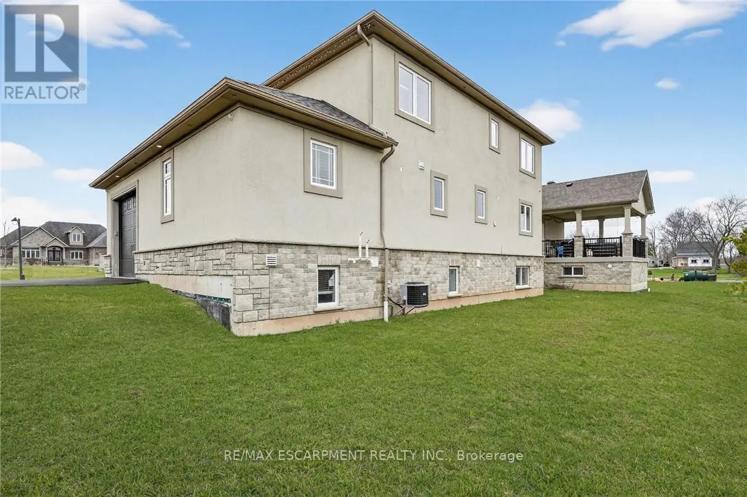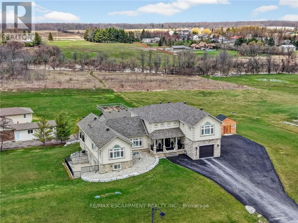 Cross Streets: St Ann's Road. ** Directions: Hwy 20 to Sixteen Rd, turn left to St Ann's Road, turn right on Attema Crescent. This custom built home commands attention. Set on a spacious 1 acre lot in the community of St. Anns, this stunning 2-storey home delivers over 6,500 sq ft of living space and two in-law suites that are ideal for multi-generational living. This home combines scale, craftsmanship, and a level of interior finish rarely found at any price point in West Lincoln. From the moment you step inside, the level of craftsmanship is evident. A grand two-storey foyer features polished tile and a dark hardwood staircase with iron spindles. The main level flows seamlessly between the great room, kitchen, and dining area. The chef's kitchen is a true showpiece: custom soft-grey cabinetry, a large quartz island, professional-grade gas range, double wall oven, and built-in fridge/freezer - with direct walk-out access to a covered outdoor sitting area. Inside or outside, this space was built to entertain. The family room is anchored by a cathedral ceiling, arched transom window, gas fireplace, and built-in media cabinetry. The main floor also features a dedicated home office, den, 3-piece bathroom, laundry room & mud room. The generous primary suite has engineered hardwood floors and a spa-quality ensuite complete with a freestanding soaker tub, frameless glass shower with dual shower heads, a double vanity with dark cabinetry and granite counters. Additional bedrooms are well-sized with engineered hardwood floors and quality finishes.A 5-piece bathroom serves the upper level with a tub and shower combination and double vanity. The finished walk-out basement is home to two completely self-contained in-law suites - each featuring a private kitchen, open-concept living area, bedroom, and full bathroom. The property also includes an attached garage with parking for 3 cars, a large private driveway, a covered front porch, and a shed. Two furnaces service different portions of the home, while one tankless hot water tank services the whole home. (id:27476)