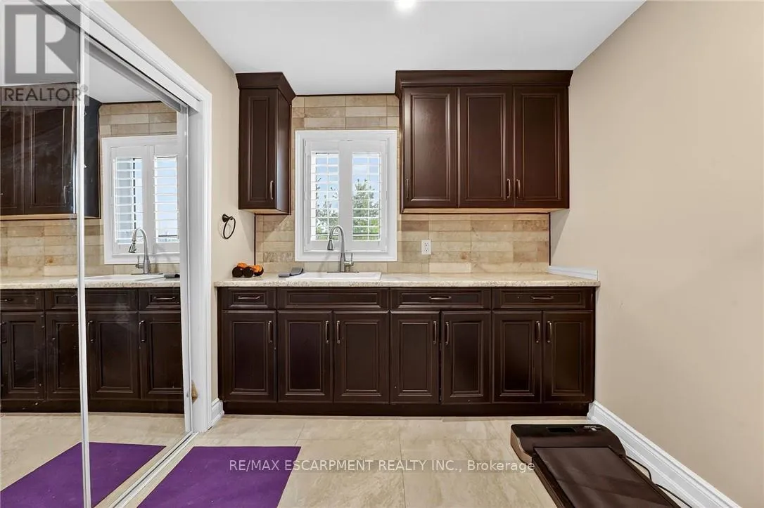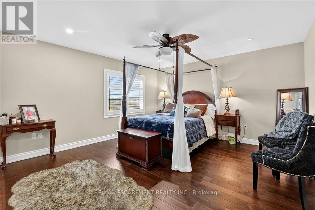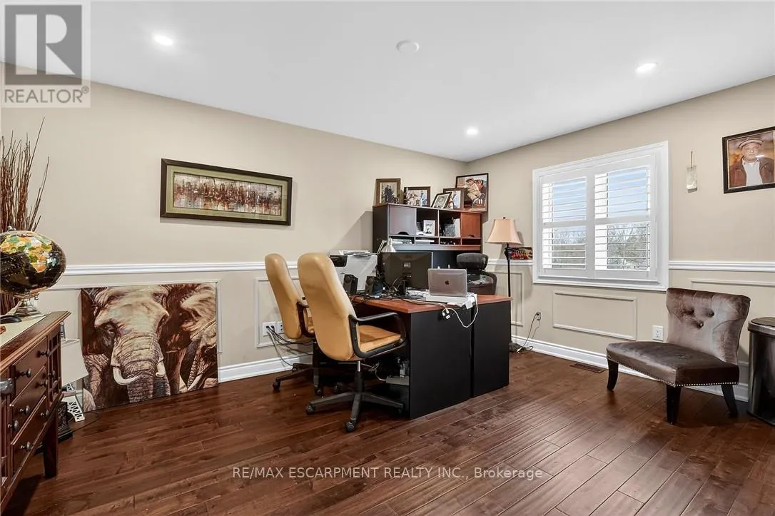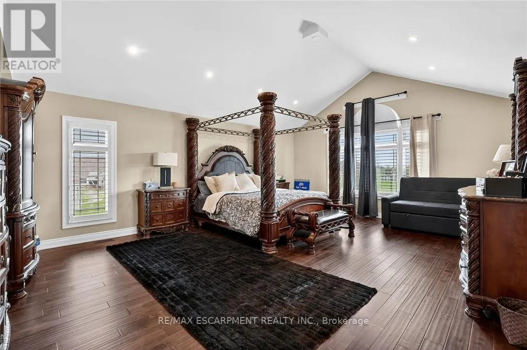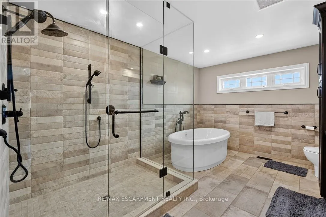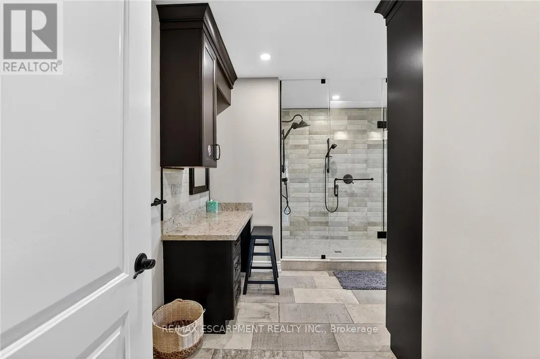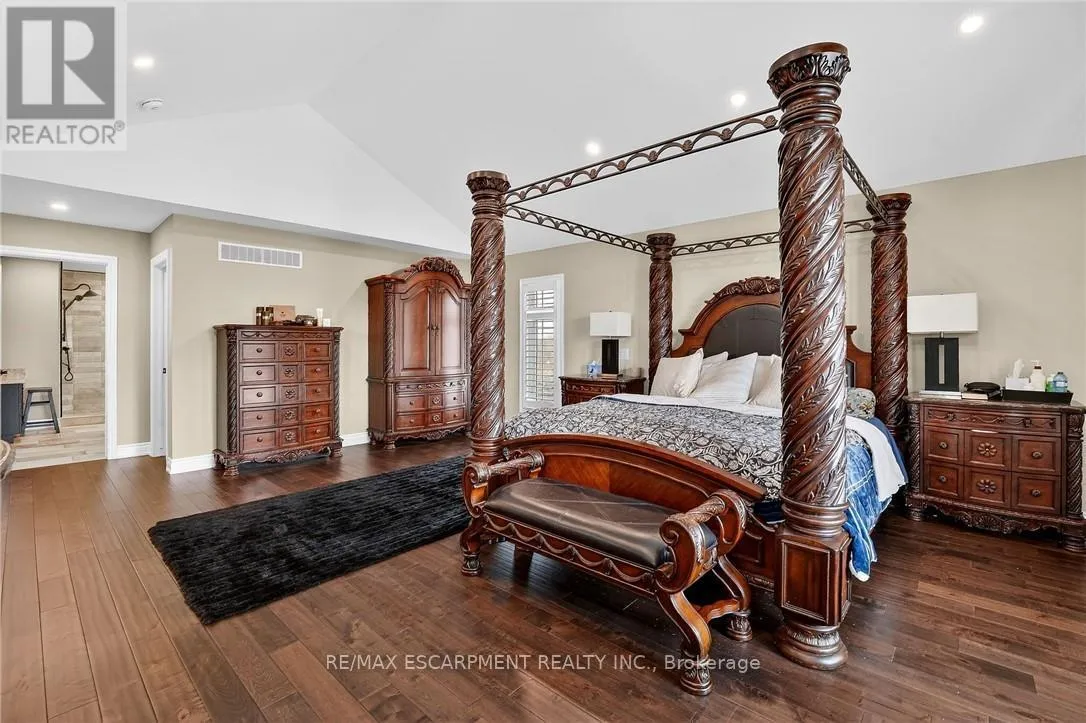 Cross Streets: St Ann's Road. ** Directions: Hwy 20 to Sixteen Rd, turn left to St Ann's Road, turn right on Attema Crescent. This custom built home commands attention. Set on a spacious 1 acre lot in the community of St. Anns, this stunning 2-storey home delivers over 6,500 sq ft of living space and two in-law suites that are ideal for multi-generational living. This home combines scale, craftsmanship, and a level of interior finish rarely found at any price point in West Lincoln. From the moment you step inside, the level of craftsmanship is evident. A grand two-storey foyer features polished tile and a dark hardwood staircase with iron spindles. The main level flows seamlessly between the great room, kitchen, and dining area. The chef's kitchen is a true showpiece: custom soft-grey cabinetry, a large quartz island, professional-grade gas range, double wall oven, and built-in fridge/freezer - with direct walk-out access to a covered outdoor sitting area. Inside or outside, this space was built to entertain. The family room is anchored by a cathedral ceiling, arched transom window, gas fireplace, and built-in media cabinetry. The main floor also features a dedicated home office, den, 3-piece bathroom, laundry room & mud room. The generous primary suite has engineered hardwood floors and a spa-quality ensuite complete with a freestanding soaker tub, frameless glass shower with dual shower heads, a double vanity with dark cabinetry and granite counters. Additional bedrooms are well-sized with engineered hardwood floors and quality finishes.A 5-piece bathroom serves the upper level with a tub and shower combination and double vanity. The finished walk-out basement is home to two completely self-contained in-law suites - each featuring a private kitchen, open-concept living area, bedroom, and full bathroom. The property also includes an attached garage with parking for 3 cars, a large private driveway, a covered front porch, and a shed. Two furnaces service different portions of the home, while one tankless hot water tank services the whole home. (id:27476)