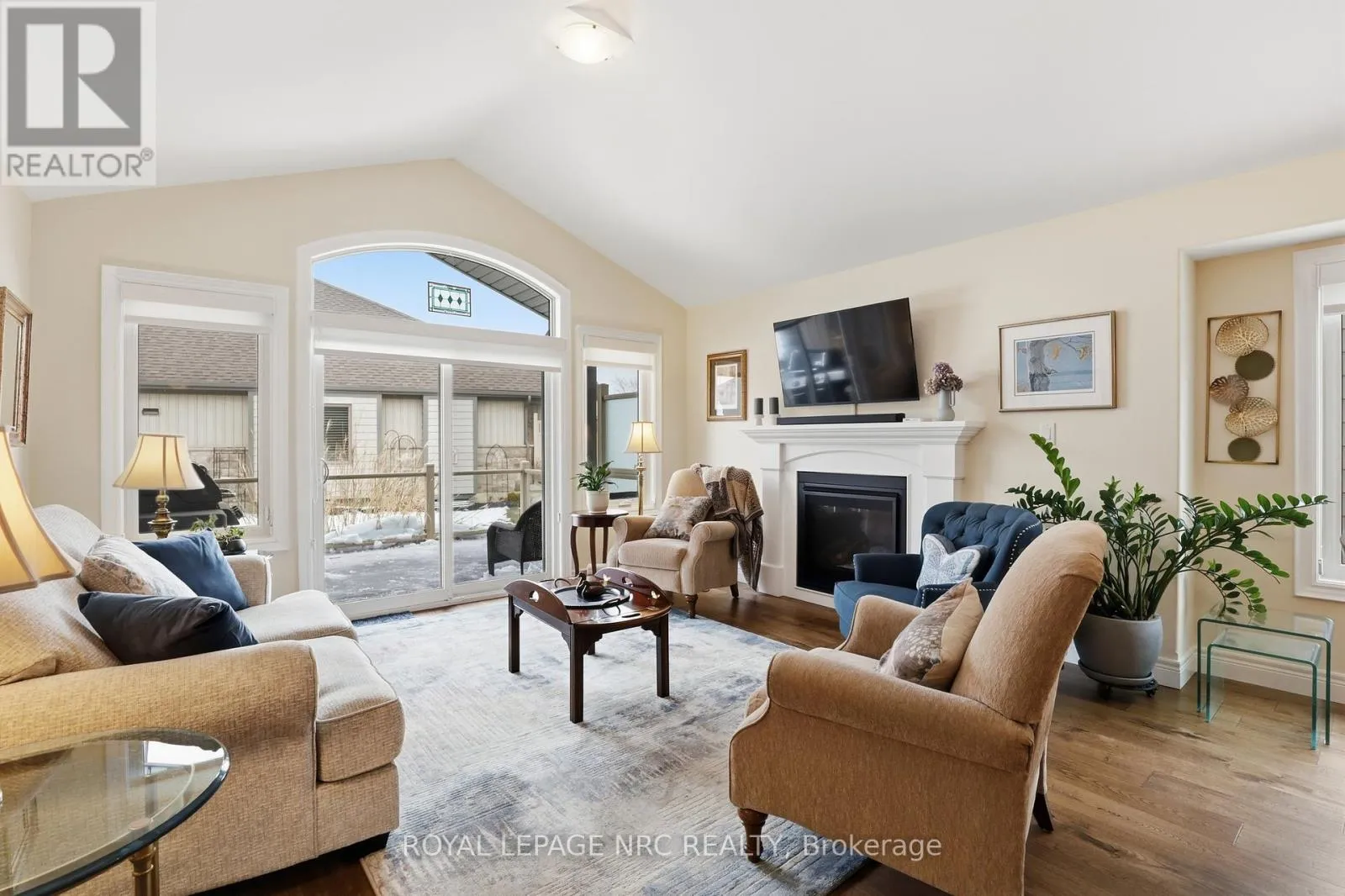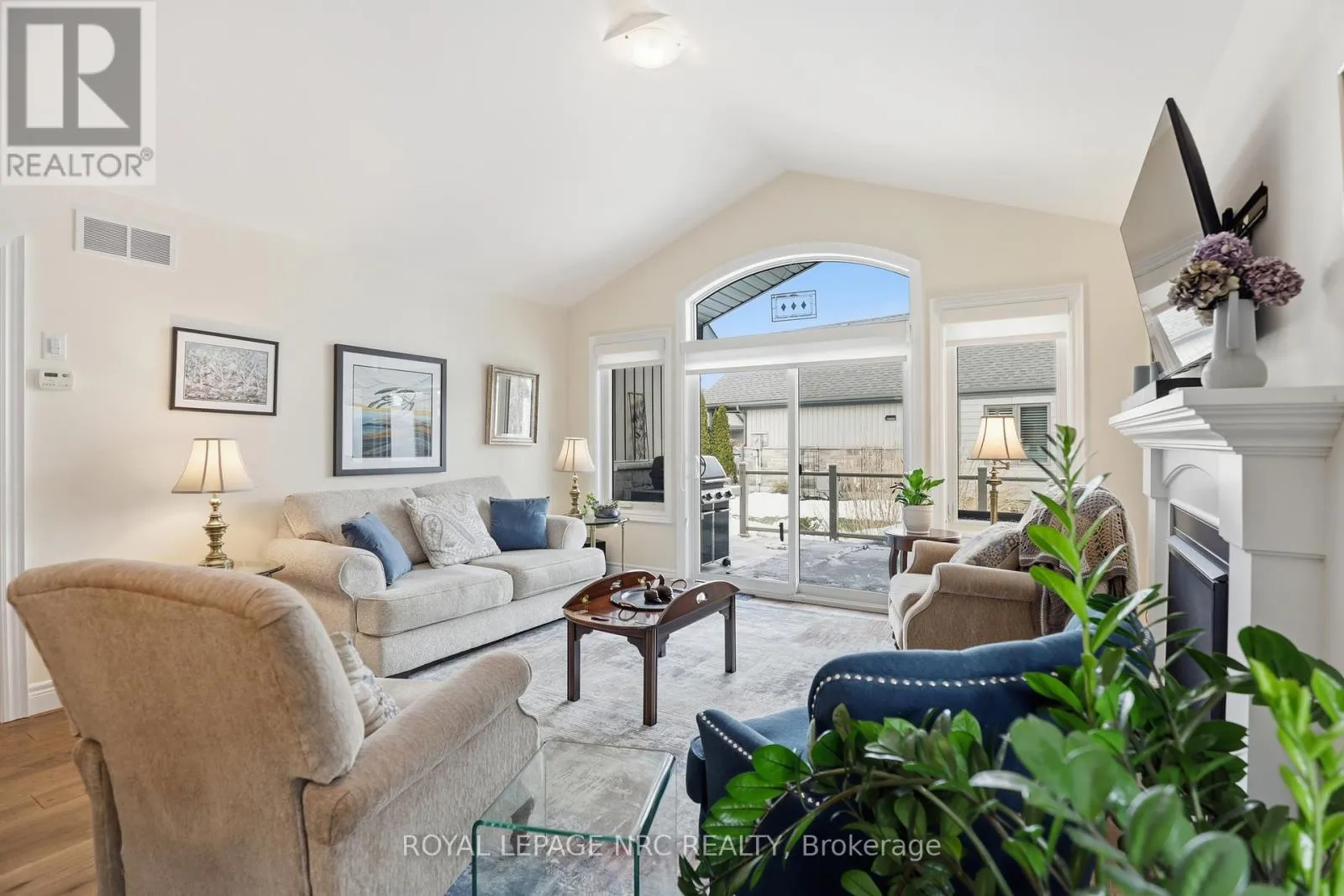 Cross Streets: Shurie Rd and Townline. ** Directions: Townline Rd, South on Shurie. Complex on on the right hand side. Beautifully maintained 2 bedroom, 1.5 bathroom semi-detached home located in a quiet enclave of Smithville. Built in 2018, this modern home offers 1,093 sq ft of thoughtfully designed living space, perfect for anyone seeking low-maintenance living in a growing community. Open concept main floor boasts a spacious living and dining area highlighted by a cozy gas fireplace. The kitchen flows seamlessly into the main living space, making entertaining effortless. A convenient powder room completes the main level. The generous primary bedroom includes a full 3 pc bathroom, offering comfortable and practical living space. Step outside to enjoy the private backyard featuring a walk-out to a 2 tiered patio with modern glass railings. Ideal space for summer barbecues or morning coffee. The unfinished basement provides excellent potential for future expansion, whether you envision a rec room, home office, or additional bedroom space. Low monthly fees that cover lawn maintenance, snow removal and Lawn sprinkler. This is one to see! (id:27476)