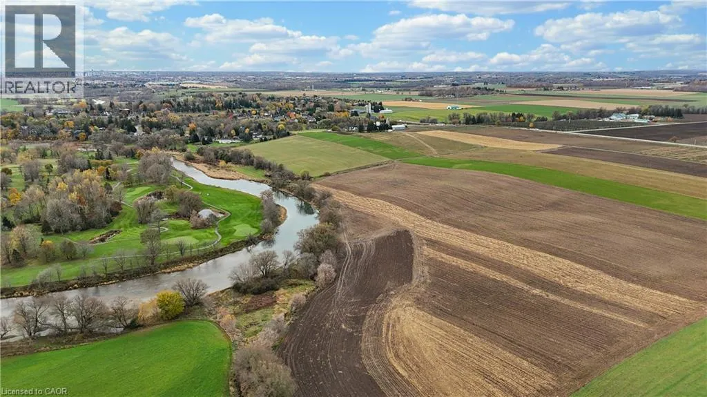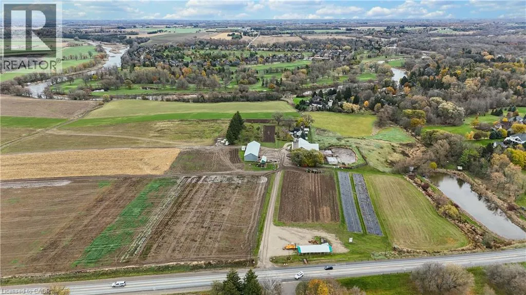 Sawmill Rd to Northfield Dr E Discover an extraordinary 122.4 acre farm estate nestled along the Grand River, offering a rare blend of agricultural opportunity, natural beauty, and limitless potential. Located just minutes from the City of Waterloo, this property provides the perfect balance: close to every amenity yet immersed in the peace, privacy, and serenity of the countryside. The land unfolds in breathtaking fashion, with approximately 118 workable acres of rich, productive soil currently used for a variety of crops including hay, corn, and produce. Rolling fields meet sweeping river vistas, with a pristine golf course across the river ensuring these one of a kind views remain protected for generations. Governed by the GRCA, the propertyâs natural character and scenic beauty are preserved and celebrated. Existing structures include a traditional two storey farmhouse with six bedrooms, multiple functional outbuildings, a barn with hayloft, machine shed with insulated shop, tie stalls, horse stalls and pens, and a chicken coop, all reflecting the charm and heritage of a true working farm. This exceptional offering invites endless possibilities. Whether you envision creating your dream estate or a multi family compound, the expansive landscape and location make it an ideal canvas. Its on farm diversified use zoning also opens the door to unique ventures such as ecotourism, agritourism, or a stunning event and wedding venue, all while maintaining the landâs agricultural purpose. A property of this scale and setting is a rare opportunity in Waterloo Region, a place where natural splendor, agricultural legacy, and future potential unite in perfect harmony. (id:27476)