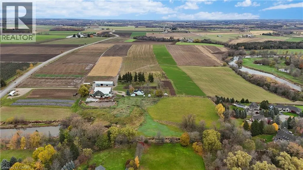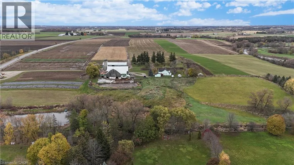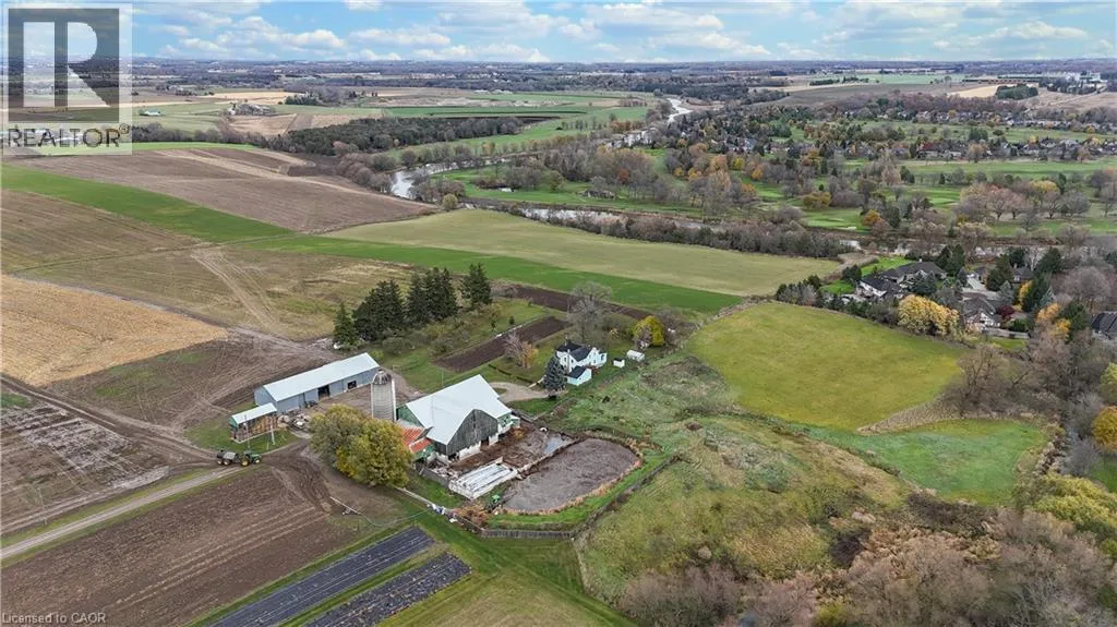 Sawmill Rd to Northfield Dr E Discover an extraordinary 122.4 acre farm estate nestled along the Grand River, offering a rare blend of agricultural opportunity, natural beauty, and limitless potential. Located just minutes from the City of Waterloo, this property provides the perfect balance: close to every amenity yet immersed in the peace, privacy, and serenity of the countryside. The land unfolds in breathtaking fashion, with approximately 118 workable acres of rich, productive soil currently used for a variety of crops including hay, corn, and produce. Rolling fields meet sweeping river vistas, with a pristine golf course across the river ensuring these one of a kind views remain protected for generations. Governed by the GRCA, the propertyâs natural character and scenic beauty are preserved and celebrated. Existing structures include a traditional two storey farmhouse with six bedrooms, multiple functional outbuildings, a barn with hayloft, machine shed with insulated shop, tie stalls, horse stalls and pens, and a chicken coop, all reflecting the charm and heritage of a true working farm. This exceptional offering invites endless possibilities. Whether you envision creating your dream estate or a multi family compound, the expansive landscape and location make it an ideal canvas. Its on farm diversified use zoning also opens the door to unique ventures such as ecotourism, agritourism, or a stunning event and wedding venue, all while maintaining the landâs agricultural purpose. A property of this scale and setting is a rare opportunity in Waterloo Region, a place where natural splendor, agricultural legacy, and future potential unite in perfect harmony. (id:27476)