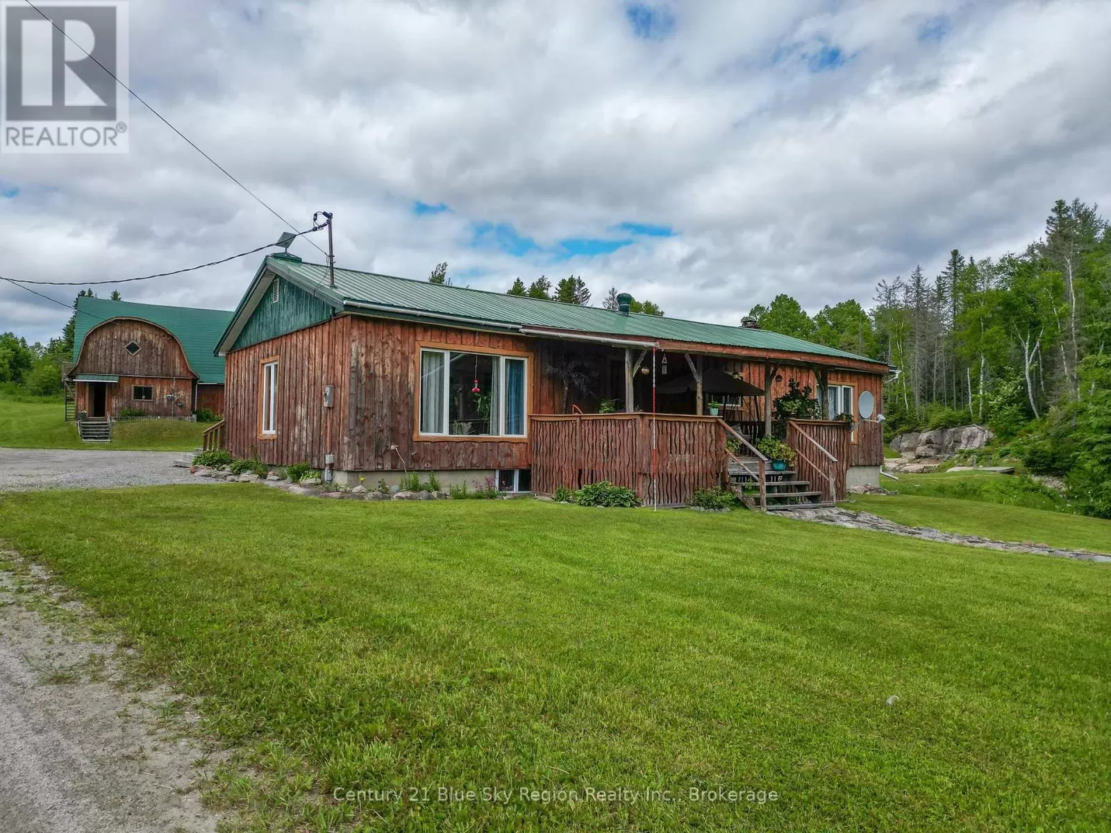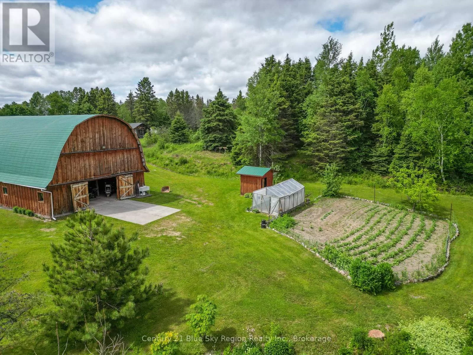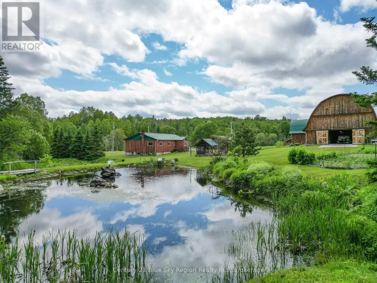 Cross Streets: Highway 64. ** Directions: Highway 64N to Field, Right on Larocque St to Patenaude Rd. Welcome to your private country estate set on an expansive 359.53 acres of stunning Northern Ontario landscape. This versatile property offers a spacious 4-bedroom home with a full basement, a detached 2-car garage, and everything you need for peaceful rural living or outdoor adventure. The land includes 50 workable acres and 10 km of established trails perfect for ATVing, hiking, or snowshoeing. The barn with loft, workshop, and smokehouse provide ample space for farming, hobbies, or storage. A charming cabin with water and hydro is ideal for guests or potential rental, while a remote cabin offers a secluded retreat deeper in the woods. Water features abound, including three scenic ponds, with a waterfalls and fountain, two are aerated by a windmill. A beaver pond at the back of the property adds to the natural charm, complete with a travel trailer nearby for overnight stays. Two hunting stands are already in place for wildlife enthusiasts. Adding to the appeal is a telecommunications long-term contract that provides monthly income, making this property not just beautiful but a smart investment. Whether you're looking to homestead, farm, hunt, or simply enjoy ultimate privacy and natural beauty, this property is truly one-of-a-kind. (id:27476)