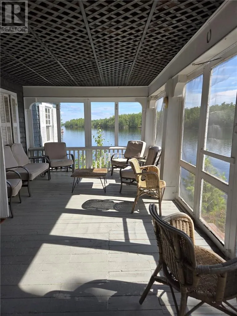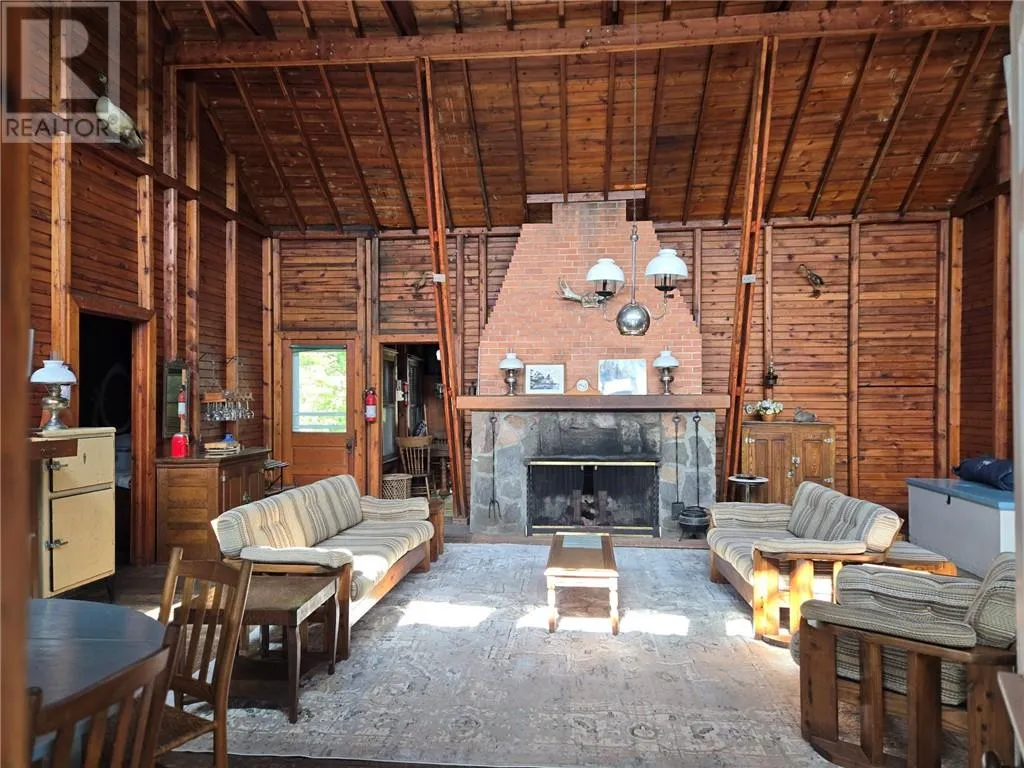 Welcome to The Pine Lodge on the Upper French River, standing on the shore of one of it's 3 private islands, just minutes from shore. Over 100 years ago you would be sitting by the stone fireplace in the great room after a day on the water telling stories of your adventures and probably a few lies about fish that got away with the other guests. Built in 1907 as a private fishing lodge, it still stands almost in it's original form with it's sturdy beams, high ceiling and pine walls. The cottage is off grid and still has it's original oil lanterns and wood cook stove. There is a hydro transformer on the property with the possibility of connecting if you choose to. Each of the 4 bedrooms are furnished with the original dressers and porcelain wash basins. A large screened in porch off the great room has an incredible view of the river and just a few steps out the door brings you down to the deck and dock. Furnished with most of the original furnishings and decor, this cottage will take you back in time to a simpler and quieter life. Call today for your private showing and make it happen. (id:27476)