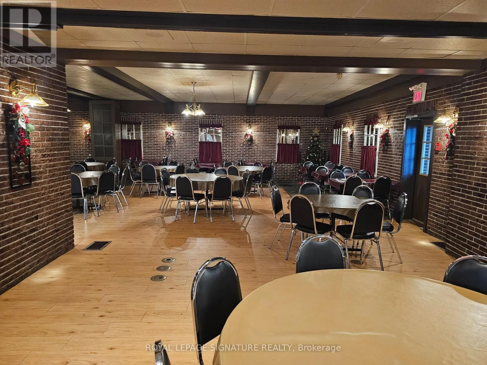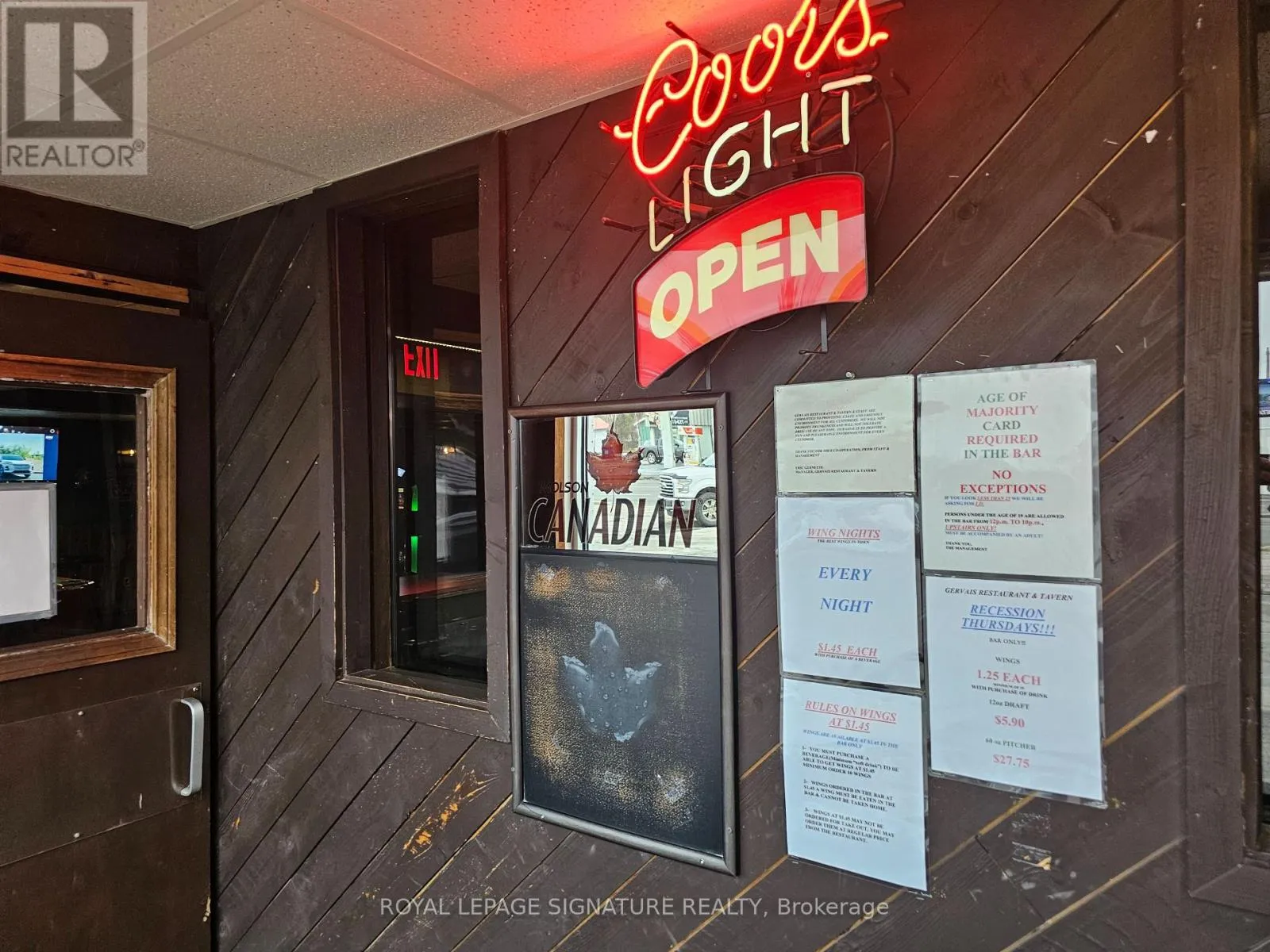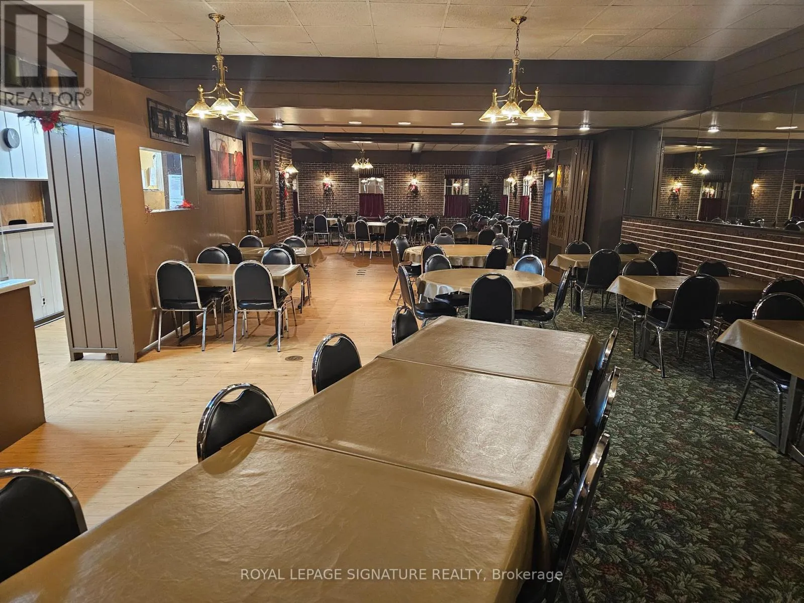 Front St & Nipissing St Gervais Restaurant & Tavern is a substantial multi-use property located in the heart of downtown Sturgeon Falls. This impressive commercial and residential complex totals 28,237 sq ft and includes three separate restaurants, three commercial retail units, and sixteen residential apartments. All restaurant businesses are owner-operated and include Gervais Restaurant, Gervais Tavern, and a Country Style location, creating a well-established and diversified income stream. Gervais Restaurant is one of the busiest dining destinations in town, serving popular North American and Chinese cuisine. Gervais Tavern operates as a classic neighbourhood pub complete with pool tables, while the Country Style - no longer paying royalties - remains a central meeting spot for the community's coffee drinkers. A massive shared kitchen services all three restaurants and features four hood systems totaling 42 ft (16 + 16 + 6 + 4), three walk-ins, and even a drive-thru window. The combined liquor license covers an impressive capacity of 441. The three commercial units and all residential apartments are fully tenanted and generating rental income, offering strong stability for ownership. With its scale, location, and diversified revenue, this property presents an exceptional opportunity for both continued operation and future redevelopment potential. Please do not go direct or speak to staff. (id:27476)