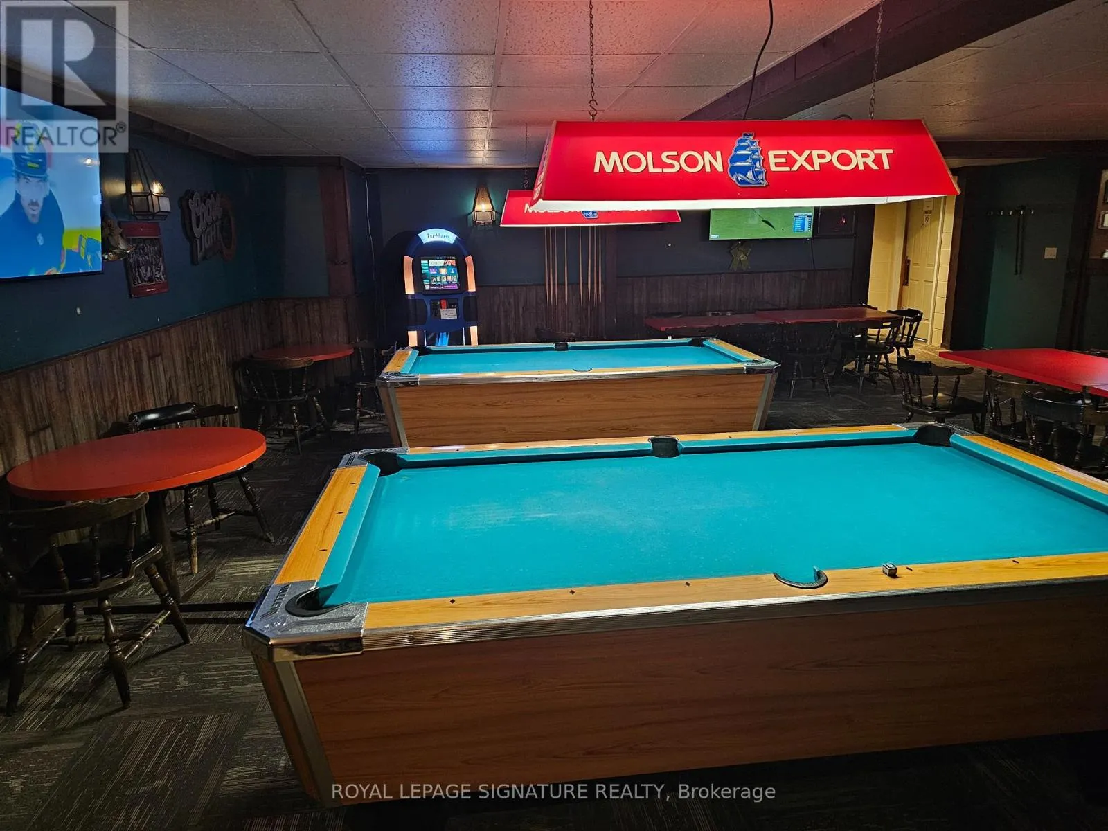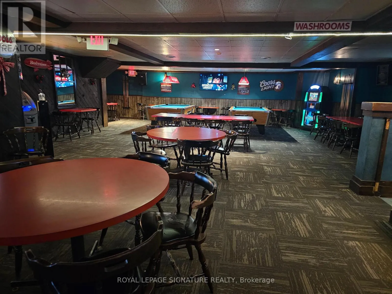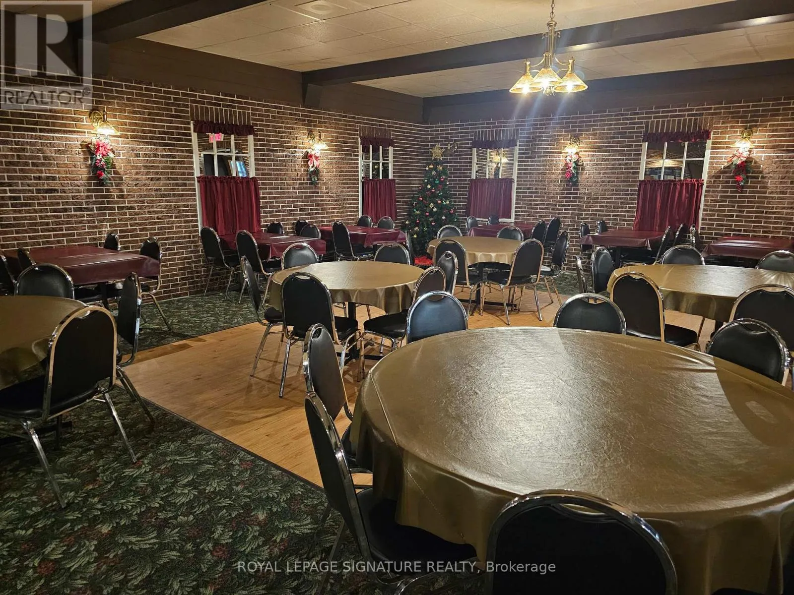Front St & Nipissing St Gervais Restaurant & Tavern is a substantial multi-use property located in the heart of downtown Sturgeon Falls. This impressive commercial and residential complex totals 28,237 sq ft and includes three separate restaurants, three commercial retail units, and sixteen residential apartments. All restaurant businesses are owner-operated and include Gervais Restaurant, Gervais Tavern, and a Country Style location, creating a well-established and diversified income stream. Gervais Restaurant is one of the busiest dining destinations in town, serving popular North American and Chinese cuisine. Gervais Tavern operates as a classic neighbourhood pub complete with pool tables, while the Country Style - no longer paying royalties - remains a central meeting spot for the community's coffee drinkers. A massive shared kitchen services all three restaurants and features four hood systems totaling 42 ft (16 + 16 + 6 + 4), three walk-ins, and even a drive-thru window. The combined liquor license covers an impressive capacity of 441. The three commercial units and all residential apartments are fully tenanted and generating rental income, offering strong stability for ownership. With its scale, location, and diversified revenue, this property presents an exceptional opportunity for both continued operation and future redevelopment potential. Please do not go direct or speak to staff. (id:27476)