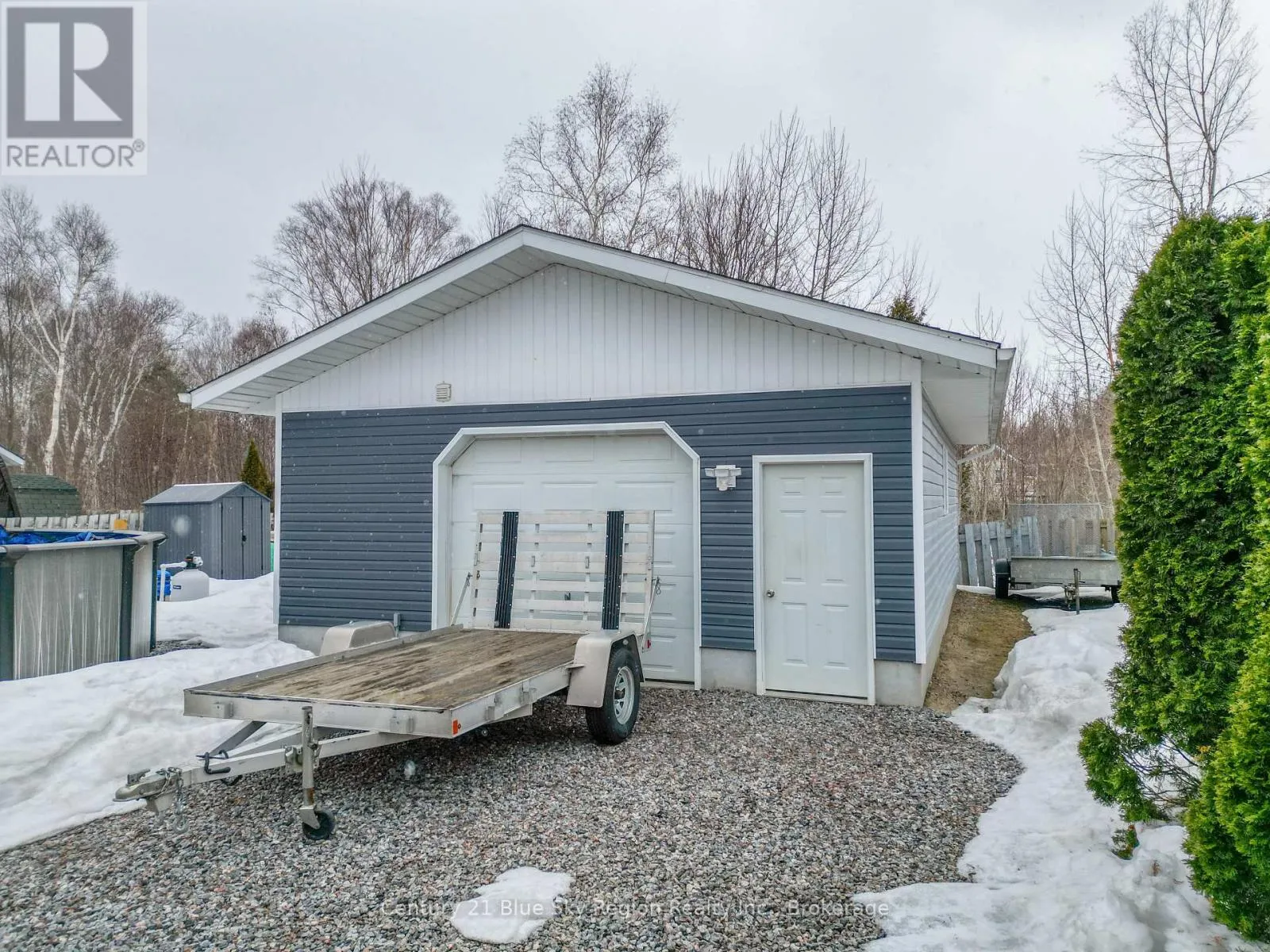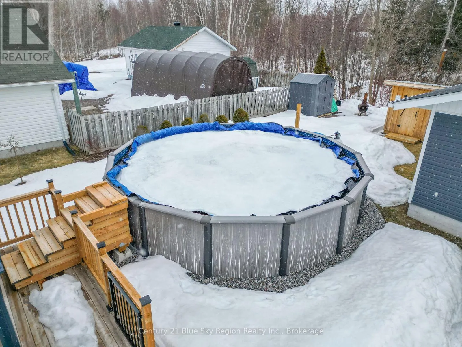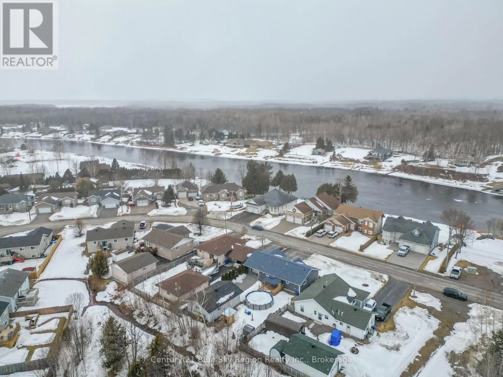 Cross Streets: Demers Street. ** Directions: Highway 17 to Nipissing Street. Right on Third Street. Left on Demers. Right on Riverfront Drive. This beautifully updated 3-bedroom, 1-bath bungalow offers effortless one-floor living and a backyard designed for ultimate relaxation. The interior has seen improvements, featuring a bright, modern layout and quality finishes throughout. The exterior is a true standout, featuring an attached 14' x 30' heated garage with a rare drive-through door that leads to a massive 22' x 32' detached secondary heated garage. Whether you need climate-controlled storage, a year-round hobby shop, or a spot for seasonal toys, this setup is unmatched. The private, yard serves as your personal oasis, complete with a heated above-ground pool and a built-in sauna. This home offers total peace of mind and the perfect blend of comfort and utility. (id:27476)