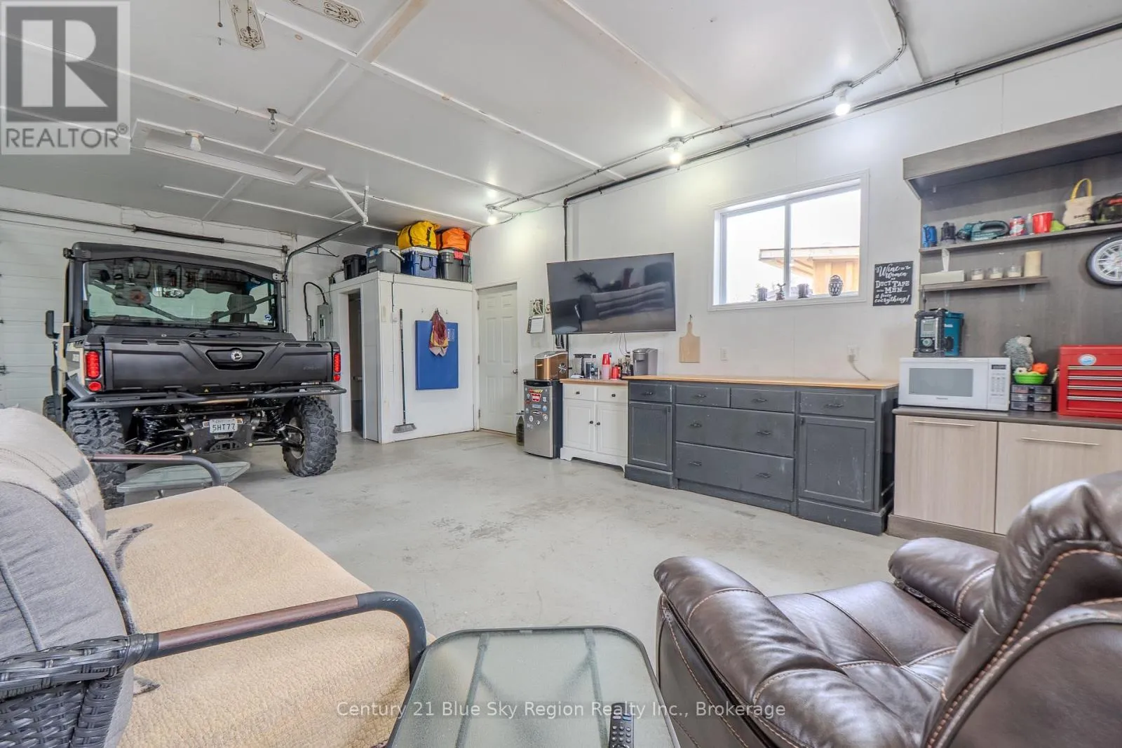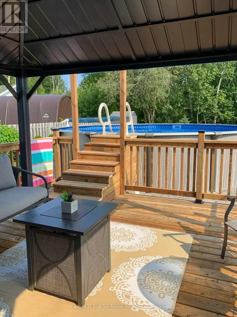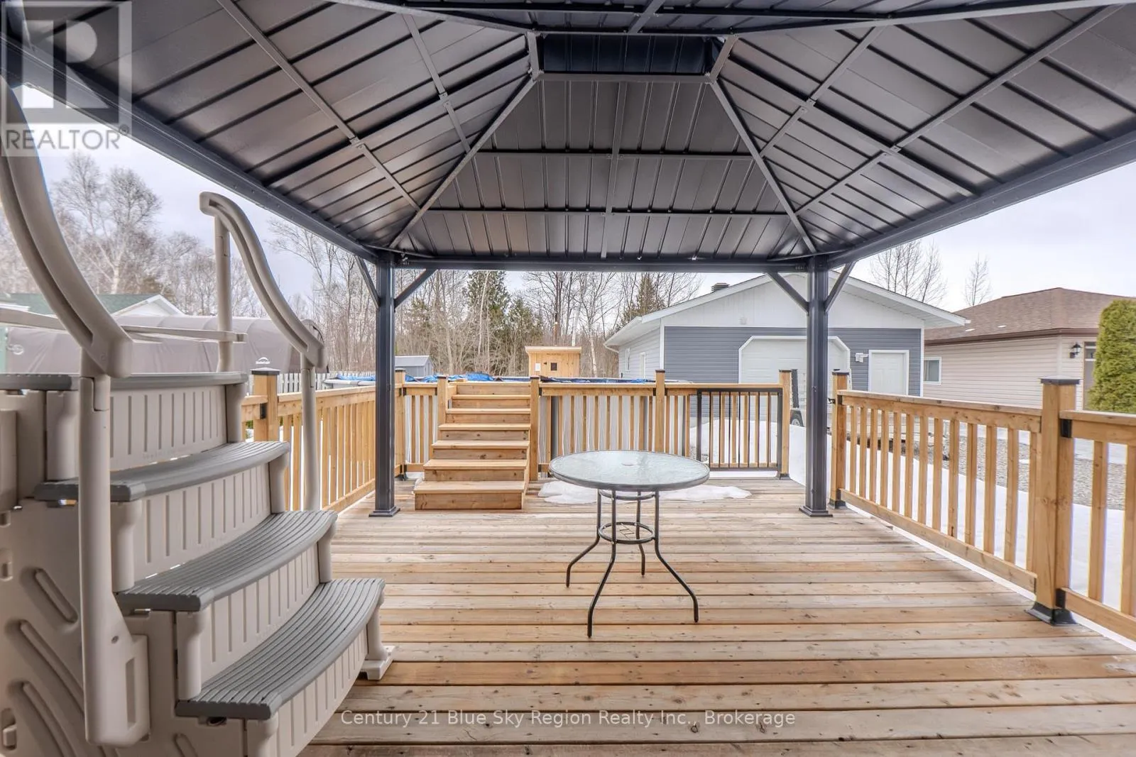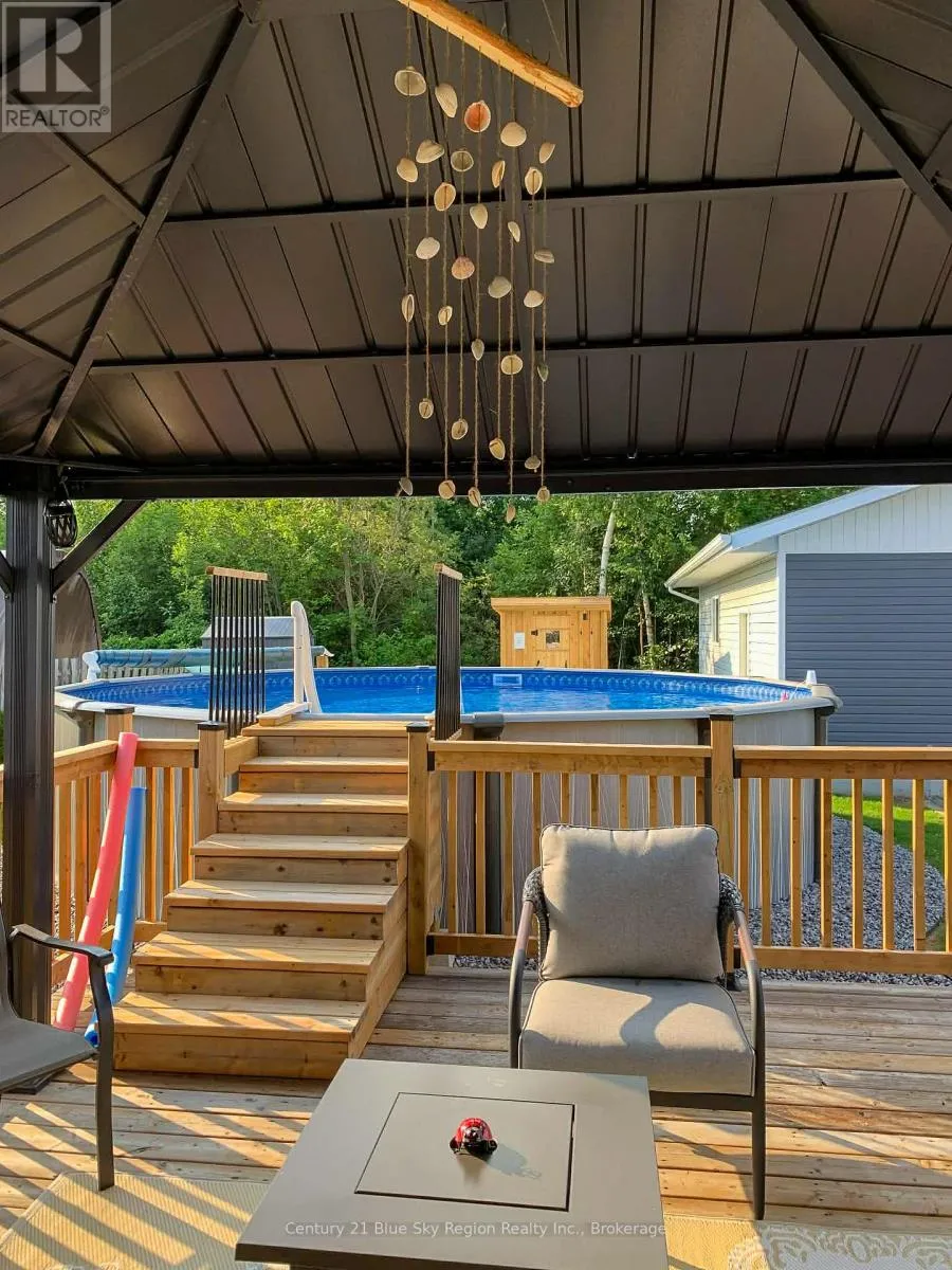 Cross Streets: Demers Street. ** Directions: Highway 17 to Nipissing Street. Right on Third Street. Left on Demers. Right on Riverfront Drive. This beautifully updated 3-bedroom, 1-bath bungalow offers effortless one-floor living and a backyard designed for ultimate relaxation. The interior has seen improvements, featuring a bright, modern layout and quality finishes throughout. The exterior is a true standout, featuring an attached 14' x 30' heated garage with a rare drive-through door that leads to a massive 22' x 32' detached secondary heated garage. Whether you need climate-controlled storage, a year-round hobby shop, or a spot for seasonal toys, this setup is unmatched. The private, yard serves as your personal oasis, complete with a heated above-ground pool and a built-in sauna. This home offers total peace of mind and the perfect blend of comfort and utility. (id:27476)