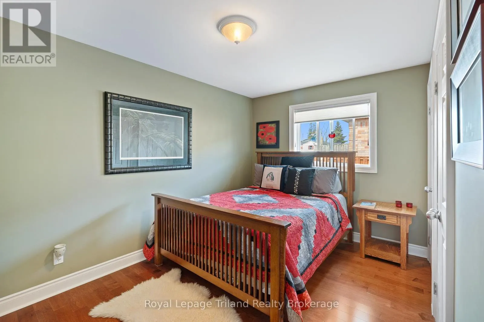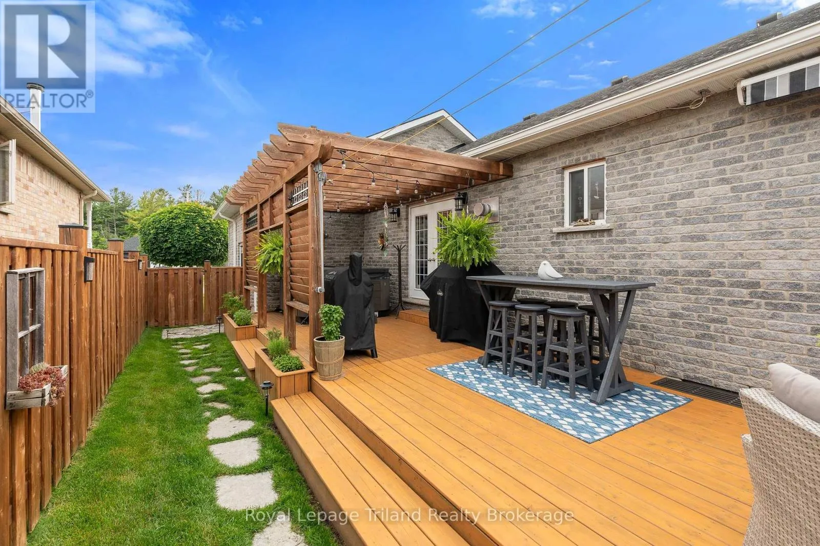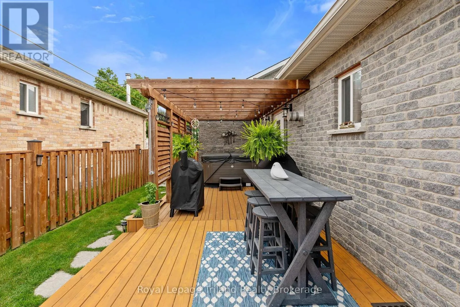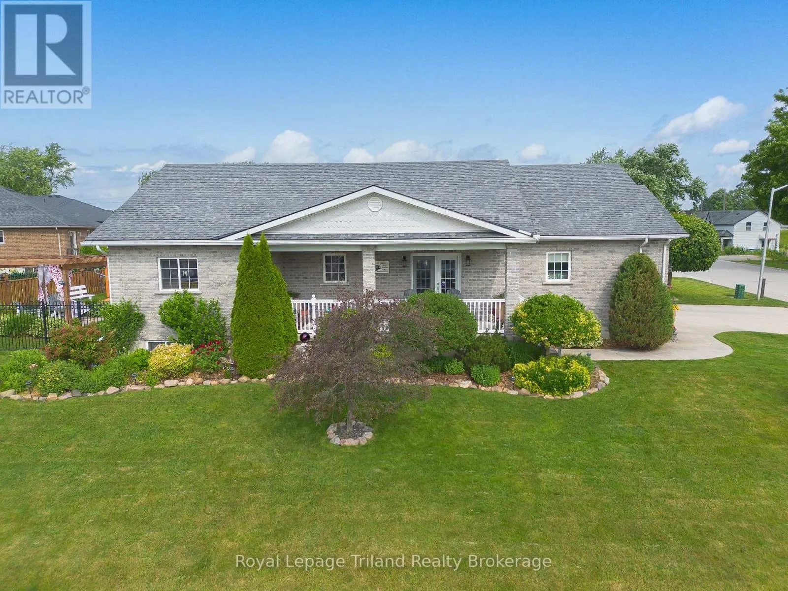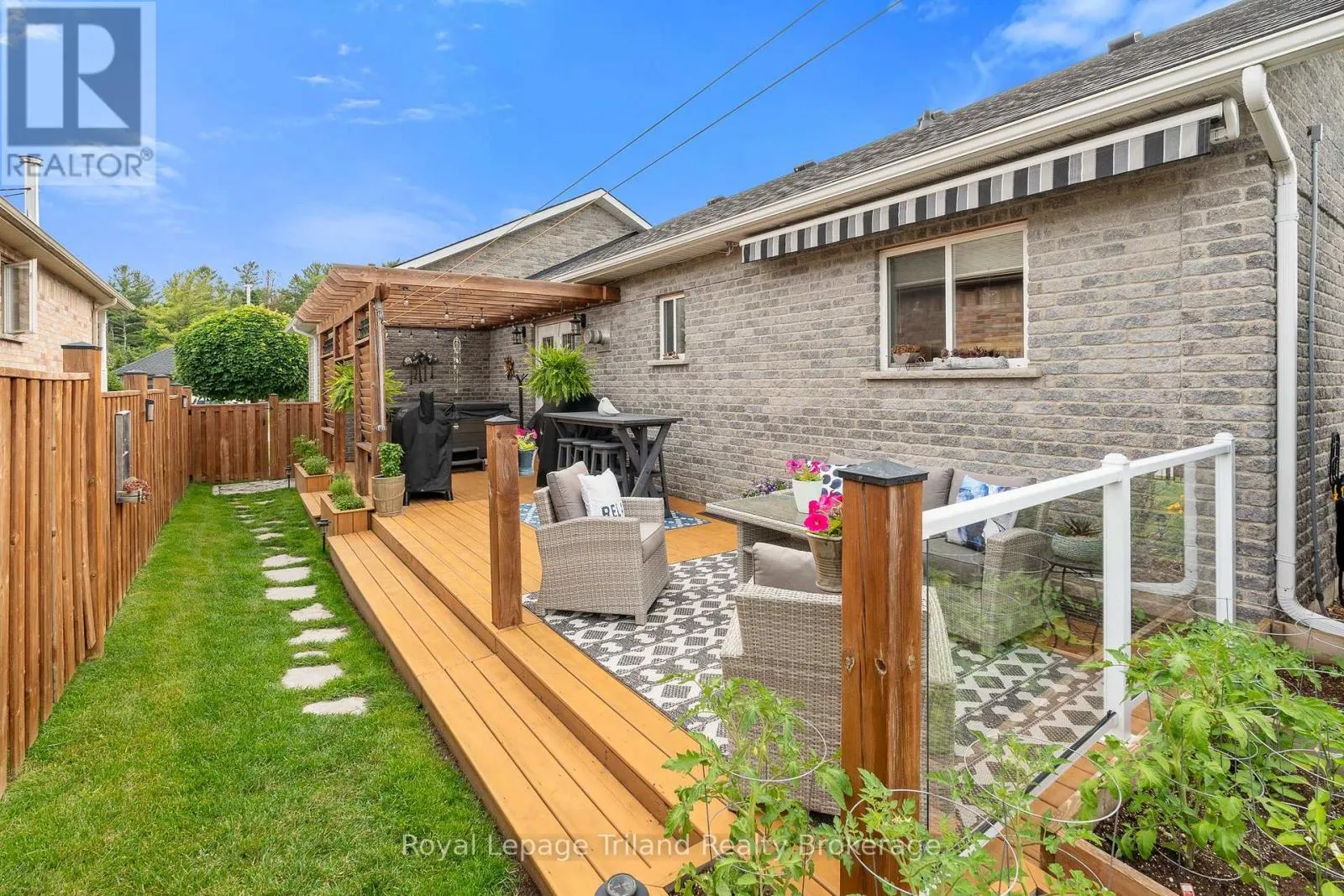 Cross Streets: Clayton St and Nelson St. ** Directions: Head north on Hwy 23 and turn right on to Clayton, Home is on the Right. Charming All-Brick Bungalow with Timeless Appeal & Modern Comforts! Welcome to this beautifully maintained all-brick bungalow, built in 2007 and offering over 2,200 square feet of stylish and functional living space. Nestled in a family-friendly neighborhood, this 3 bedroom, 2 full bath home blends classic design with thoughtful upgrades and luxurious finishes throughout. Step inside to soaring cathedral ceilings, a bright open concept layout, and a kitchen designed for both everyday living and entertaining featuring solid oak cabinetry, a central island, and direct access to two outdoor spaces: a covered porch and a spacious deck with a private hot tub, ideal for year-round enjoyment. Elegant terrace doors connect indoor and outdoor living with ease. The welcoming front entry and bathroom feature beautiful porcelain tile with heated flooring for added comfort in the mornings and style. The large bedrooms offer plenty of space and generous closets, while the finished lower-level family room provides the perfect spot to unwind. Enjoy added convenience with main floor laundry, a spacious 2-car garage, a concrete driveway, gas BBQ hookup, and a beautifully landscaped yard with a new fence for privacy. A large outdoor storage shed adds even more versatility. Relax in the hot tub, sip your morning coffee on the covered side porch, or simply take in the peaceful surroundings along the Thames River. With central air, pride of ownership, and move-in-ready condition, this stunning bungalow truly checks all the boxes. A Must See! (id:27476)