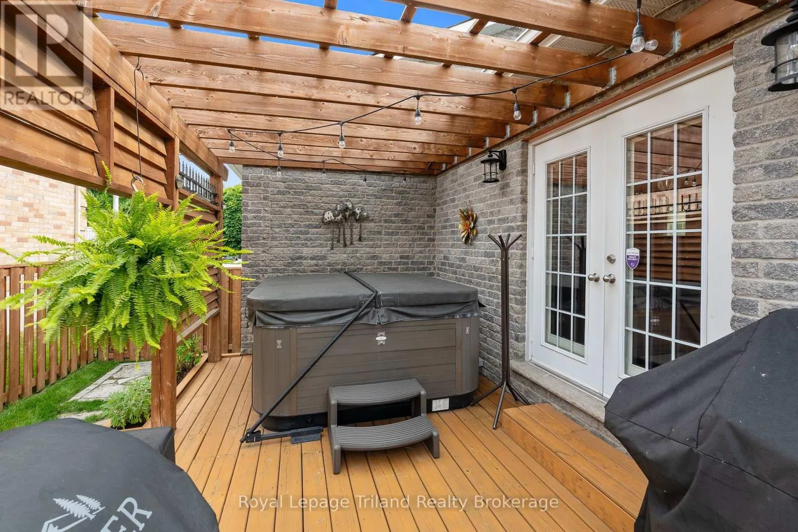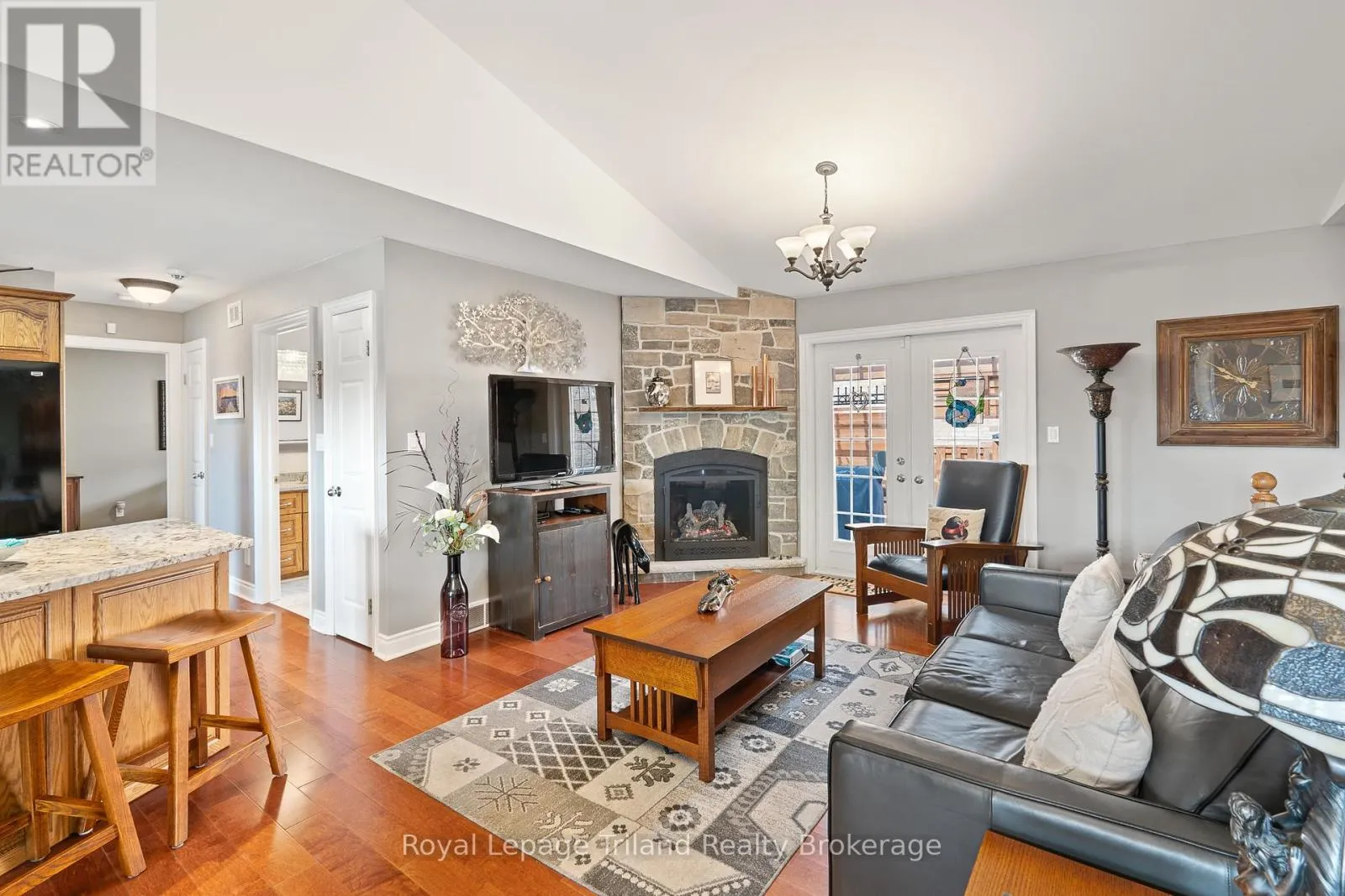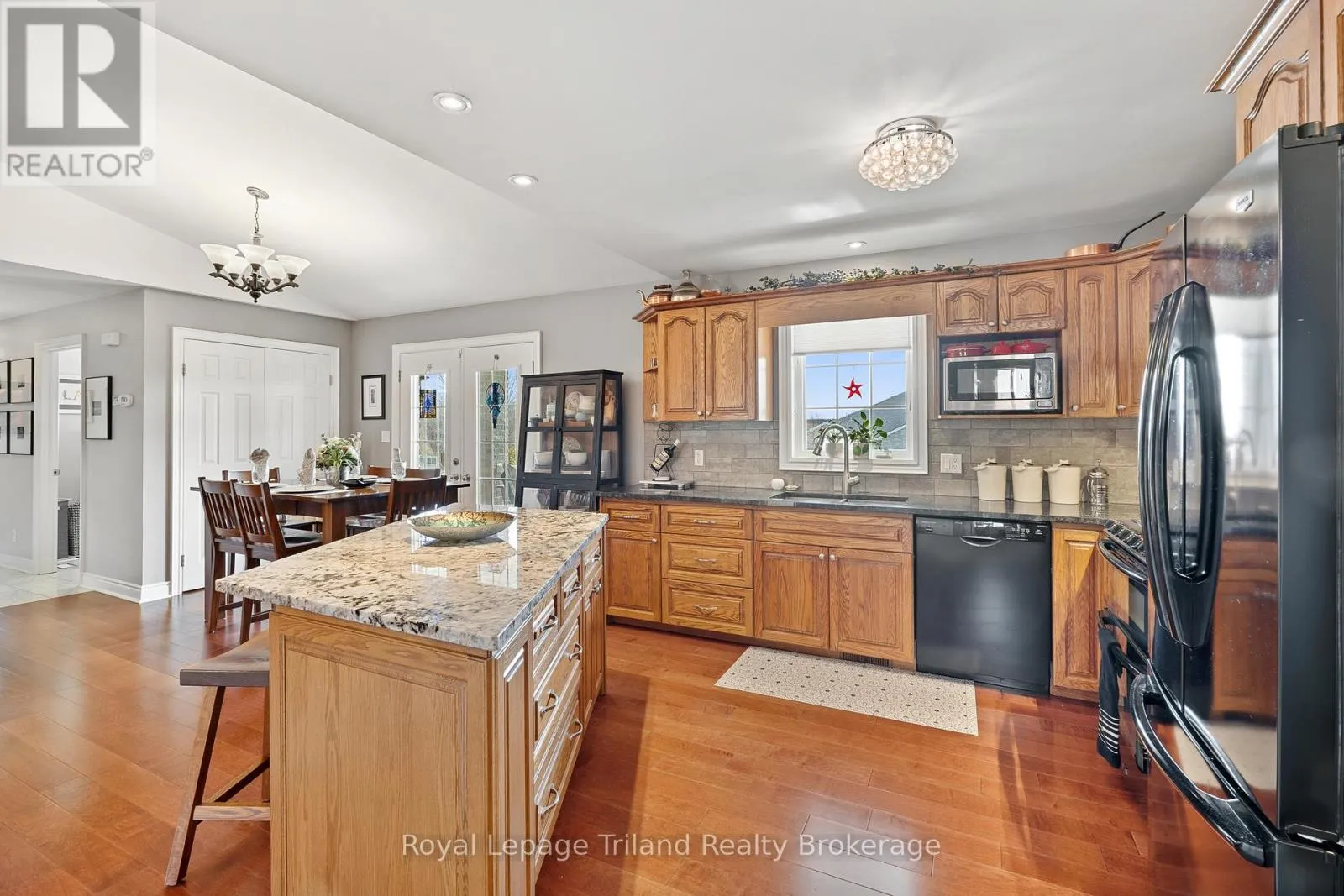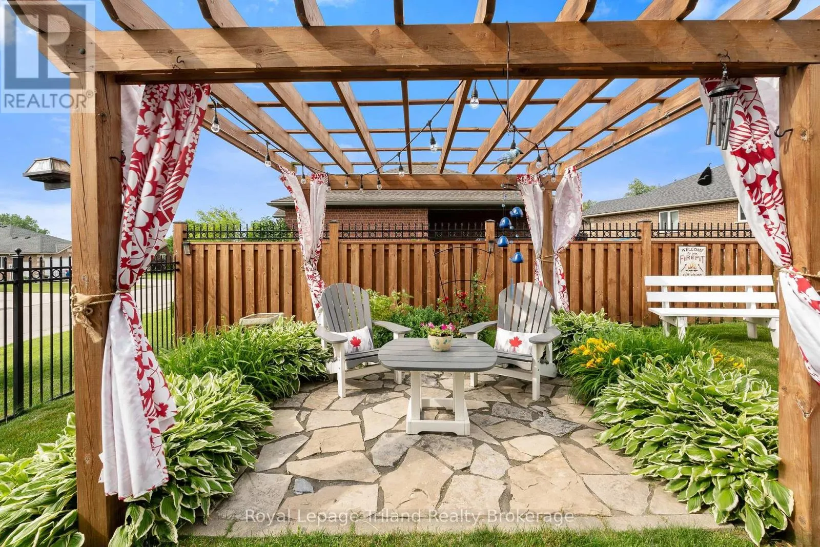 Cross Streets: Clayton St and Nelson St. ** Directions: Head north on Hwy 23 and turn right on to Clayton, Home is on the Right. Charming All-Brick Bungalow with Timeless Appeal & Modern Comforts! Welcome to this beautifully maintained all-brick bungalow, built in 2007 and offering over 2,200 square feet of stylish and functional living space. Nestled in a family-friendly neighborhood, this 3 bedroom, 2 full bath home blends classic design with thoughtful upgrades and luxurious finishes throughout. Step inside to soaring cathedral ceilings, a bright open concept layout, and a kitchen designed for both everyday living and entertaining featuring solid oak cabinetry, a central island, and direct access to two outdoor spaces: a covered porch and a spacious deck with a private hot tub, ideal for year-round enjoyment. Elegant terrace doors connect indoor and outdoor living with ease. The welcoming front entry and bathroom feature beautiful porcelain tile with heated flooring for added comfort in the mornings and style. The large bedrooms offer plenty of space and generous closets, while the finished lower-level family room provides the perfect spot to unwind. Enjoy added convenience with main floor laundry, a spacious 2-car garage, a concrete driveway, gas BBQ hookup, and a beautifully landscaped yard with a new fence for privacy. A large outdoor storage shed adds even more versatility. Relax in the hot tub, sip your morning coffee on the covered side porch, or simply take in the peaceful surroundings along the Thames River. With central air, pride of ownership, and move-in-ready condition, this stunning bungalow truly checks all the boxes. A Must See! (id:27476)