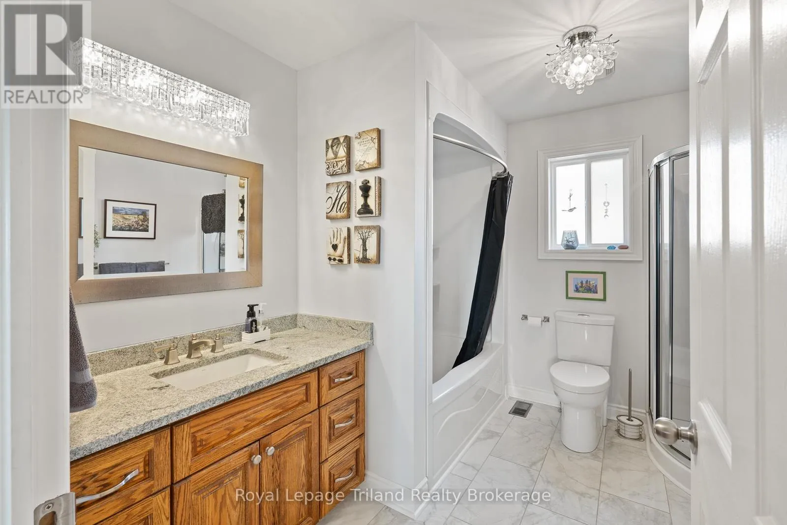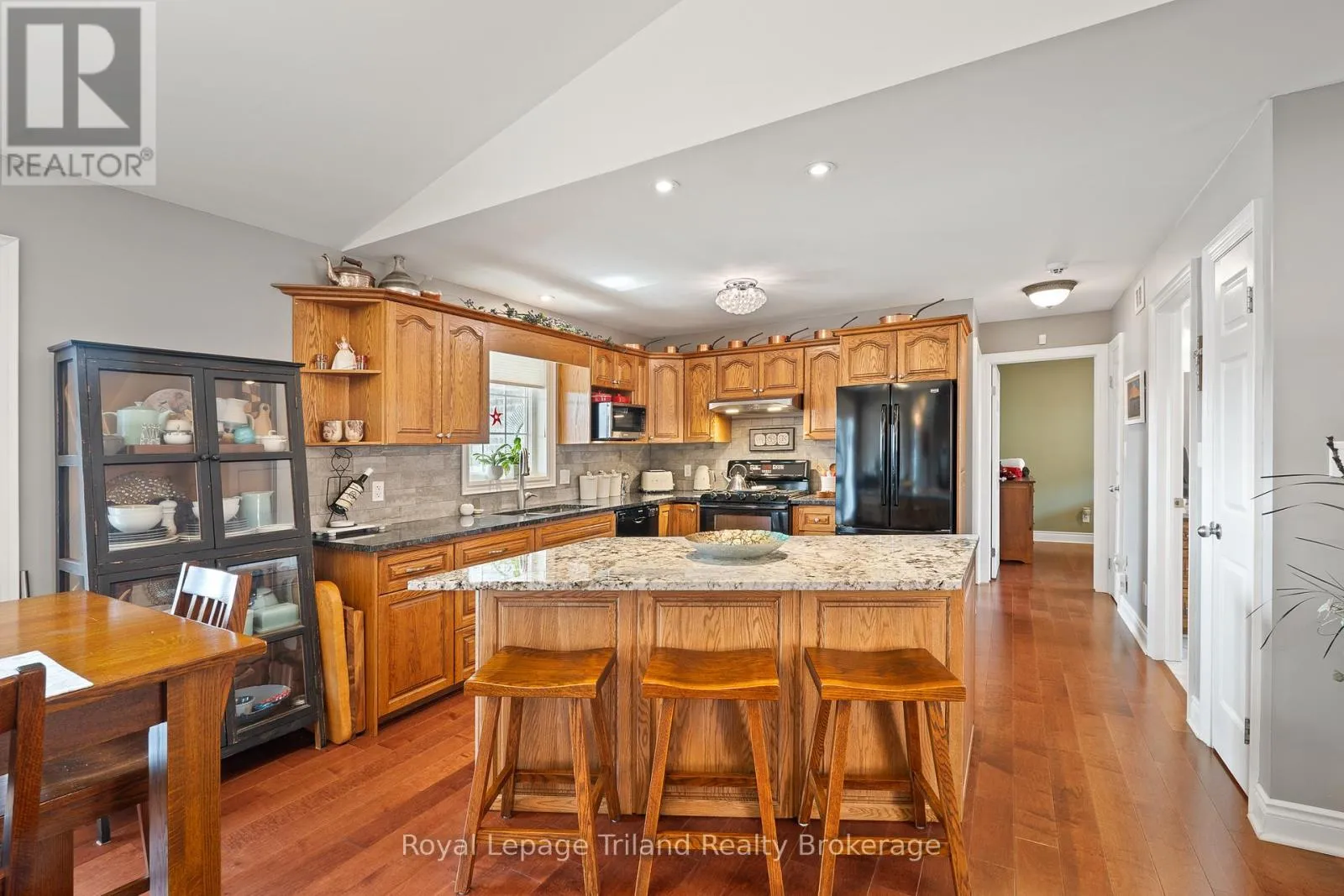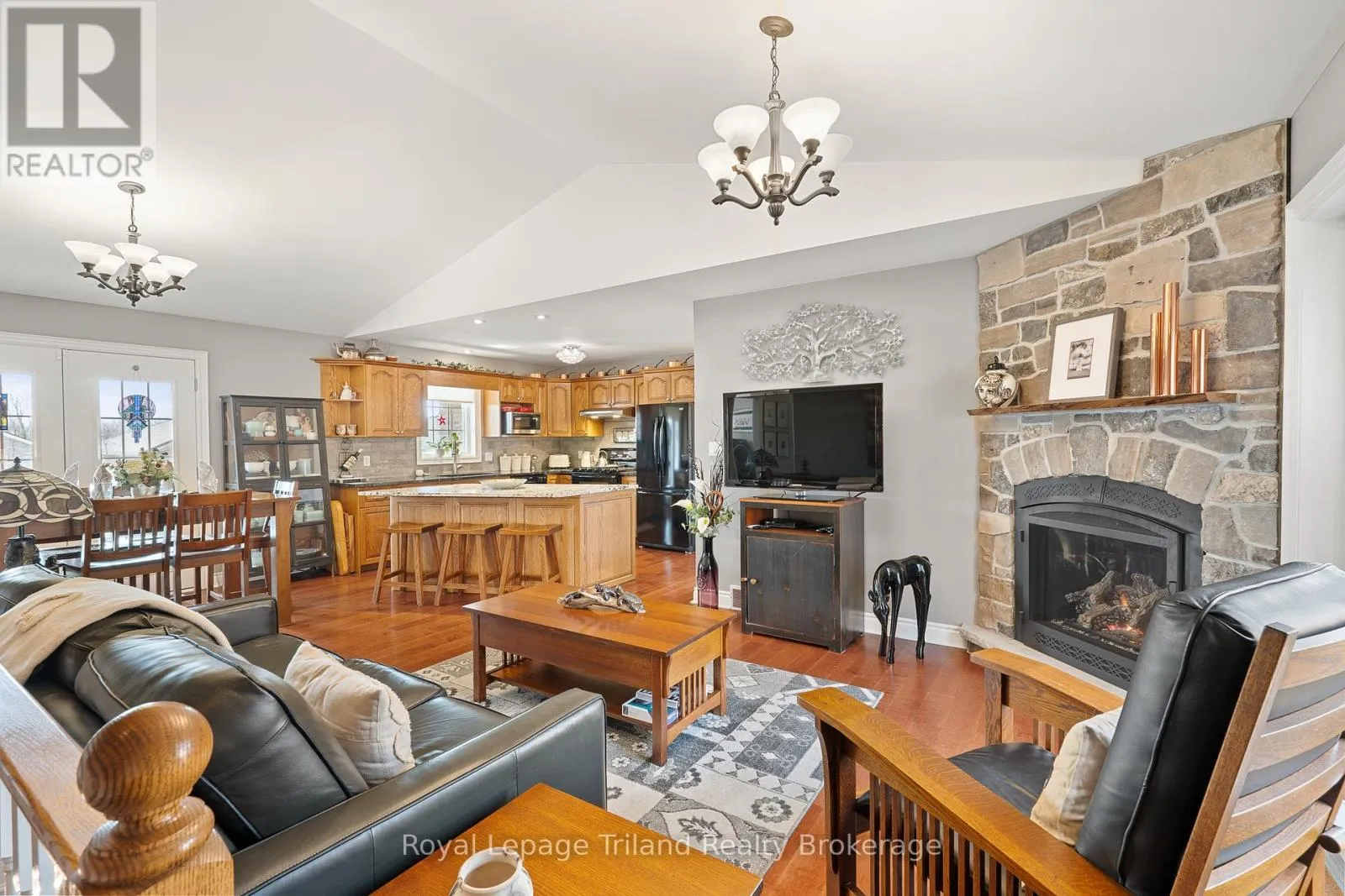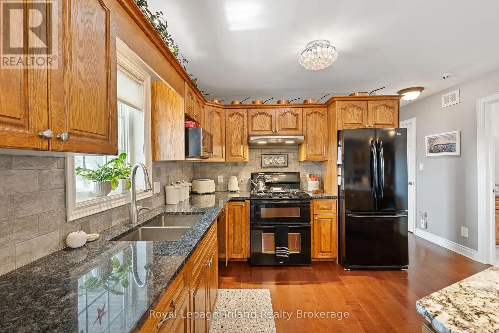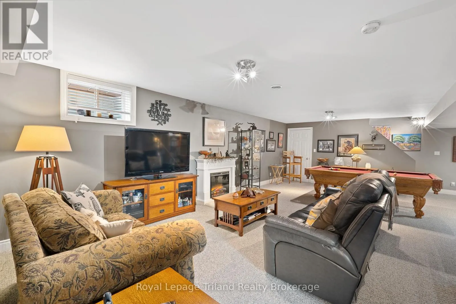 Cross Streets: Clayton St and Nelson St. ** Directions: Head north on Hwy 23 and turn right on to Clayton, Home is on the Right. Charming All-Brick Bungalow with Timeless Appeal & Modern Comforts! Welcome to this beautifully maintained all-brick bungalow, built in 2007 and offering over 2,200 square feet of stylish and functional living space. Nestled in a family-friendly neighborhood, this 3 bedroom, 2 full bath home blends classic design with thoughtful upgrades and luxurious finishes throughout. Step inside to soaring cathedral ceilings, a bright open concept layout, and a kitchen designed for both everyday living and entertaining featuring solid oak cabinetry, a central island, and direct access to two outdoor spaces: a covered porch and a spacious deck with a private hot tub, ideal for year-round enjoyment. Elegant terrace doors connect indoor and outdoor living with ease. The welcoming front entry and bathroom feature beautiful porcelain tile with heated flooring for added comfort in the mornings and style. The large bedrooms offer plenty of space and generous closets, while the finished lower-level family room provides the perfect spot to unwind. Enjoy added convenience with main floor laundry, a spacious 2-car garage, a concrete driveway, gas BBQ hookup, and a beautifully landscaped yard with a new fence for privacy. A large outdoor storage shed adds even more versatility. Relax in the hot tub, sip your morning coffee on the covered side porch, or simply take in the peaceful surroundings along the Thames River. With central air, pride of ownership, and move-in-ready condition, this stunning bungalow truly checks all the boxes. A Must See! (id:27476)