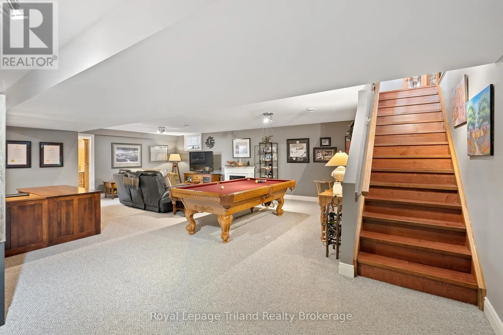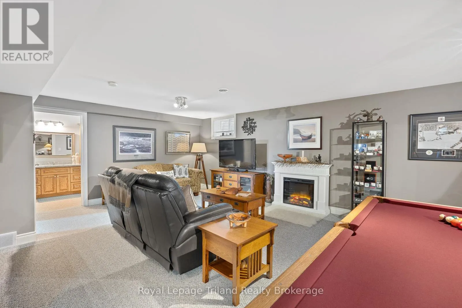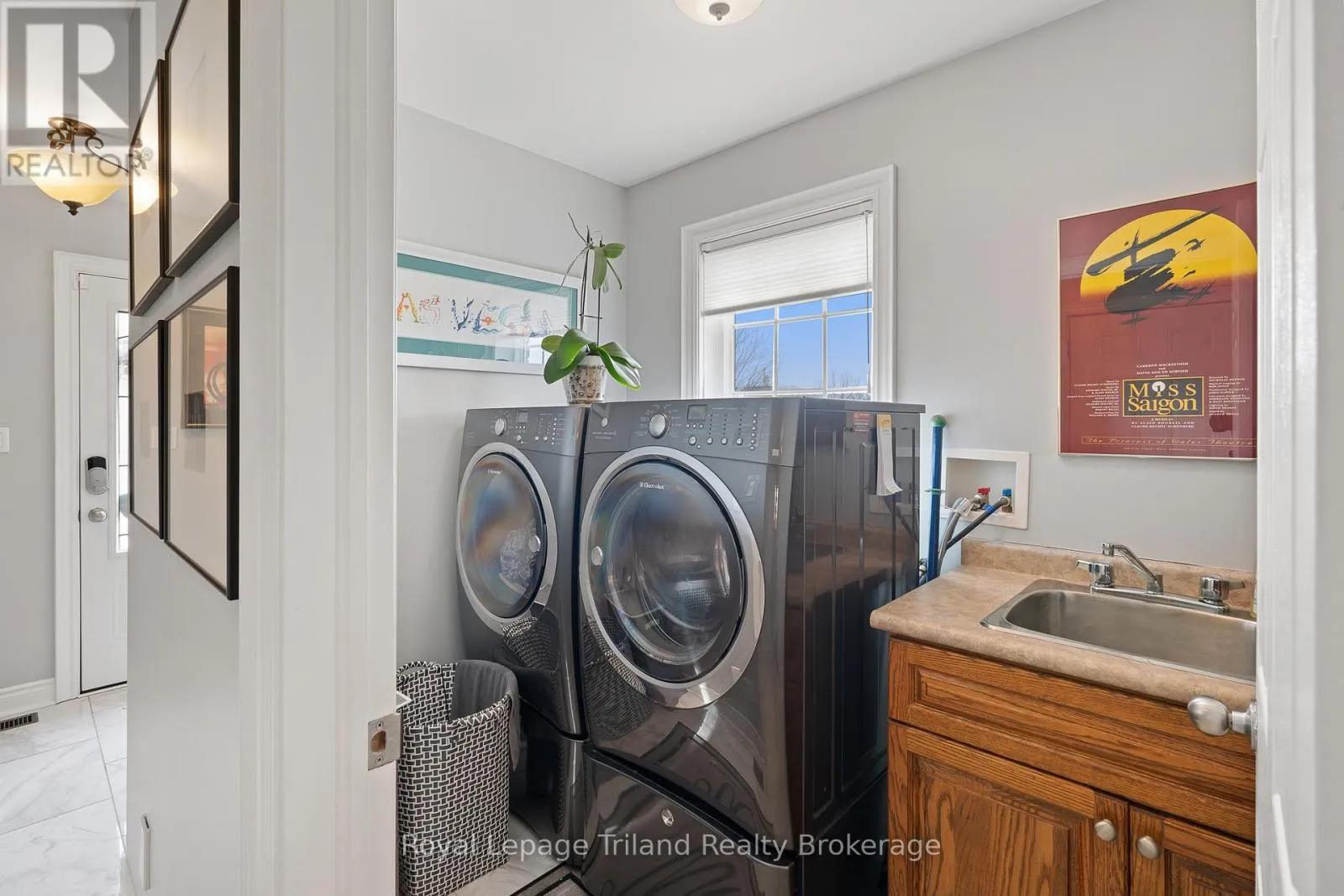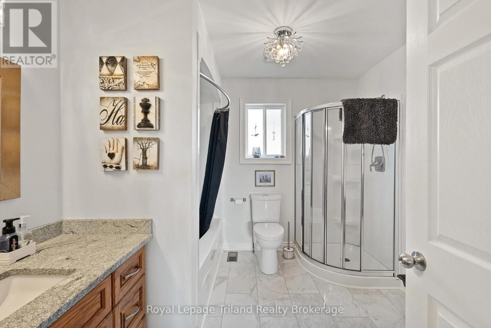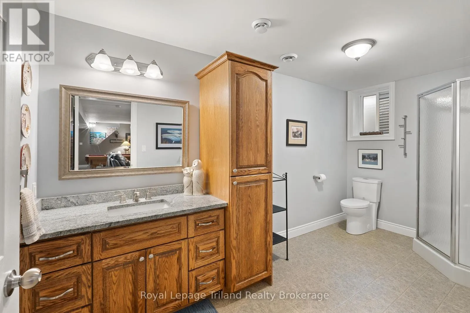 Cross Streets: Clayton St and Nelson St. ** Directions: Head north on Hwy 23 and turn right on to Clayton, Home is on the Right. Charming All-Brick Bungalow with Timeless Appeal & Modern Comforts! Welcome to this beautifully maintained all-brick bungalow, built in 2007 and offering over 2,200 square feet of stylish and functional living space. Nestled in a family-friendly neighborhood, this 3 bedroom, 2 full bath home blends classic design with thoughtful upgrades and luxurious finishes throughout. Step inside to soaring cathedral ceilings, a bright open concept layout, and a kitchen designed for both everyday living and entertaining featuring solid oak cabinetry, a central island, and direct access to two outdoor spaces: a covered porch and a spacious deck with a private hot tub, ideal for year-round enjoyment. Elegant terrace doors connect indoor and outdoor living with ease. The welcoming front entry and bathroom feature beautiful porcelain tile with heated flooring for added comfort in the mornings and style. The large bedrooms offer plenty of space and generous closets, while the finished lower-level family room provides the perfect spot to unwind. Enjoy added convenience with main floor laundry, a spacious 2-car garage, a concrete driveway, gas BBQ hookup, and a beautifully landscaped yard with a new fence for privacy. A large outdoor storage shed adds even more versatility. Relax in the hot tub, sip your morning coffee on the covered side porch, or simply take in the peaceful surroundings along the Thames River. With central air, pride of ownership, and move-in-ready condition, this stunning bungalow truly checks all the boxes. A Must See! (id:27476)