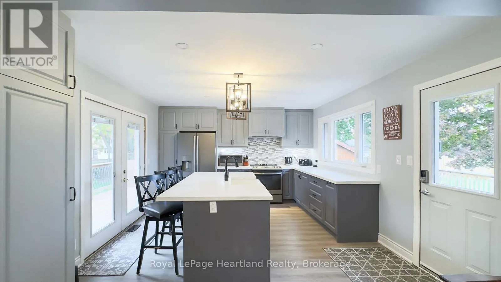 Cross Streets: St. David / Henry. ** Directions: From HWY 8, head North on St. David Street, property is on the left. Neat, tidy, and move-in ready, this 4-bedroom, 2-bath all-brick bungalow in Mitchell has been beautifully updated from top to bottom. The main floor features an open-concept layout with modern vinyl plank flooring (2022), a completely updated kitchen with custom cabinetry, quartz countertops, and a large island leading to patio doors and a fenced backyard with spacious deck. Both bathrooms have been tastefully renovated with custom cabinetry, hard-surface counters, and a marble-tile shower. The lower level has been fully finished right to the studs-re-insulated, rewired, and completed with a cozy family room, updated bathroom, and additional bedroom. Peace of mind comes easy with major upgrades already completed including a steel roof (2011), water softener, on-demand hot water heater, furnace, heat pump, and A/C (all 2022). Outside you'll appreciate the 12' x 20' shed for all your storage needs. A solid, stylish home in a family-friendly community, one block away from schools and arena - just minutes from Stratford, offering comfort, quality, and excellent value (id:27476)