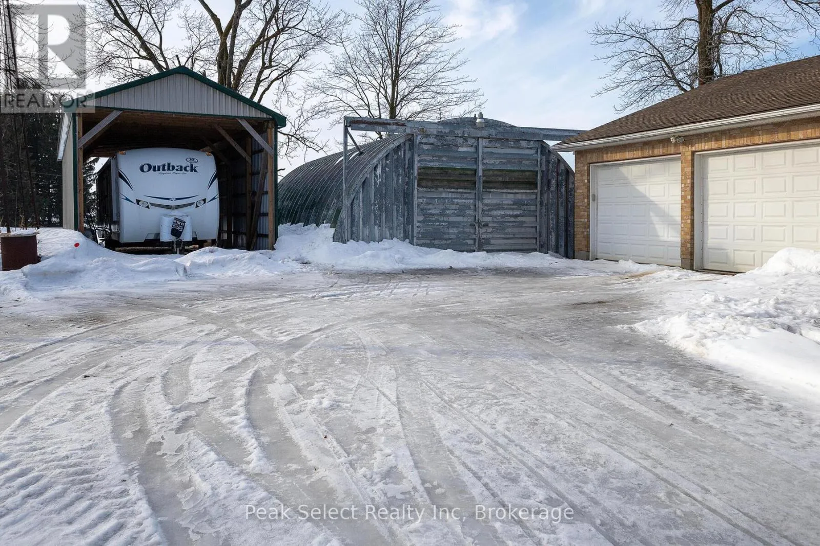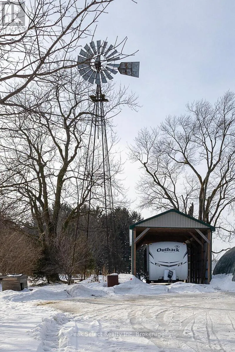Cross Streets: Perth Road 163 on the East side - 1st driveway North of 26 Line. ** Directions: Perth Road 163 on the East side - 1st driveway North of 26 Line. Major update coming this spring: a brand-new weeping bed will be installed, providing a valuable upgrade and added confidence for future owners. Welcome to this classic yellow brick century farmhouse, nestled on a generous 121 x 239 lot that offers exceptional privacy and timeless rural charm. This carpet-free home features 3 bedrooms and 2 full bathrooms, including a 4-piece bath on the upper level and a 3-piece bath on the main floor. The heart of the home is the kitchen, complete with maple cabinetry, maple flooring, a warm wood ceiling, and a gas stove, with dishwasher and fridge included. The adjoining dining room flows into a versatile office, currently used as a bedroom. The main floor also offers a cozy living room with maple flooring and a convenient laundry room (washer and electric dryer included, with gas hookup available). Enjoy the spacious double-plus garage with interior access to the laundry room, plus two included freezers. A unique walk-down entry from the garage leads to a partially finished basement featuring skylights, a rec room, propane heat, and a sump pump. Upstairs, you'll find three bright bedrooms, all with maple flooring, and a full 4-piece bath. Additional updates include a new garage roof (2014), drilled well with new pressure tank (2024), and the septic system pumped in 2022.Outdoor living shines with a front deck and gazebo (2021), a 40' x 16' drive-thru shed (2021), and a distinctive curved-roof shed currently used as a workshop. Fibre optic internet (Quadro), mature trees, and quiet country surroundings complete the package - all just a short drive from town. If you're looking for space, character, and country charm, this farmhouse is a must-see. (id:27476)