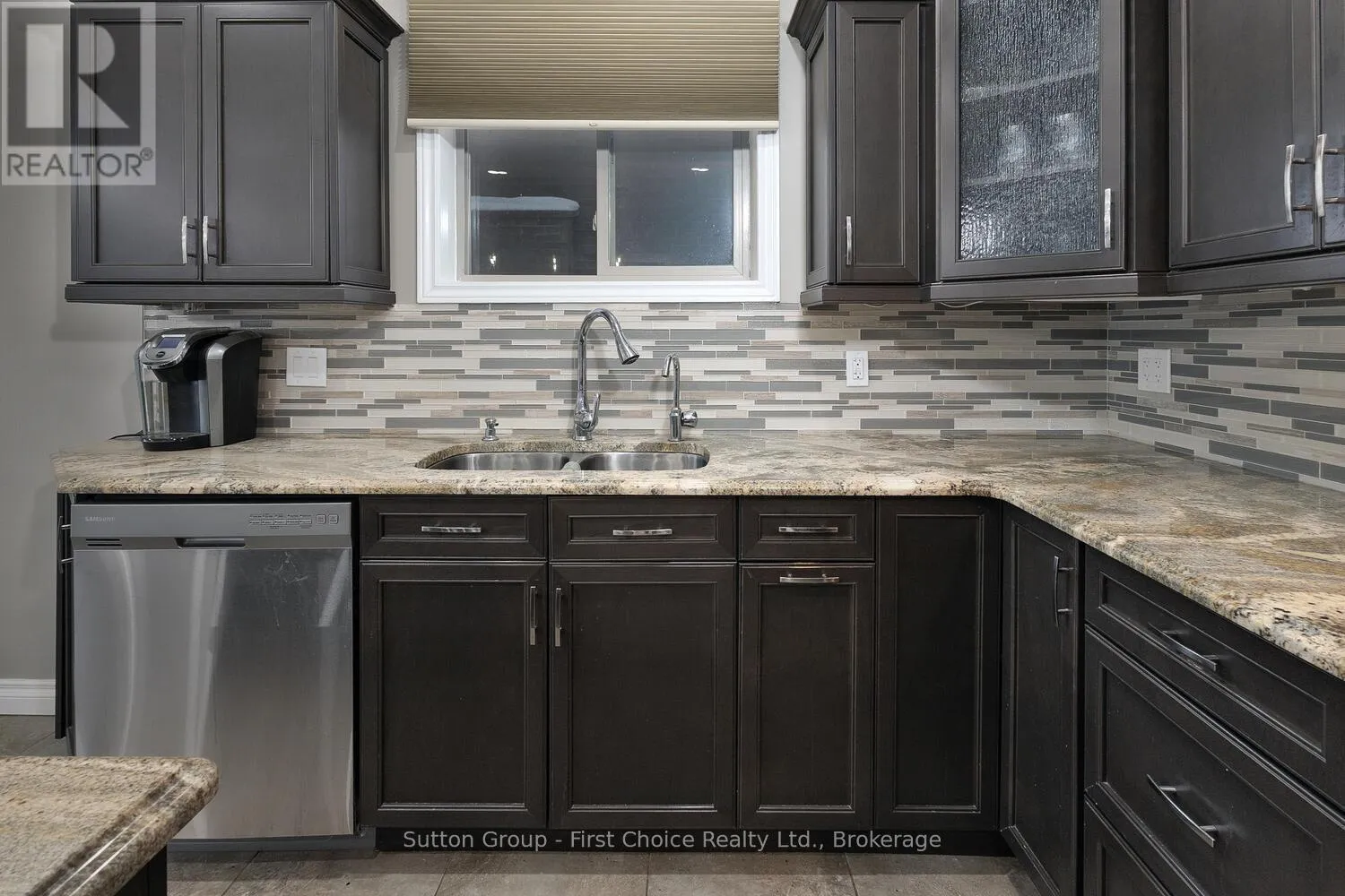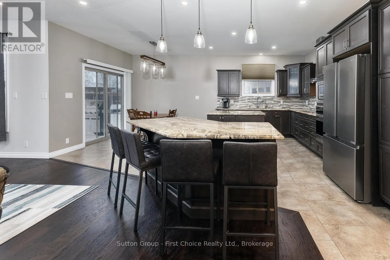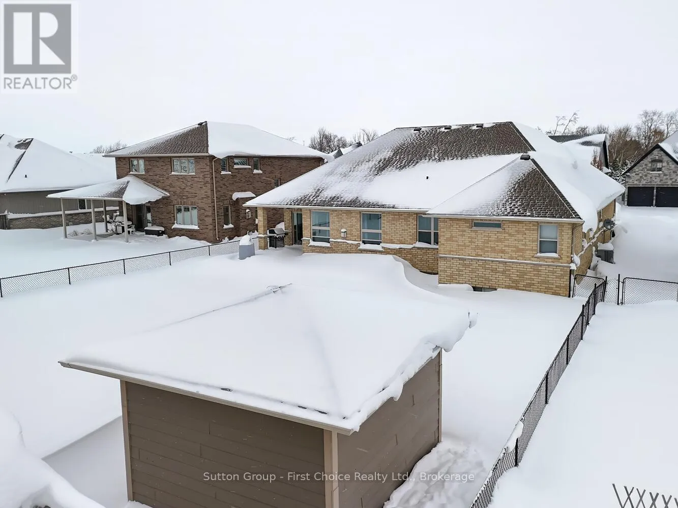Cross Streets: Napier St. ** Directions: Hwy 8 to Napier St to Kenton St. Executive 3+2 brick bungalow offering approx. 4,550-4,800 sq. ft. of finished living space with great potential for a separate suite in the basement. Located on a quiet street in Mitchell, the main floor features 9' ceilings and a vaulted living room with an oversized feature window. The spacious layout includes formal living and dining rooms, open-concept great room with gas fireplace, and a custom maple kitchen with granite countertops and two granite islands. Sliding patio doors lead to a large, partially covered deck. The primary bedroom offers a walk-in closet and a luxurious ensuite. Main floor laundry, powder room, and additional full bath. Fully finished lower level with separate entrance features an oversized rec/games room with fireplace, two large bedrooms, and custom porcelain-tiled bath. Basement walk-out to garage. Fully fenced, pool-sized backyard with a covered BBQ area on the deck and a shed. Oversized 3-car garage with 12' ceilings and insulated doors. Six-car driveway. Conveniently located approx. 20-30 minutes to Stratford Festival and Lake Huron beaches. (id:27476)