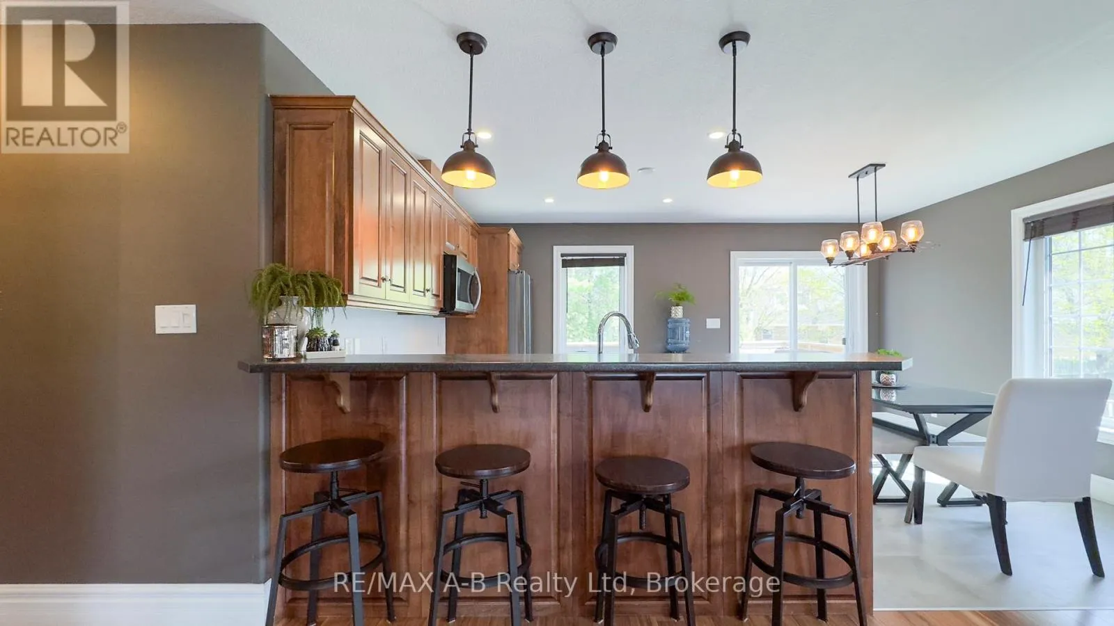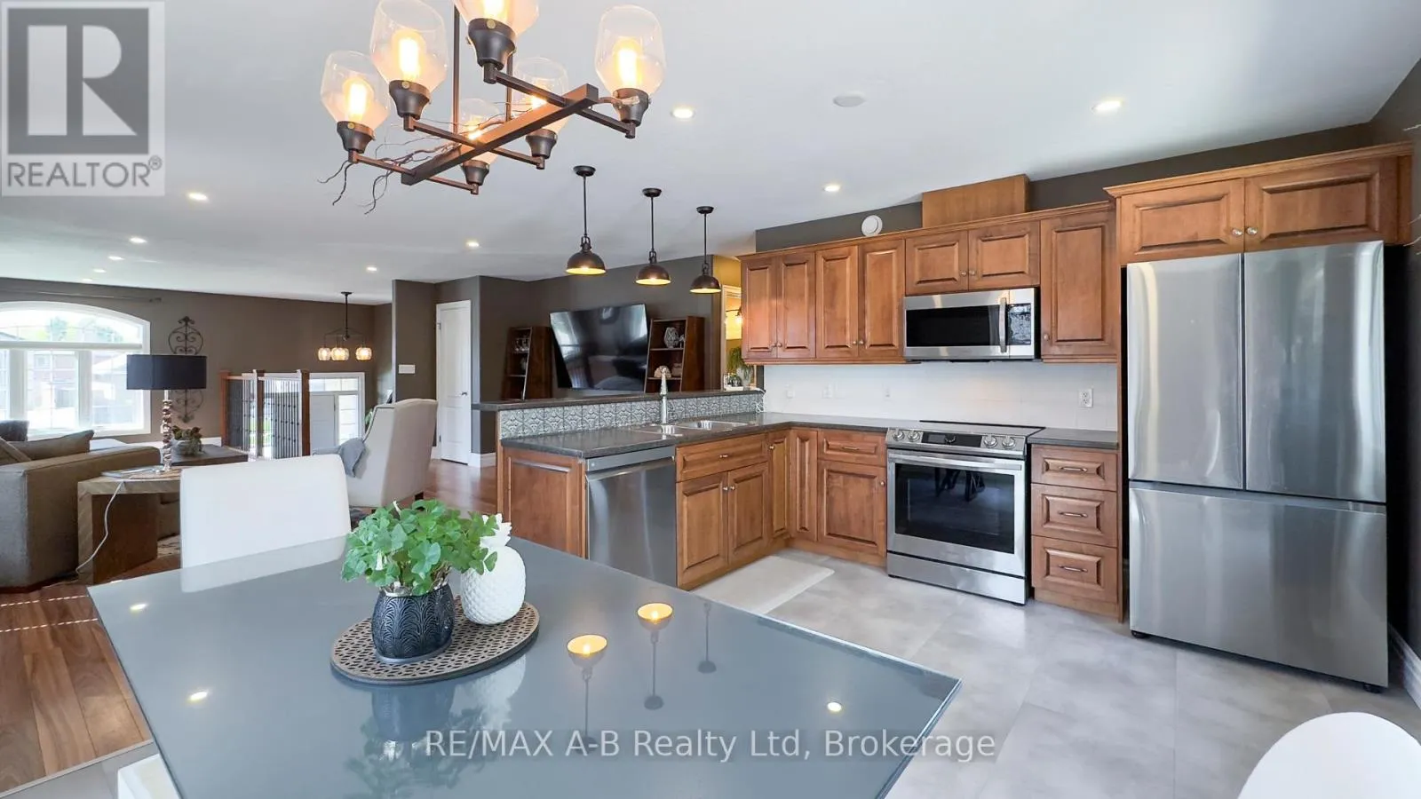 Cross Streets: Cobourg Street. ** Directions: Heading north into Mitchell on HWY 23, turn left onto Cobourg St, left on Sylvia St, property located on left. Step into this beautifully maintained raised bungalow where comfort, style, and thoughtful design come together seamlessly. Offering just under 2,400 sq. ft. of finished living space, this inviting home features 4 generous bedrooms and 3 bathrooms, perfectly suited for everyday family living. The exterior immediately impresses with its charming blend of stone and brick, complemented by welcoming columns, a stamped concrete driveway, and professionally landscaped gardens that create an inviting first impression. Inside, a bright and spacious foyer leads you into an open-concept living area filled with natural light - an ideal setting for hosting gatherings or enjoying quiet evenings at home. The well-appointed kitchen serves as the heart of the home, showcasing a convenient breakfast bar, warm maple cabinetry, brand-new stainless steel appliances, a stone backsplash, and updated vinyl tile flooring. The adjoining dining area offers the perfect spot for family meals and casual entertaining. The main level includes two comfortable bedrooms, including a lovely primary suite complete with a walk-in closet and private 4-piece ensuite. The fully finished lower level expands your living space with large windows that brighten the entire area, making it an excellent retreat for teens, guests, or extended family. This level also includes two additional bedrooms and a full bathroom with in-floor heating for added comfort. Step outside to your own private oasis - a two-tiered deck surrounded by mature trees and a heated above-ground pool, creating the perfect backdrop for summer relaxation and fun. An oversized two-car garage with a loft provides exceptional storage and versatility. This Mitchell gem offers a functional layout, stylish finishes, and a warm, welcoming atmosphere that truly feels like home. Come experience it for yourself - book your private showing today! (id:27476)