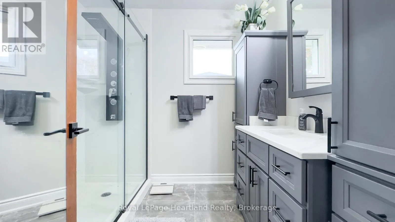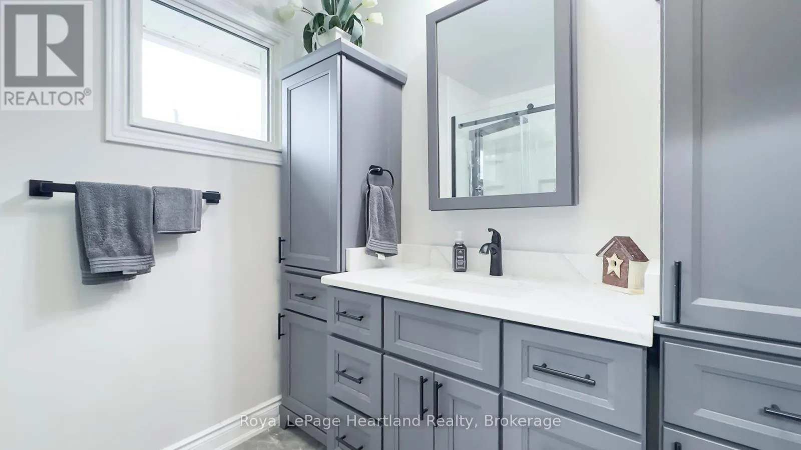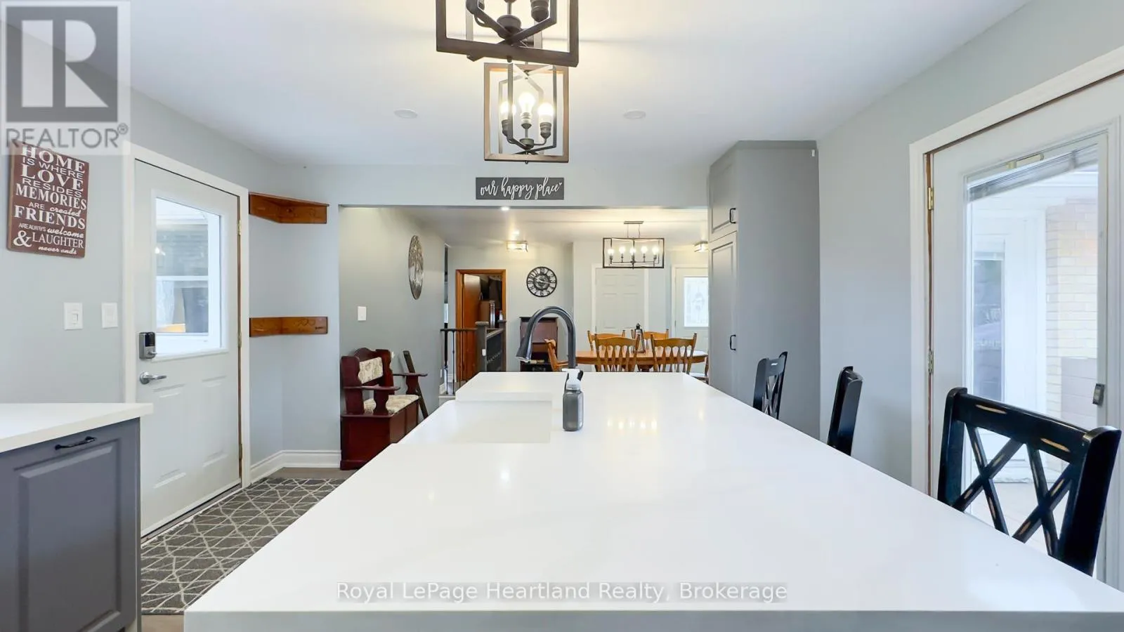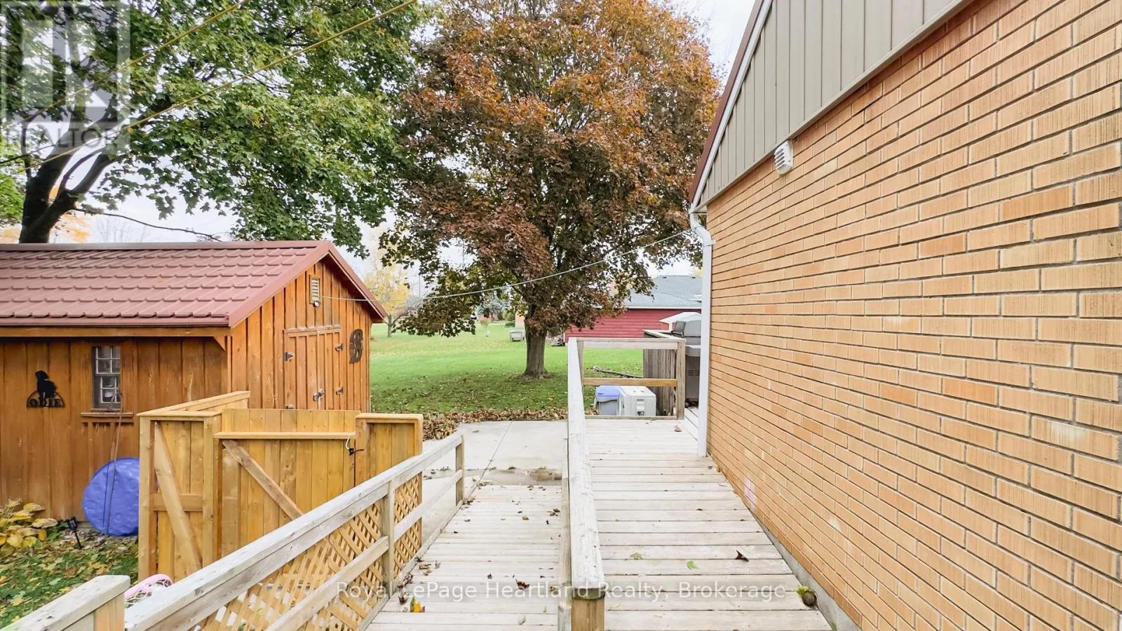 Cross Streets: St. David / Henry. ** Directions: From HWY 8, head North on St. David Street, property is on the left. Neat, tidy, and move-in ready, this 4-bedroom, 2-bath all-brick bungalow in Mitchell has been beautifully updated from top to bottom. The main floor features an open-concept layout with modern vinyl plank flooring (2022), a completely updated kitchen with custom cabinetry, quartz countertops, and a large island leading to patio doors and a fenced backyard with spacious deck. Both bathrooms have been tastefully renovated with custom cabinetry, hard-surface counters, and a marble-tile shower. The lower level has been fully finished right to the studs-re-insulated, rewired, and completed with a cozy family room, updated bathroom, and additional bedroom. Peace of mind comes easy with major upgrades already completed including a steel roof (2011), water softener, on-demand hot water heater, furnace, heat pump, and A/C (all 2022). Outside you'll appreciate the 12' x 20' shed for all your storage needs. A solid, stylish home in a family-friendly community, one block away from schools and arena - just minutes from Stratford, offering comfort, quality, and excellent value (id:27476)
