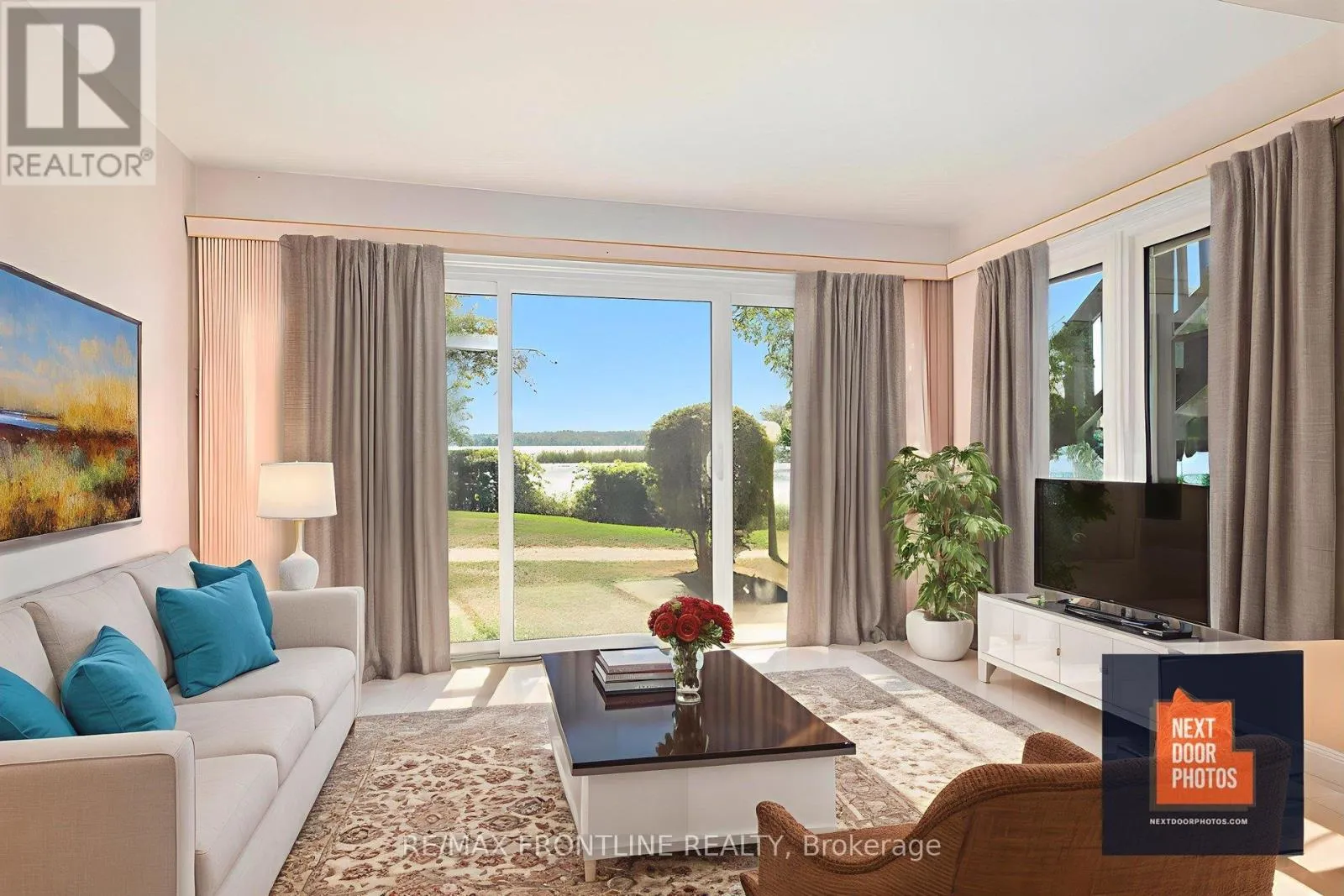 Cross Streets: Main St & Bedford St. ** Directions: From Perth take County 10 (Scotch Line Rd) to Westport, Road also known as Main St when entering the Village of Westport. WATERFRONT GROUND-FLOOR CONDO - WOW! Check out the new VIRTUALLY STAGED PHOTOS & envision the POTENTIAL waiting for you here! The lucky new owner will capture a rare opportunity to own a ground-floor waterfront condo in sought-after Mill Cove, with fabulous friendly neighbours. Nestled in the heart of Westport, this residence is perfectly positioned to enjoy the best of the Rideau system with quaint shops, inviting restaurants, and a vibrant waterfront lifestyle just steps away. This sun-drenched unit showcases timeless elegance with stately architectural details, including graceful pillars and a dramatic barrel vaulted ceiling. Inside you'll find an expansive living/dining area, inviting sunroom, two spacious bedrooms, two full bathrooms, in-suite laundry, and a large, light-filled kitchen designed for both entertaining and everyday living. Every window captures stunning views of the water and impeccably landscaped grounds, bringing the outdoors in. Convenient ground-level access just steps to your parked car, makes it easily accessible and shopping days are a breeze! Two sets of patio doors fill the space with light, and allow you the luxury of stepping out to your private terrace to enjoy panoramic views of the Upper Rideau, lush gardens and the soothing sound of waterfalls, while private floating docks make it effortless to explore the iconic Rideau Canal system right from your doorstep. Hop on your boat and take a quick trip to Portland or Rideau Ferry for lunch, or enjoy an early morning fishing expedition or relaxing sunset cruise! Its all here for you! Mill Cove combines refined living with small-town charm, offering a waterfront lifestyle that's as relaxed as it is luxurious. A must see property - Make it yours today! Maintenance Monthly Fee $870.25 covers Water usage , Common Elements, Building Insurance, Parking & the BEST PERK is EXCLUSIVE DOCK PRIVILEDGES FOR OWNERS ONLY - the LIFESTYLE is PRICELESS! (id:27476)