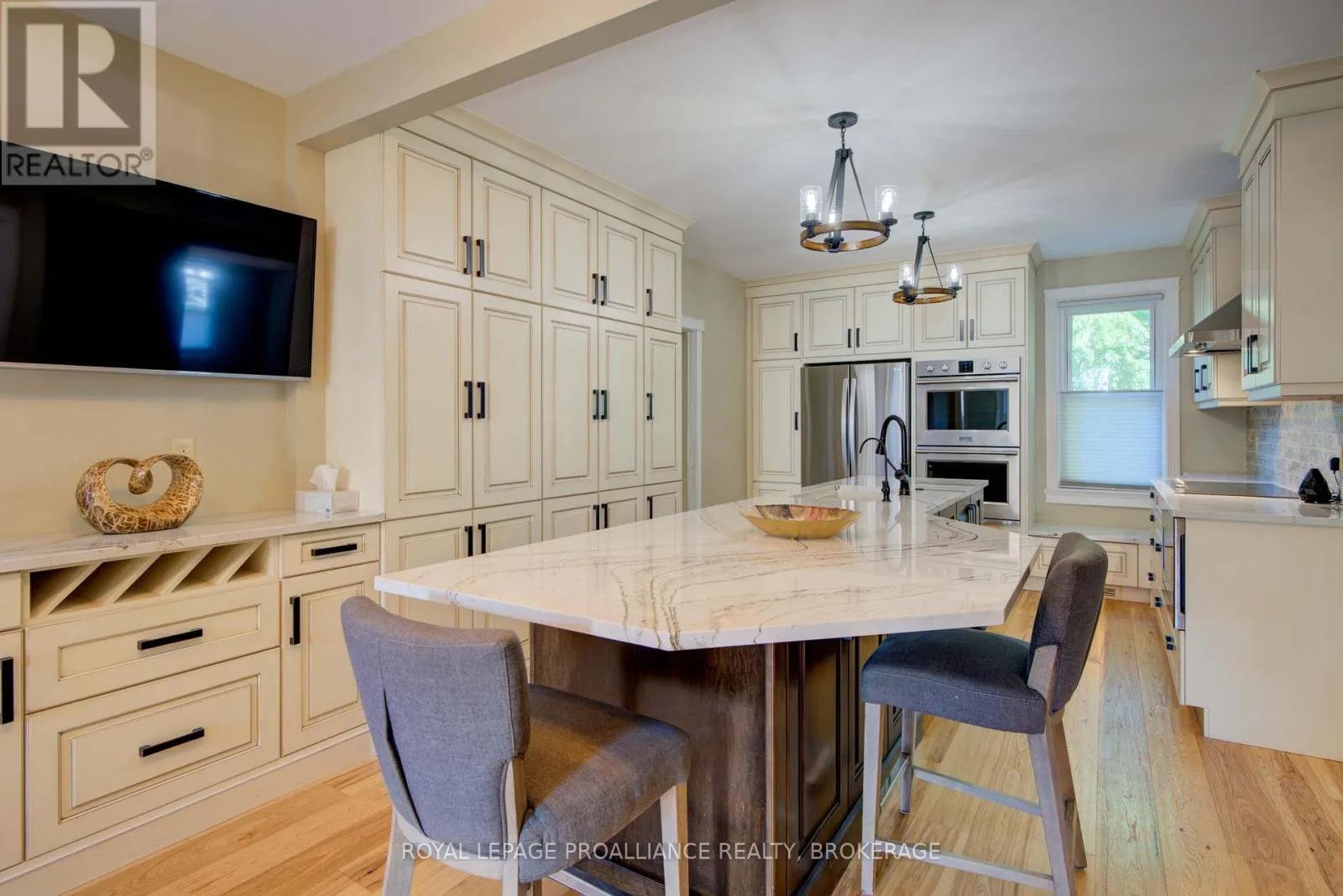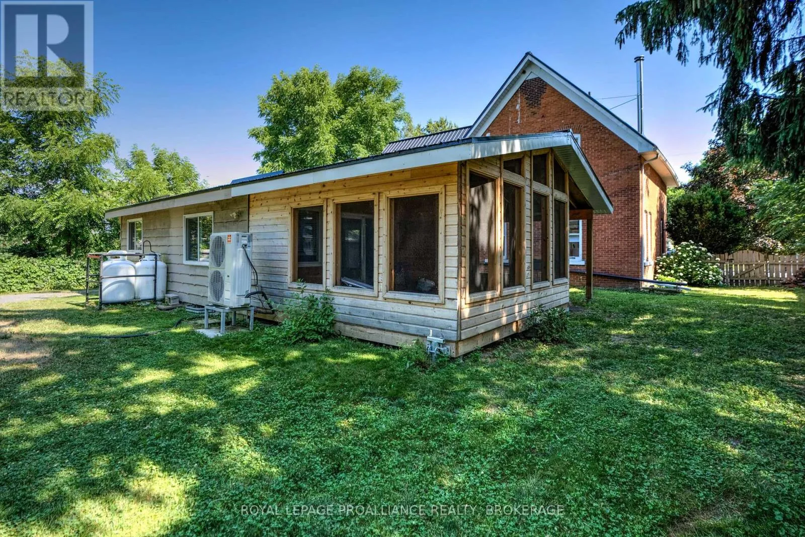 Cross Streets: Spring St. & Church St. ** Directions: Spring Street in Westport. Charming red brick home in the heart of the Village of Westport, blending timeless character with modern finishes. Beautifully renovated and set on a nicely landscaped lot, this property is within walking distance to cafes, restaurants, shops, the marina, and Upper Rideau Lake. The main floor offers convenient one-level living with a spacious rear master bedroom featuring a large closet, ensuite bath, and adjacent laundry room. A welcoming foyer entrance is complemented by a side entry leading directly into the kitchen and dining area. Highlights include hickory hardwood flooring, a high-end gourmet kitchen with island, a bright dining space, a stately living room with fireplace, and a dedicated office area. A large front room provides flexible use as a family room, home office, or potential retail space. At the back of the home, a private three-season sunroom off the master bedroom offers bug-free outdoor enjoyment and a wonderful space for relaxing or entertaining, with direct access to the backyard. The second level features a separate entrance and could serve as a short-term vacation rental, offering three bedrooms, a 4-piece bath, and a cozy sitting/coffee area. The well-maintained property also includes a sturdy storage garage in the rear yard. Recent updates include a new metal and flat roof, heat pump, and propane furnace. A truly gorgeous property in the heart of the beautiful Village of Westport. (id:27476)