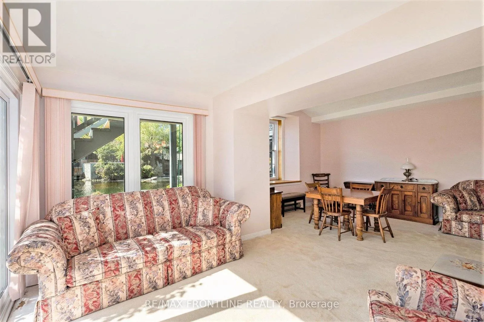 Cross Streets: Main St & Bedford St. ** Directions: From Perth take County Rd 10 (Scotch Line Rd) to Westport, Road also known as Main St when entering the Village of Westport. WATERFRONT GROUND-FLOOR CONDO - WOW! Check out the new VIRTUALLY STAGED PHOTOS & envision the POTENTIAL waiting for you here! The lucky new owner will capture a rare opportunity to own a ground-floor waterfront condo in sought-after Mill Cove, with fabulous friendly neighbours. Nestled in the heart of Westport, this residence is perfectly positioned to enjoy the best of the Rideau system with quaint shops, inviting restaurants, and a vibrant waterfront lifestyle just steps away. This sun-drenched unit showcases timeless elegance with stately architectural details, including graceful pillars and a dramatic barrel vaulted ceiling. Inside you'll find an expansive living/dining area, inviting sunroom, two spacious bedrooms, two full bathrooms, in-suite laundry, and a large, light-filled kitchen designed for both entertaining and everyday living. Every window captures stunning views of the water and impeccably landscaped grounds, bringing the outdoors in. Convenient ground-level access just steps to your parked car, makes it easily accessible and shopping days are a breeze! Two sets of patio doors fill the space with light, and allow you the luxury of stepping out to your private terrace to enjoy panoramic views of the Upper Rideau, lush gardens and the soothing sound of waterfalls, while private floating docks make it effortless to explore the iconic Rideau Canal system right from your doorstep. Hop on your boat and take a quick trip to Portland or Rideau Ferry for lunch, or enjoy an early morning fishing expedition or relaxing sunset cruise! Its all here for you! Mill Cove combines refined living with small-town charm, offering a waterfront lifestyle that's as relaxed as it is luxurious. A must see property - Make it yours today! Maintenance Monthly Fee $870.25 covers Water usage , Common Elements, Building Insurance, Parking & the BEST PERK is EXCLUSIVE DOCK PRIVILEDGES FOR OWNERS ONLY - the LIFESTYLE is PRICELESS! (id:27476)