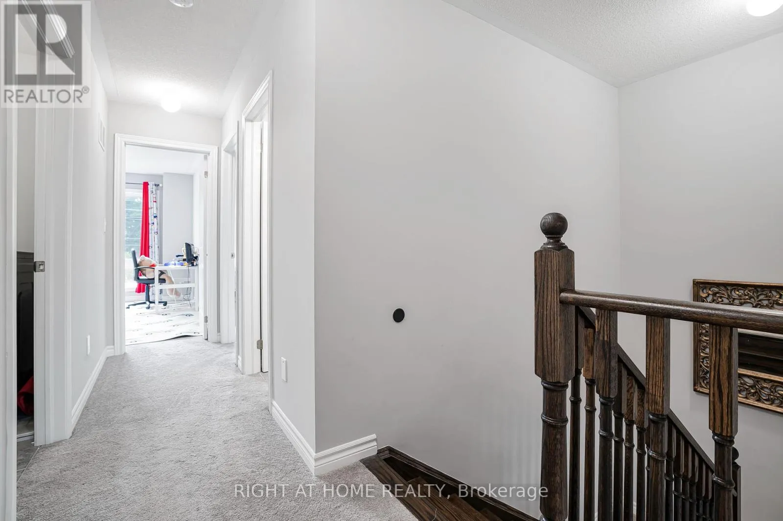 Cross Streets: Des Newman & Rossland. ** Directions: W. Traditional 2 Storey Freehold Townhouse ( No Maintenance Fees) on a full depth 110 ft deep private lot in the popular Queens Common Community by Vogue Homes. Features include a contemporary exterior design with brick elevation & Large Window in Family room with upgraded modern hardwood & Porcelain tile throughout finished areas. Main Floor Smooth Ceilings, Family Size Kitchen with Glass Backsplash. Oak Staircase takes you the the upper level where you find 3 Bedrooms with Broadloom and Laundry. Partially finished basement with Large Sitting area, One Bedroom and a Brand New Full Washroom. A very Beautiful Home that was well thought out. New Park being Constructed right behind the house and a Brand New Public School Coming Next Year. (id:27476)