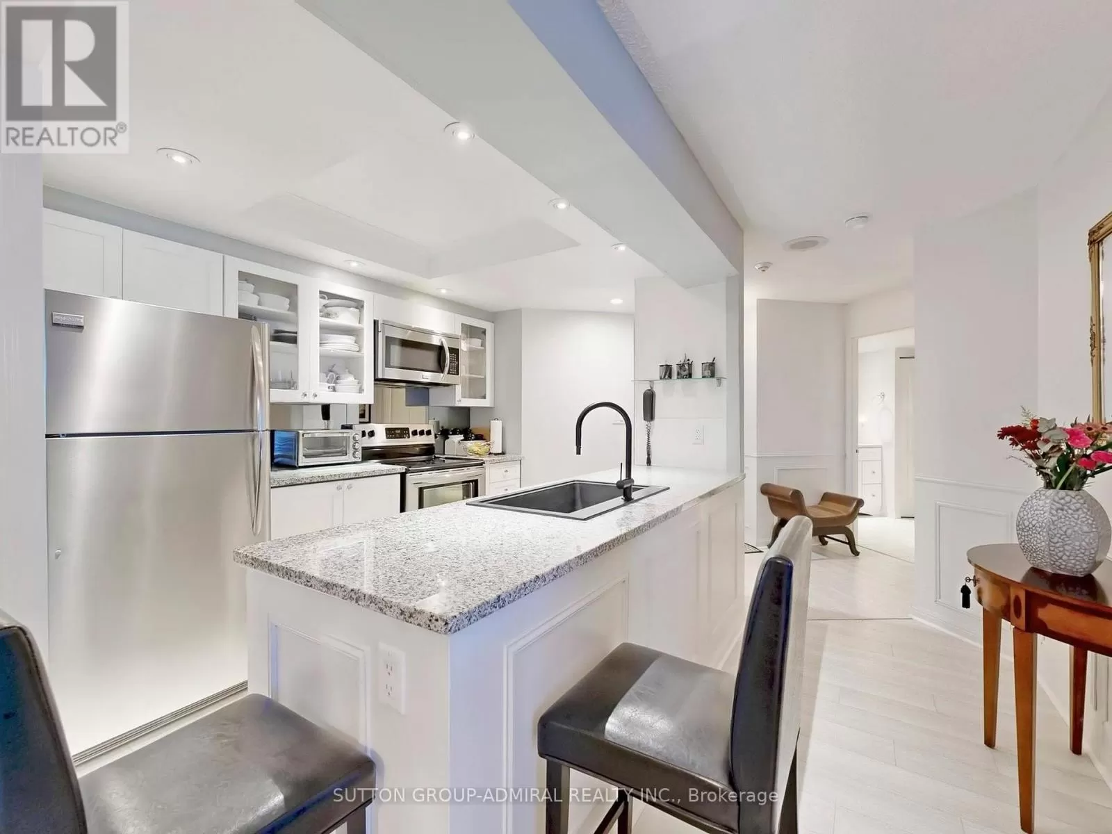 Rossland & Garden Welcome To This Beautifully Updated 1 Bedroom + Solarium Suite, Offering Generous Living Space And Modern Finishes Throughout. The Open Concept Design Features A Sleek Kitchen With Granite Countertops, Pot Lighting, And Stainless Steel Appliances, Flowing Effortlessly Into The Dining And Living Areas. The Spacious Solarium Provides A Versatile Bonus Room That Can Be Used As A Home Office, Guest Space, Or Den. Residents Of This Sought After Building Enjoy An Array Of Premium Amenities, Including An Indoor Pool, Hot Tub, Sauna, Exercise Room, Billiards Room, Party Room, And Media Room. Additional Conveniences Include Underground Parking, An Indoor Car Wash, And Beautifully Landscaped Outdoor Gardens With BBQ Area. This Move In Ready Condo Is An Excellent Choice For Those Seeking Modern Style, Ample Space, And An Unbeatable Location. (id:27476)