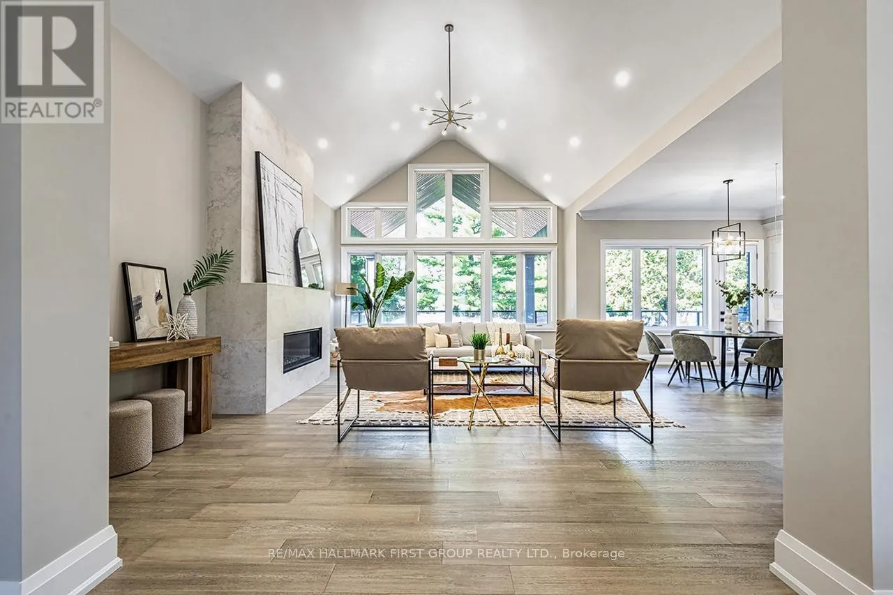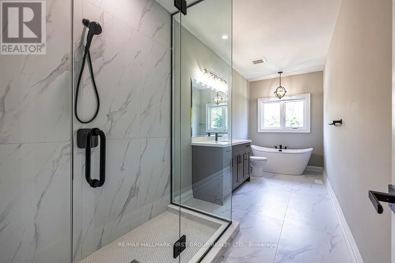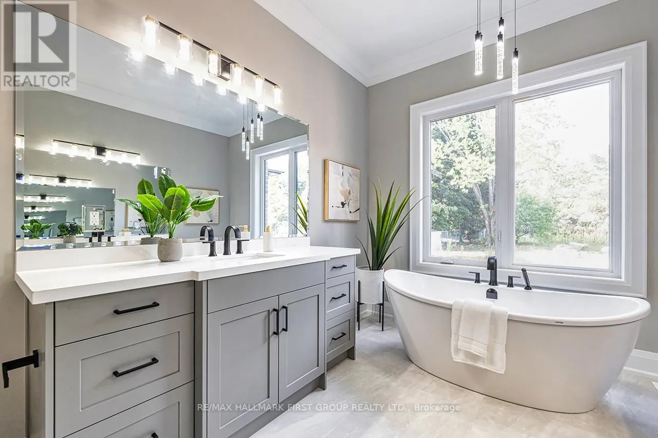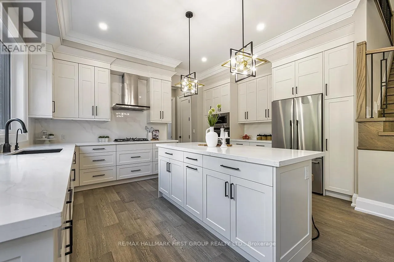 Coronation and Highway 7 Estate-Style Bungaloft in Macedonian Village, Brand New with Tarion Warranty. Welcome to 10 Phillips Road, a custom luxury bungaloft set on a 125' x 278' premium lot in the prestigious and private community of Macedonian Village, Whitby. Surrounded by nature and just a short walk to Heber Down Conservation Area, this Tarion-warranted residence offers over 4,000 sq. ft. of masterfully designed living space with rare architectural details, premium finishes, and unmatched quality. Step into the 12' foyer and experience a spacious open-concept layout with sweeping sightlines and natural light. The great room is stunning, featuring a 17-foot cathedral ceiling and a gas fireplace, which flows into a chef-inspired kitchen and formal dining area. From the Fisher & Paykel built-in appliance suite to the quartz countertops and full-height quartz backsplash. The main-floor primary suite offers the perfect balance of luxury and function, featuring an 11-foot tray ceiling with pot lights, an Oversized walk-in dressing room with custom-built-ins, a 5-piece spa-like en-suite with a curbless glass shower, double vanity, built-in speakers, central vacuum and upscale finishes. The third bedroom on the main floor can be used as an office. Basement & Expansion Potential: The unfinished walkout basement offers endless opportunities with oversized above-grade windows, two rough-in 3-piece bathrooms, and one rough-in 2-piece bathroom. Rough-ins for a security system. 10 Philips is more than a home; it's a private retreat that blends architectural grandeur with everyday functionality, situated close to trails and a park. Tarion warranty included. Immediate occupancy available. (id:27476)