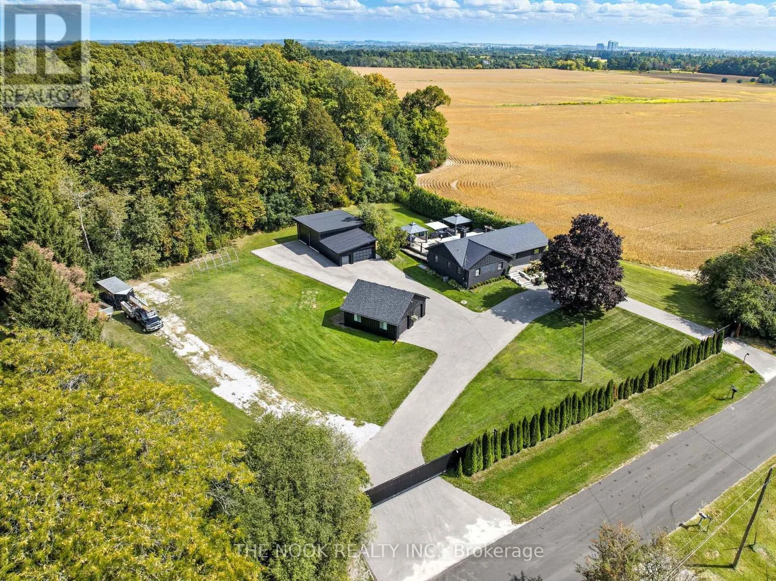 Cross Streets: Thickson Rd N/Brawley Rd E. ** Directions: Off Brawley Rd, Short part of Thickson Rd N (called Old Thickson Rd on Land Registry). This updated, all-brick bungalow sits on a private 1-acre lot just north of Brooklin and minutes to Hwy 407 for a quick commute. Perfect for the car enthusiast, hobby mechanic, or anyone wanting serious garage space, the property features a 420 sq. ft. insulated & heated workshop for year-round projects, along with a massive 3-car garage (over 1,400 sq. ft. in total). Two electronic gated entrances provide secure access, parking pad, the circular driveway plus the laneway can easily accommodates 20+ vehicles, with room for trailers, toys, and guests. Stone steps and landscaped entry lead to a welcoming foyer that opens to light-filled living spaces highlighted by multiple built-in electric fireplaces and a spacious open-concept layout with modern updates throughout. The kitchen boasts abundant cabinetry, high-end stainless steel appliances, and a walkout to a huge deck with two gazebos overlooking the expansive lot, perfect for summer entertaining. Off the living room you will find the bright 4-season sunroom, featuring brand-new automatic blinds, a propane stove, wall AC, and 2 walkouts. Whether you're a plant lover looking for the perfect spot for your greenery, dreaming of a peaceful yoga or reading room, or wanting a serene office surrounded by nature, this versatile space invites you to relax and recharge.The primary bedroom includes an ensuite bath where the mirror has a built-in TV for catching up on your favourite shows while soaking in the tub, while the second bedroom offers his-and-her closets. The lower level provides even more living space with an open-concept rec room combined with a bedroom, laundry, and a large storage/utility room. With most updates completed within the last three years, this property is a rare find: an updated country retreat with the ultimate setup for car lovers, mechanics, or anyone craving a serious man cave and workshopall while enjoying the peace of country living just minutes from the city. (id:27476)