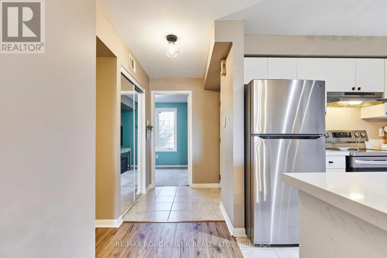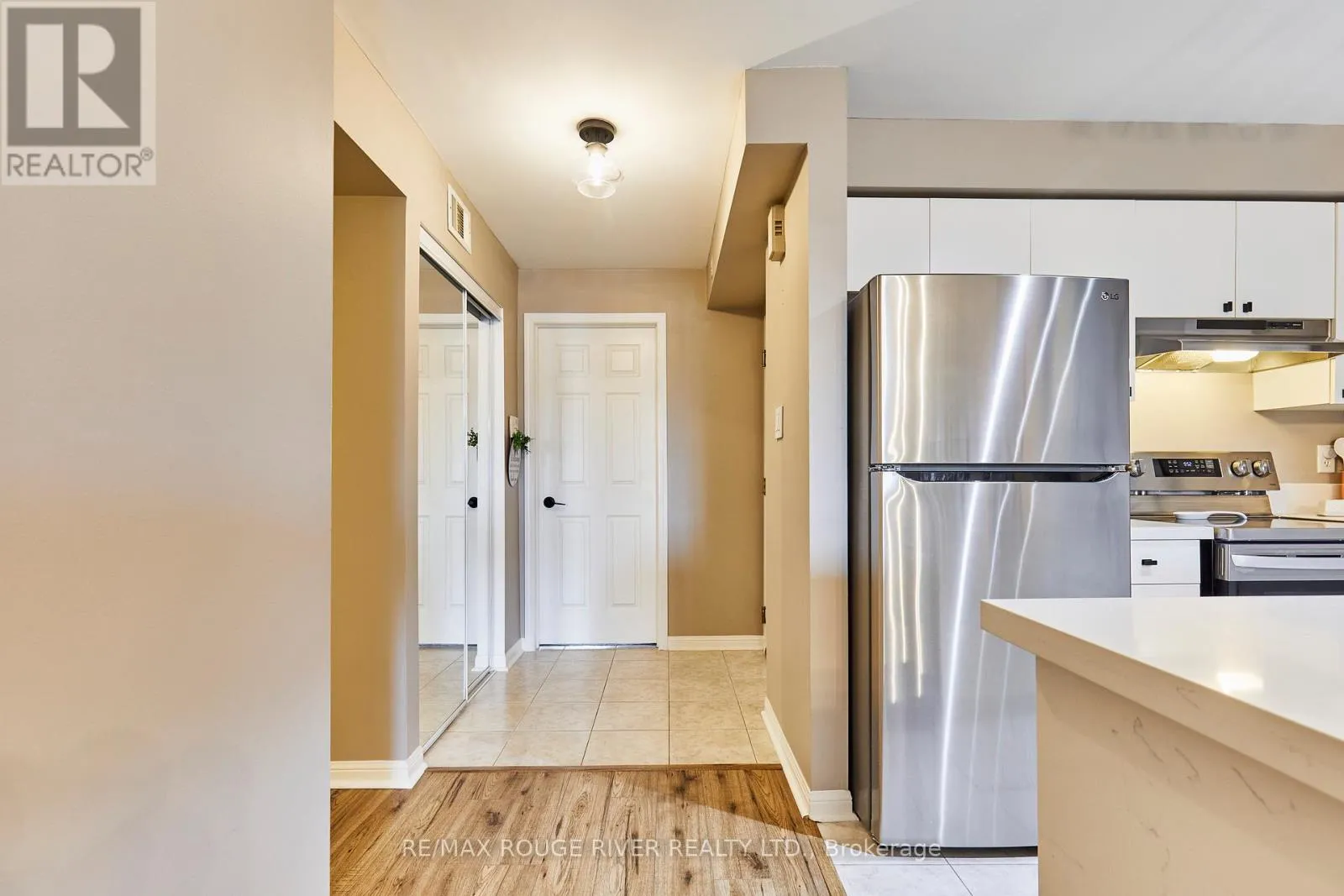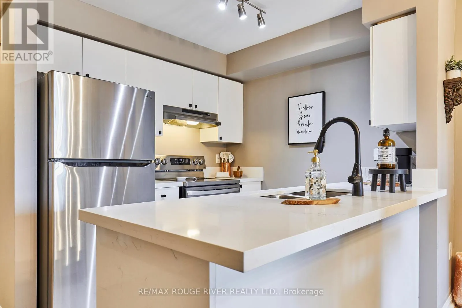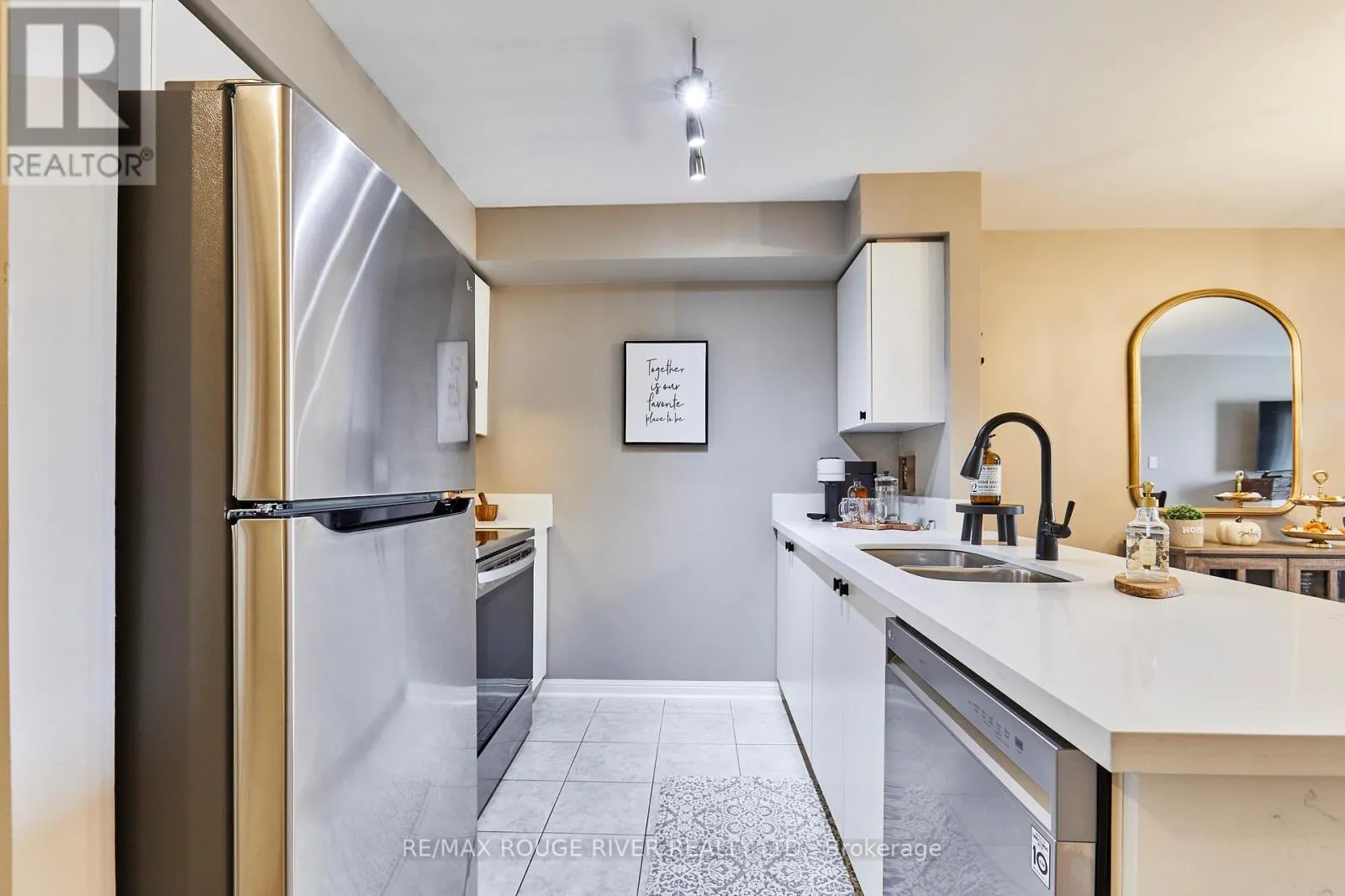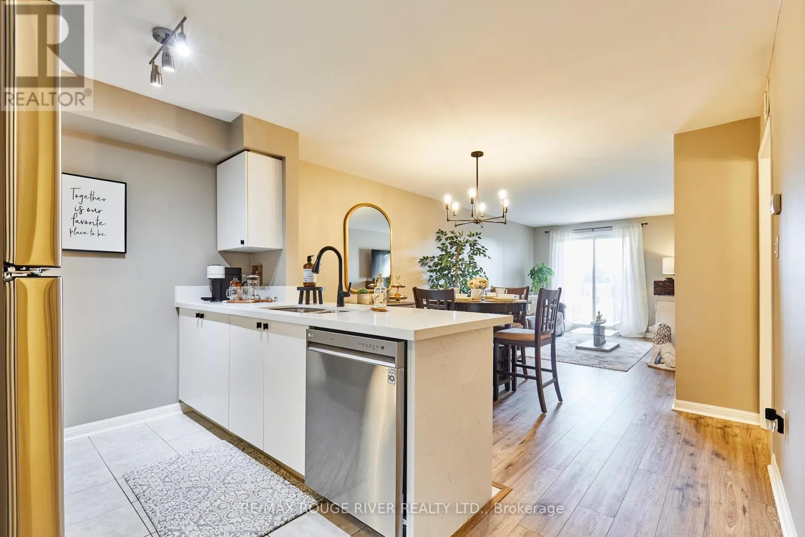 Cross Streets: Brock and dryden. ** Directions: Located off Thickson Rd N & Dryden Blvd, in Whitby. A beautifully maintained and spacious 2 bedroom, 2 bathroom condominium in the sought after Pringle Creek Community! Enjoy an updated stylish kitchen with double under-mounted sink, modern black faucet, stunning quartz counter top with extended breakfast bar. Offering plenty of counter space for hosting friends and family. Including all stainless steel appliances Bright and spacious open concept living/dining area features large windows filling the home with natural light. Upgraded premium laminate flooring in the living area, all new lighting and fixtures throughout this home. Walk-out balcony to a beautiful sunrise with updated outdoor flooring to enjoy through the seasons! A large primary bedroom features brand new carpet and walk-in closet with plenty of space. The primary bath includes updated storage cabinet and custom granite vanity with brush nickel faucet. The additional bedroom offers great space with lots of natural light currently used as a home office! Included in-unit stack-able washer and dryer, with extra space for storage Own and have the convenience of two car parking in an underground garage, with a private large storage all included with this home. Book your viewing today, this condo is complete. Located just minutes from top rated schools public transit, walking trails, pharmacy, shopping centers. Also close to Hwy 401, 407 and 412. (id:27476)