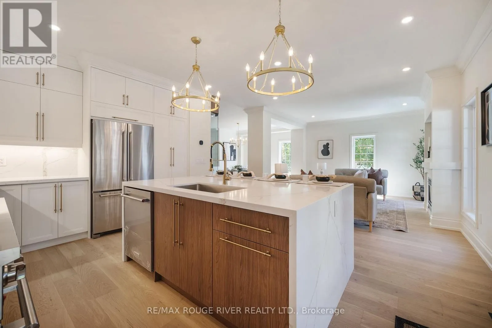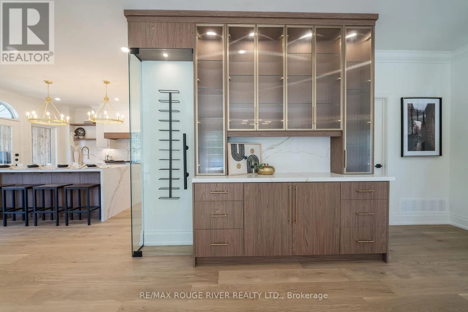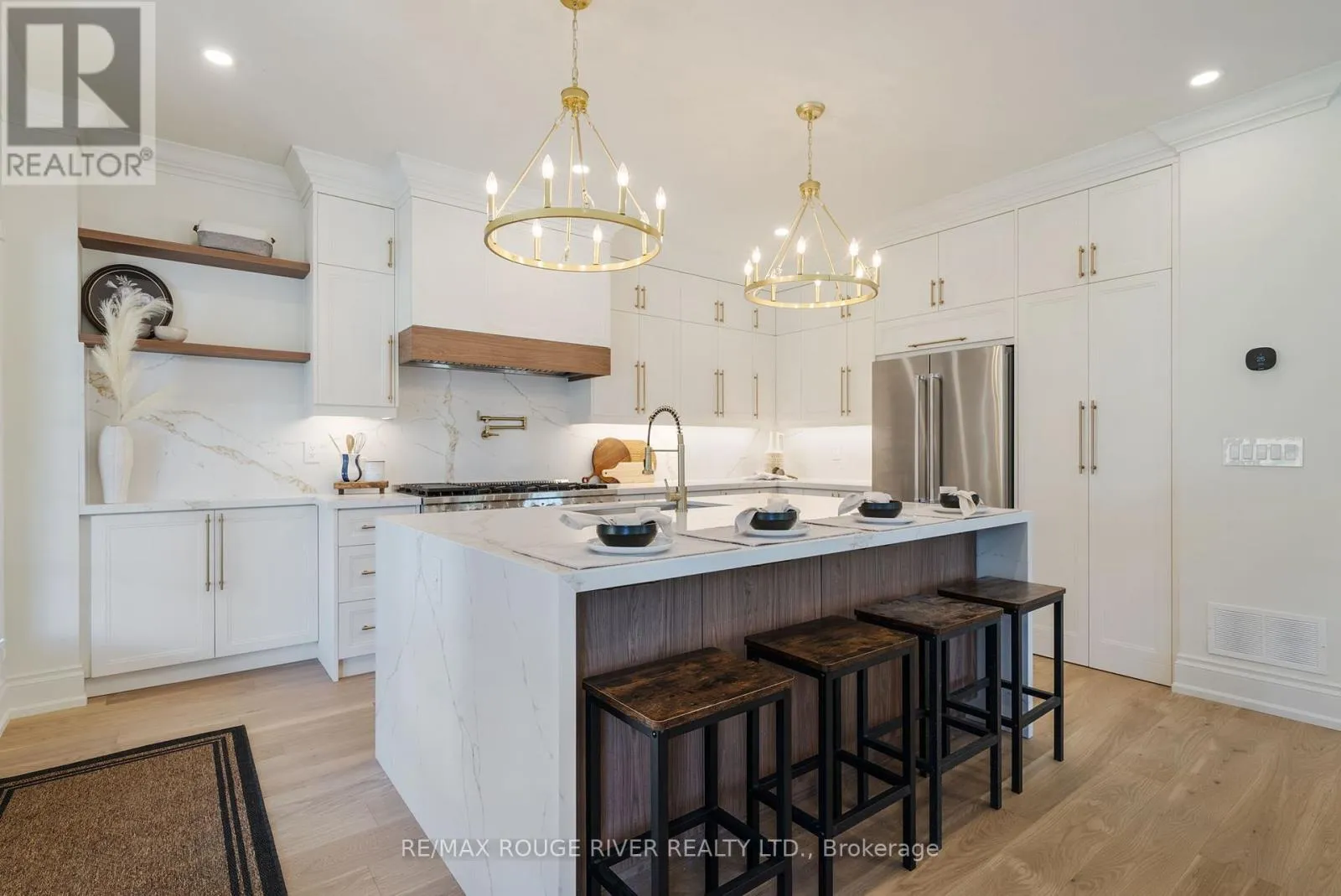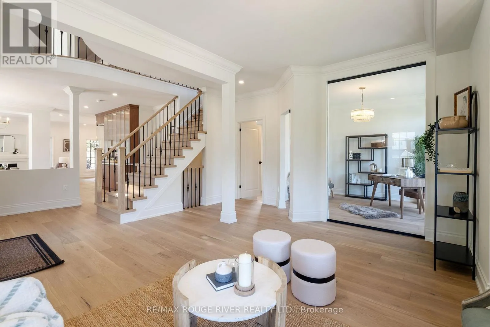 Winchester/Watford A Brooklin Stunner You Wont Want to Miss! Just steps from historic Brookline Village, this fully renovated 4+1 bedroom, 4-bathroom home blends timeless charm with modern luxury across nearly 4,500 sq. ft. of turnkey living space. With a detached double garage, wraparound covered porch, and beautifully curated finishes throughout, this property is equal parts inviting and impressive. At the heart of the main floor, the chefs kitchen steals the show with its 48" gas range, top-tier appliances, waterfall quartz island, matching quartz backsplash, and hidden walk-in pantry that keeps counters clear and clutter-free. From here, walk out to the fully covered deck with a hot tub perfect for year-round entertaining and cozy evenings at home. The open-concept layout was designed with gatherings in mind, highlighted by a grand white oak staircase, custom fluted cabinetry with wine display, and a glass-enclosed office that adds a touch of contemporary elegance. Upstairs, retreat to the spacious primary suite, complete with an electric fireplace, an expansive custom walk-in closet room, and a spa-worthy 5-piece ensuite featuring dual vanities, a soaking tub, and glass-enclosed shower. The finished lower level offers incredible versatility and in-law suite potential, with a massive rec room, sleek wet bar, additional bedroom, and plenty of space for movie nights or game-day hosting. Located in one of Brookline most sought-after neighborhoods, this home is within walking distance of top-rated schools and minutes to the now toll-free eastern 407 making commuting effortless while keeping cottage country within easy reach. This is more than a home its a lifestyle upgrade. Come see it for yourself! Please Note The 10x16 pool image is a professional rendering, and a quote is available upon request. With the right offer, the seller may consider installing the pool at their expense. (id:27476)