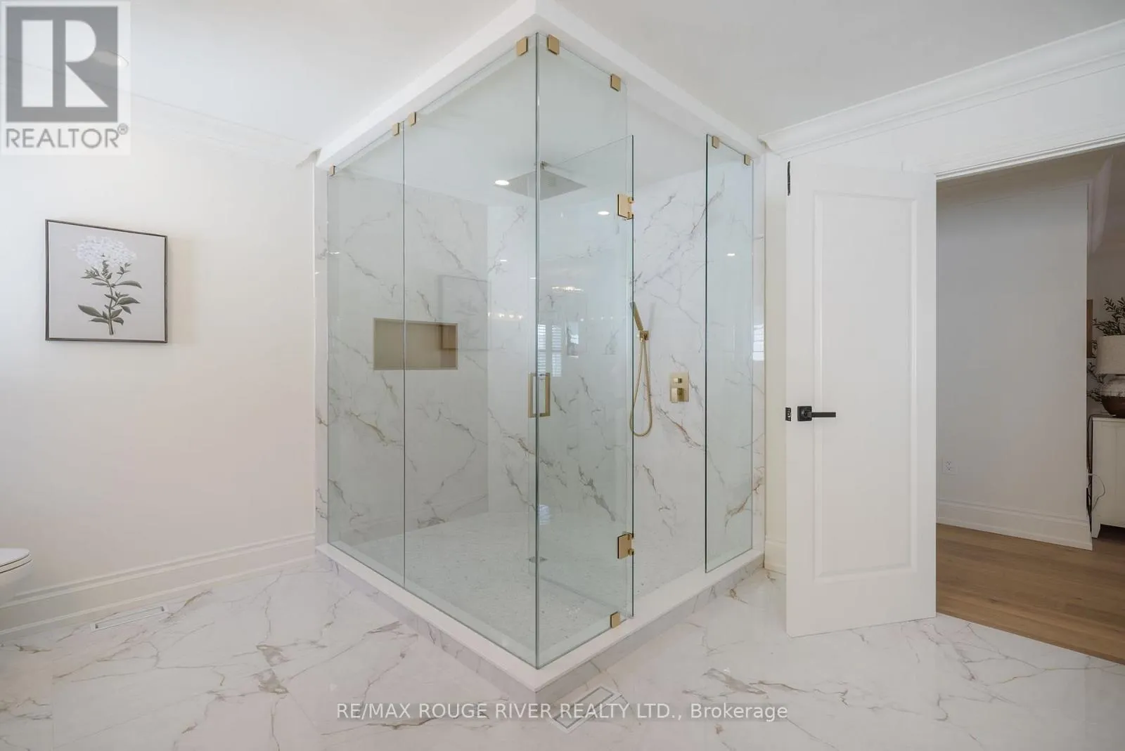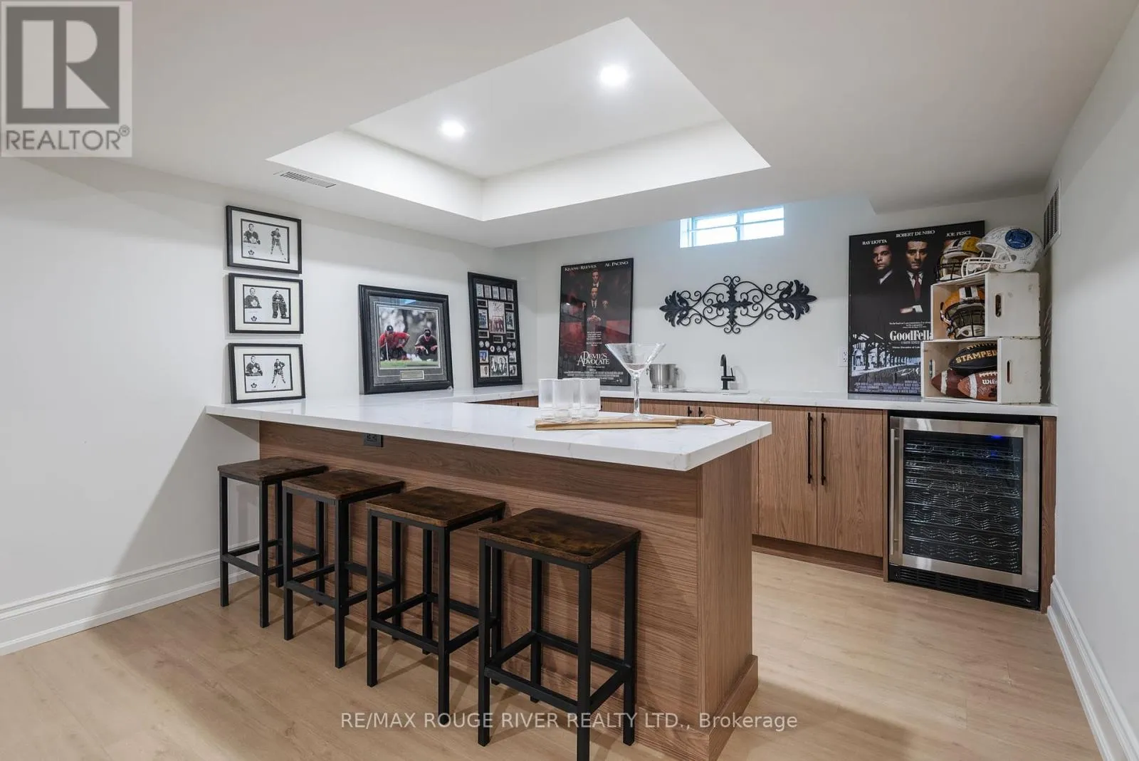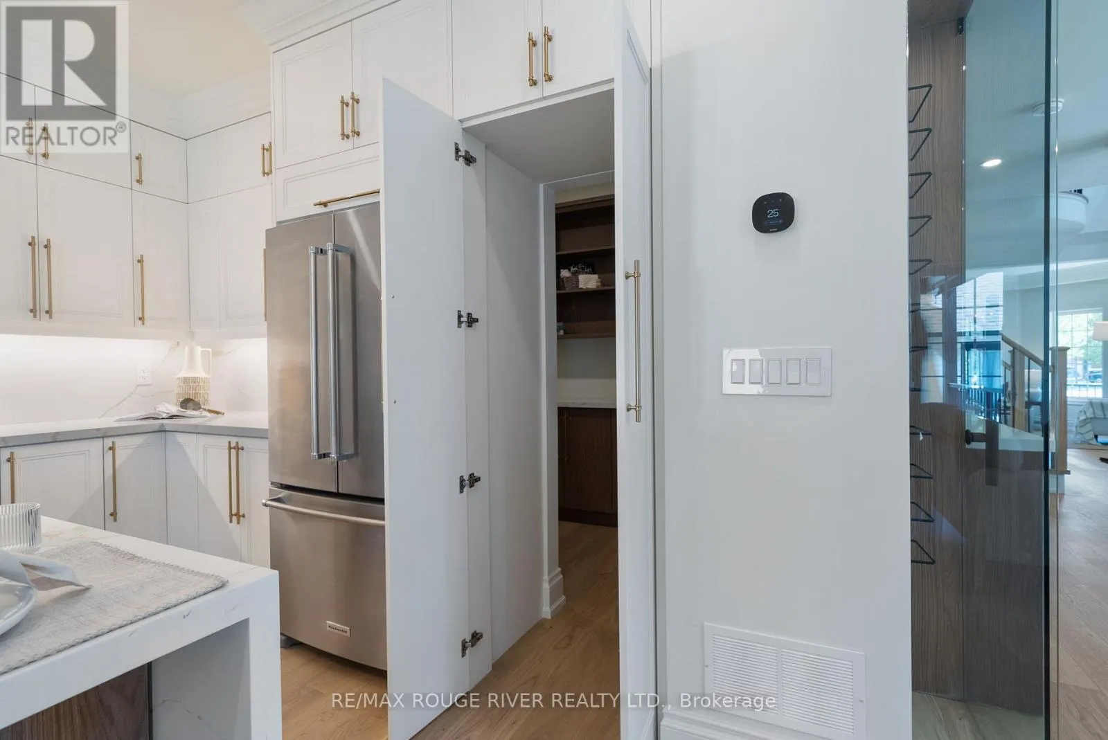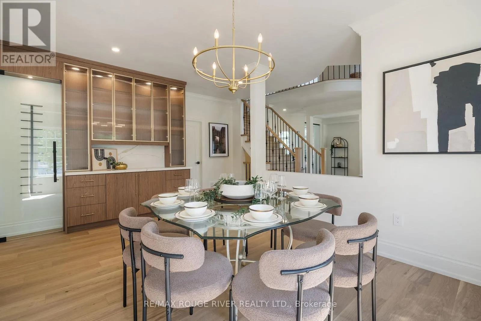 Winchester/Watford A Brooklin Stunner You Wont Want to Miss! Just steps from historic Brookline Village, this fully renovated 4+1 bedroom, 4-bathroom home blends timeless charm with modern luxury across nearly 4,500 sq. ft. of turnkey living space. With a detached double garage, wraparound covered porch, and beautifully curated finishes throughout, this property is equal parts inviting and impressive. At the heart of the main floor, the chefs kitchen steals the show with its 48" gas range, top-tier appliances, waterfall quartz island, matching quartz backsplash, and hidden walk-in pantry that keeps counters clear and clutter-free. From here, walk out to the fully covered deck with a hot tub perfect for year-round entertaining and cozy evenings at home. The open-concept layout was designed with gatherings in mind, highlighted by a grand white oak staircase, custom fluted cabinetry with wine display, and a glass-enclosed office that adds a touch of contemporary elegance. Upstairs, retreat to the spacious primary suite, complete with an electric fireplace, an expansive custom walk-in closet room, and a spa-worthy 5-piece ensuite featuring dual vanities, a soaking tub, and glass-enclosed shower. The finished lower level offers incredible versatility and in-law suite potential, with a massive rec room, sleek wet bar, additional bedroom, and plenty of space for movie nights or game-day hosting. Located in one of Brookline most sought-after neighborhoods, this home is within walking distance of top-rated schools and minutes to the now toll-free eastern 407 making commuting effortless while keeping cottage country within easy reach. This is more than a home its a lifestyle upgrade. Come see it for yourself! Please Note The 10x16 pool image is a professional rendering, and a quote is available upon request. With the right offer, the seller may consider installing the pool at their expense. (id:27476)