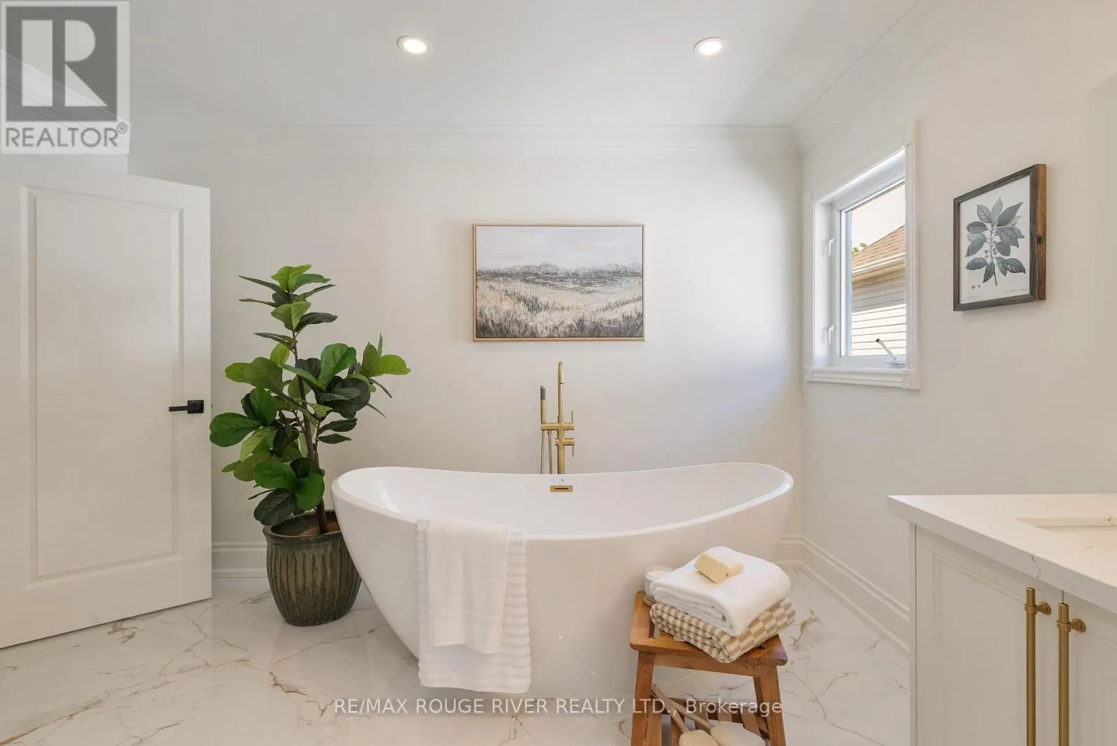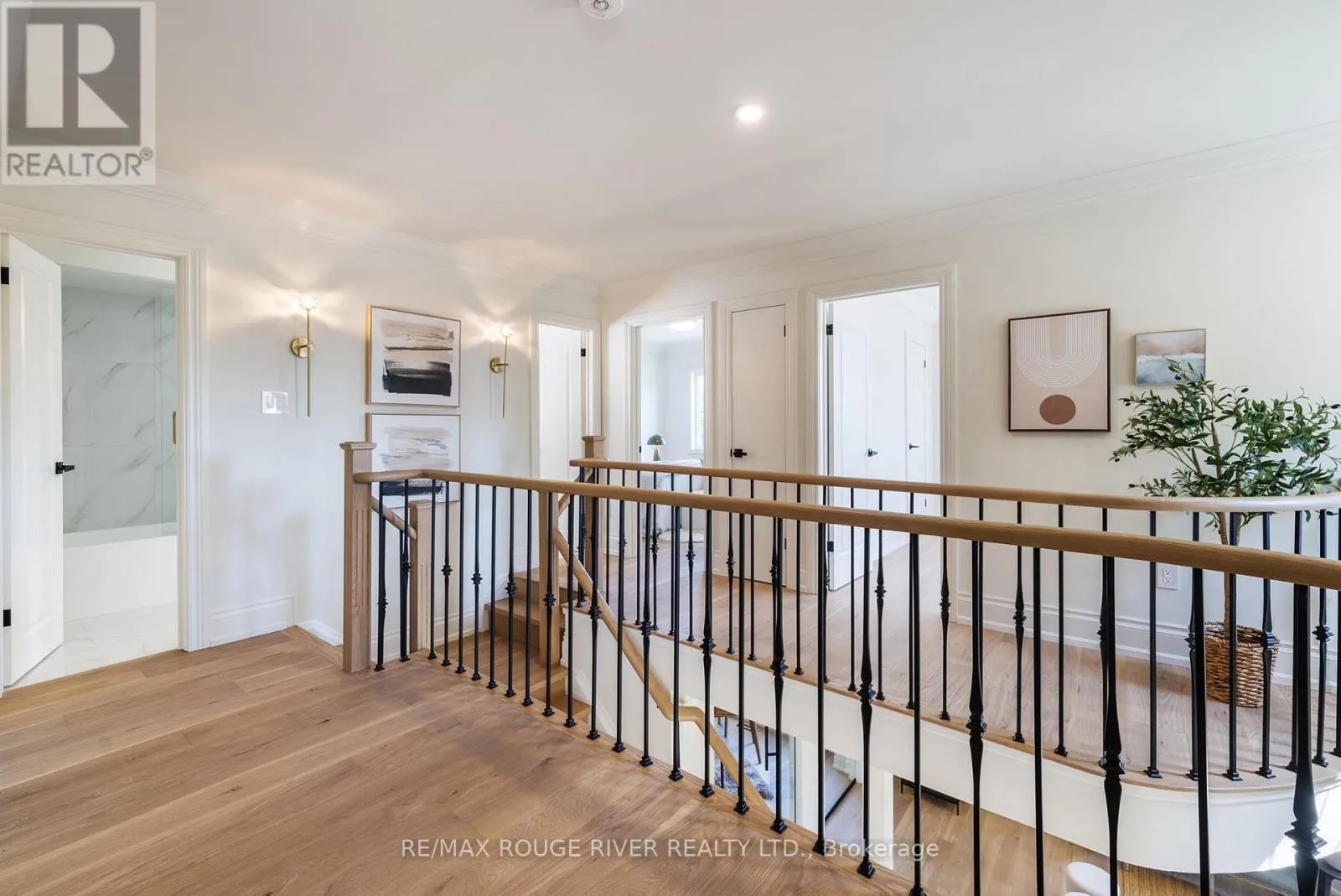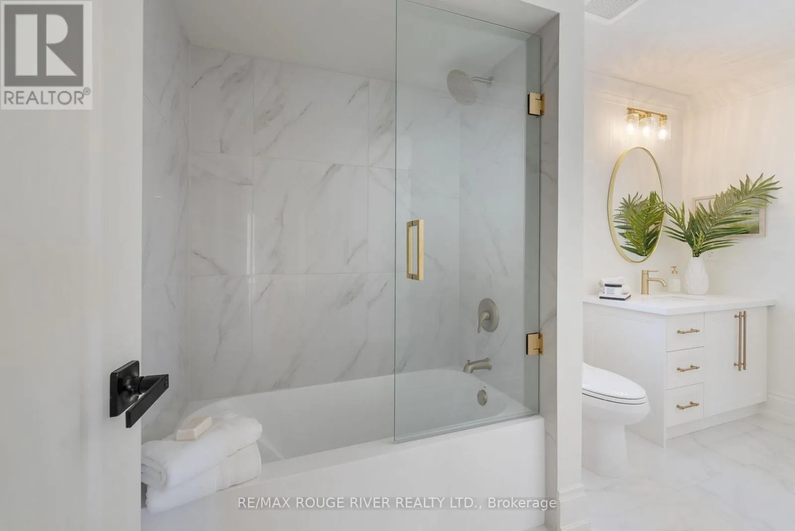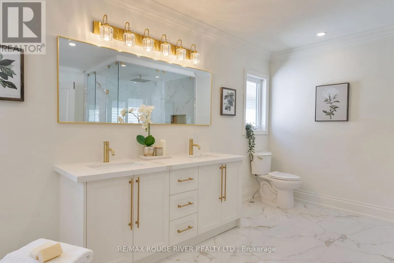 Winchester/Watford A Brooklin Stunner You Wont Want to Miss! Just steps from historic Brookline Village, this fully renovated 4+1 bedroom, 4-bathroom home blends timeless charm with modern luxury across nearly 4,500 sq. ft. of turnkey living space. With a detached double garage, wraparound covered porch, and beautifully curated finishes throughout, this property is equal parts inviting and impressive. At the heart of the main floor, the chefs kitchen steals the show with its 48" gas range, top-tier appliances, waterfall quartz island, matching quartz backsplash, and hidden walk-in pantry that keeps counters clear and clutter-free. From here, walk out to the fully covered deck with a hot tub perfect for year-round entertaining and cozy evenings at home. The open-concept layout was designed with gatherings in mind, highlighted by a grand white oak staircase, custom fluted cabinetry with wine display, and a glass-enclosed office that adds a touch of contemporary elegance. Upstairs, retreat to the spacious primary suite, complete with an electric fireplace, an expansive custom walk-in closet room, and a spa-worthy 5-piece ensuite featuring dual vanities, a soaking tub, and glass-enclosed shower. The finished lower level offers incredible versatility and in-law suite potential, with a massive rec room, sleek wet bar, additional bedroom, and plenty of space for movie nights or game-day hosting. Located in one of Brookline most sought-after neighborhoods, this home is within walking distance of top-rated schools and minutes to the now toll-free eastern 407 making commuting effortless while keeping cottage country within easy reach. This is more than a home its a lifestyle upgrade. Come see it for yourself! Please Note The 10x16 pool image is a professional rendering, and a quote is available upon request. With the right offer, the seller may consider installing the pool at their expense. (id:27476)
