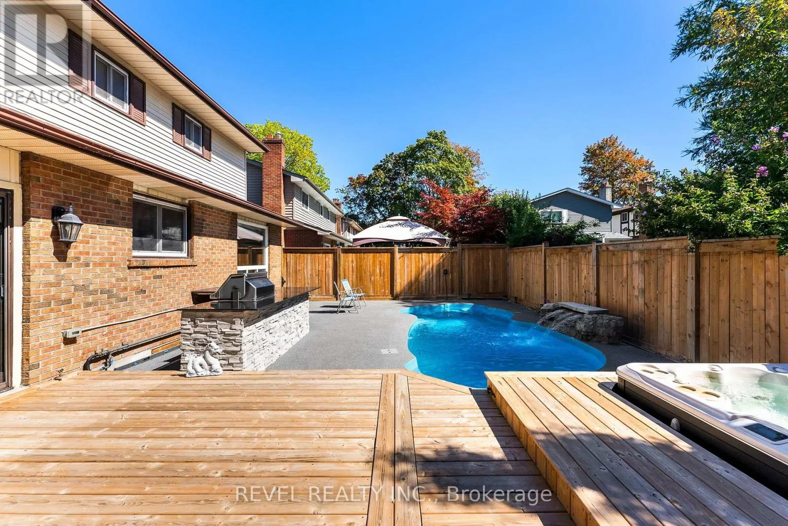 Cross Streets: Brock & Dundas. ** Directions: 401 to Brock St N to Ontario St. Experience refined living at 205 Ontario St E in Downtown Whitby, showcasing over $500K in designer upgrades. This 4-bed, 3-bath residence has been beautifully reimagined with a resort-style backyard paradise featuring a fiberglass pool with custom rock water feature, outdoor kitchen, covered entertaining pavilion, hot tub, and a newer fence for privacy. Inside, enjoy new hardwood flooring on the main and a open concept layout. Enjoy cozy nights in the family room that leads you out to your backyard oasis. Not to be outdone, the lower level, boasts a sophisticated custom bar and cold cellar. The sleek kitchen boasts soft-close cabinetry and stainless steel appliances and pot lights. Enjoy main floor laundry for convenience and an updated modern powder room and new furnace. Situated just steps from Trafalgar Castle School, boutique shops, transit, and highways, this property combines elegance, comfort, and an unmatched lifestyle. (id:27476)