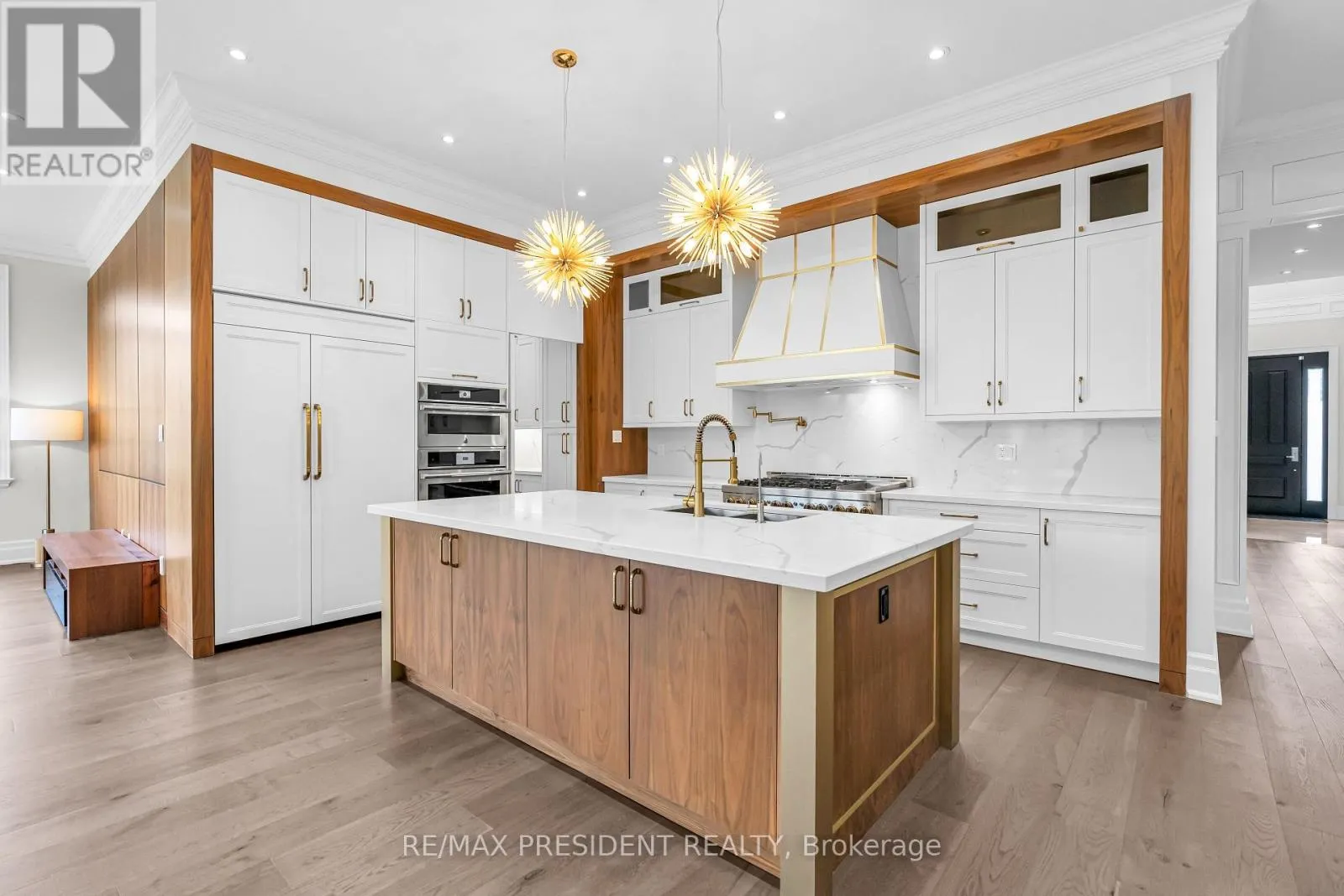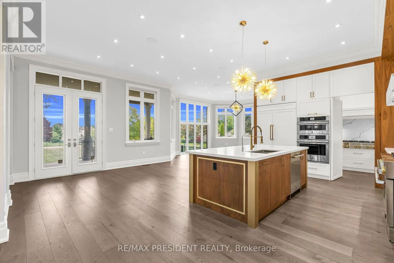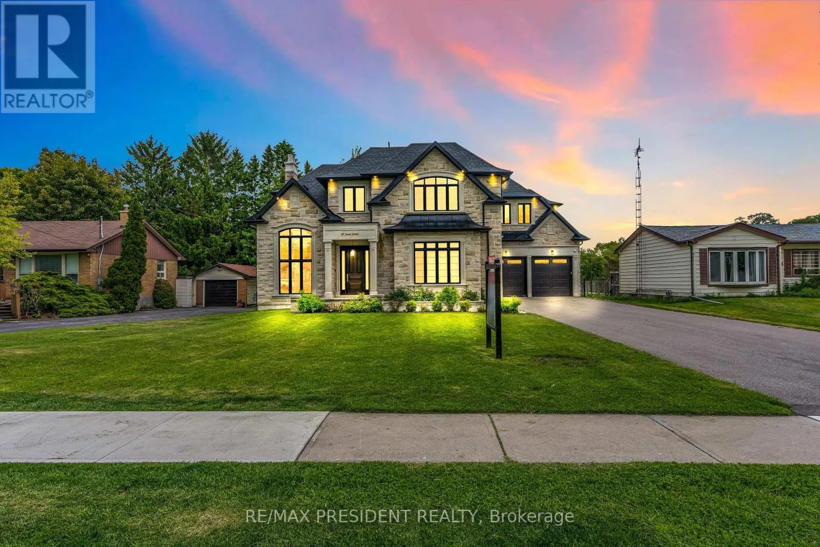 Garrard/Dundas This one-of-a-kind custom home offers over 8,000 sq ft of luxurious living space, thoughtfully designed with the finest finishes and unmatched attention to detail. Featuring two kitchens including a gourmet chefs kitchen with a 48" range, 36" cooktop, and a separate prep kitchen this residence is built for both elegance and entertaining. Soaring 11 ft ceilings on the main floor and 10 ft on the second create a grand, airy ambiance throughout. Highlights include a 7.1 surround sound theatre room, glass-walled gym, heated basement floors, private elevator, spacious ensuite baths, and an exterior clad in Indiana limestone with precast accents. The backyard is professionally landscaped and offers multiple patios for outdoor entertaining, along with a full-size basketball court perfect for luxury living both inside and out. (id:27476)