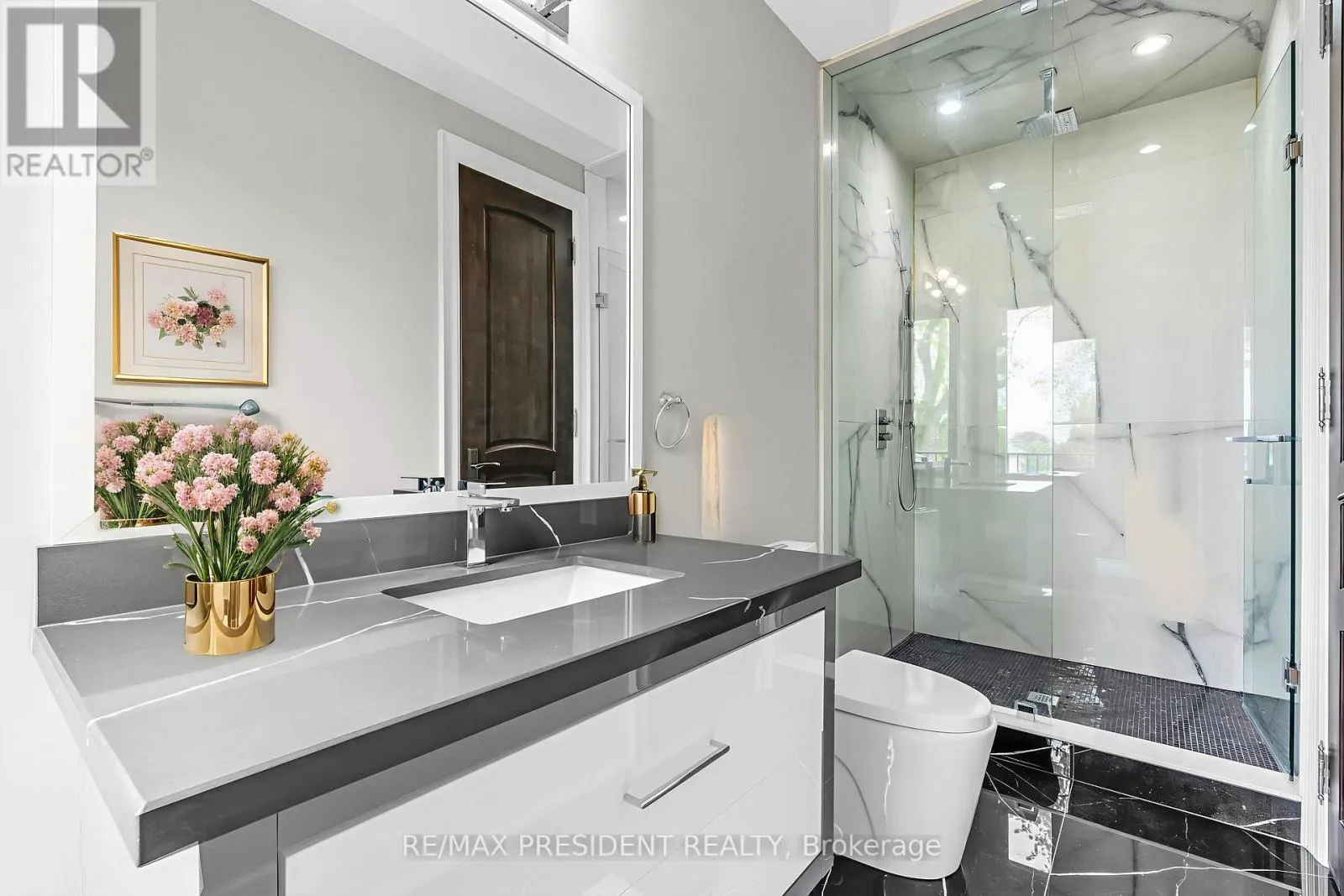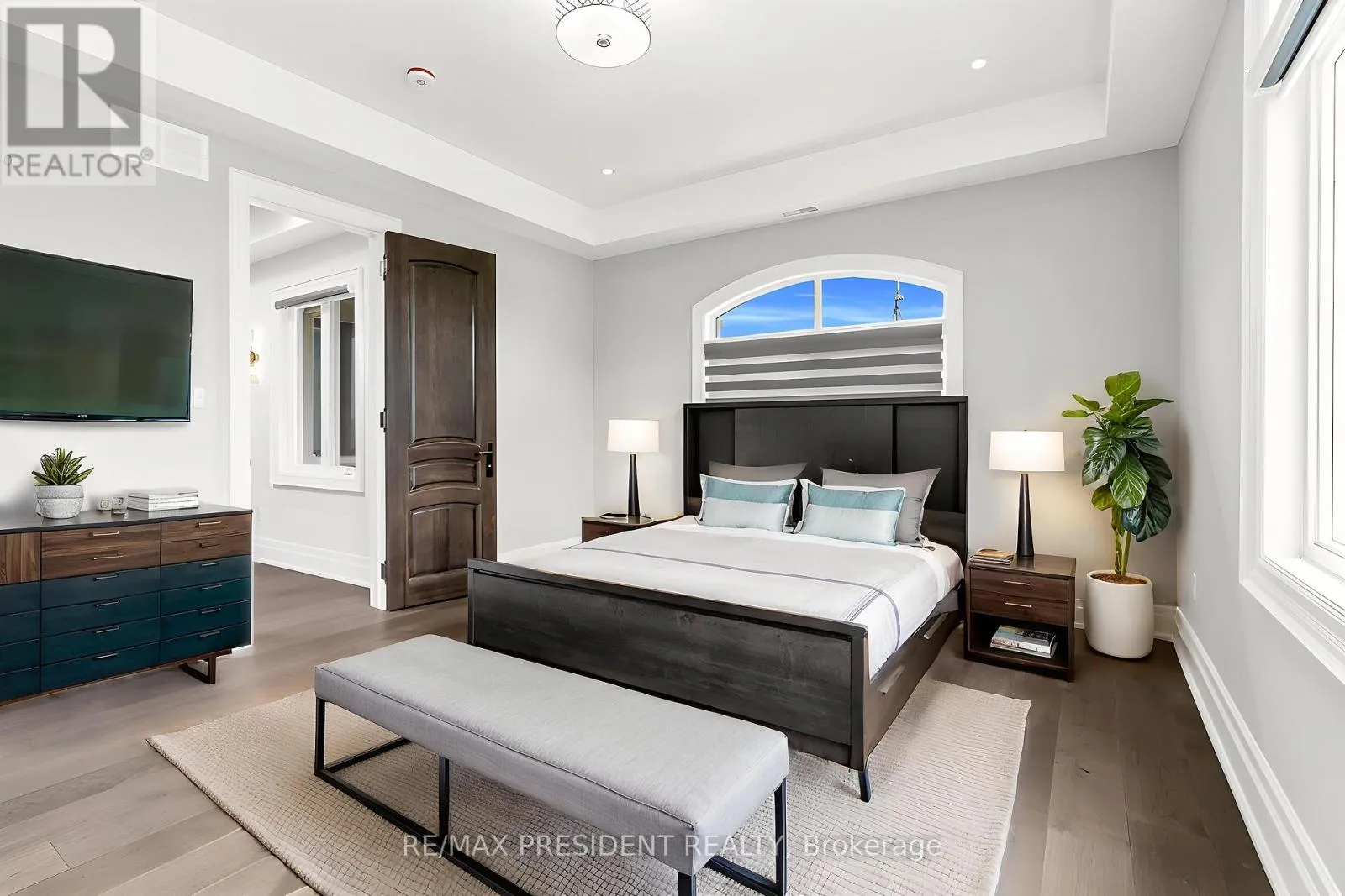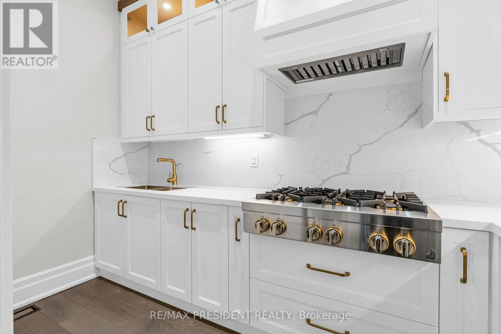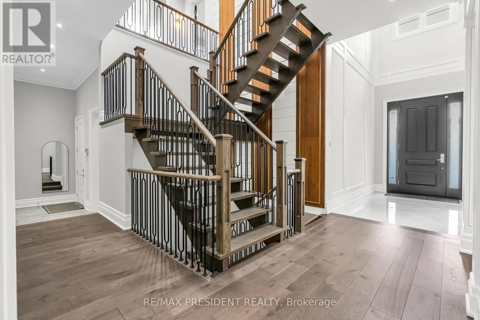 Garrard/Dundas This one-of-a-kind custom home offers over 8,000 sq ft of luxurious living space, thoughtfully designed with the finest finishes and unmatched attention to detail. Featuring two kitchens including a gourmet chefs kitchen with a 48" range, 36" cooktop, and a separate prep kitchen this residence is built for both elegance and entertaining. Soaring 11 ft ceilings on the main floor and 10 ft on the second create a grand, airy ambiance throughout. Highlights include a 7.1 surround sound theatre room, glass-walled gym, heated basement floors, private elevator, spacious ensuite baths, and an exterior clad in Indiana limestone with precast accents. The backyard is professionally landscaped and offers multiple patios for outdoor entertaining, along with a full-size basketball court perfect for luxury living both inside and out. (id:27476)