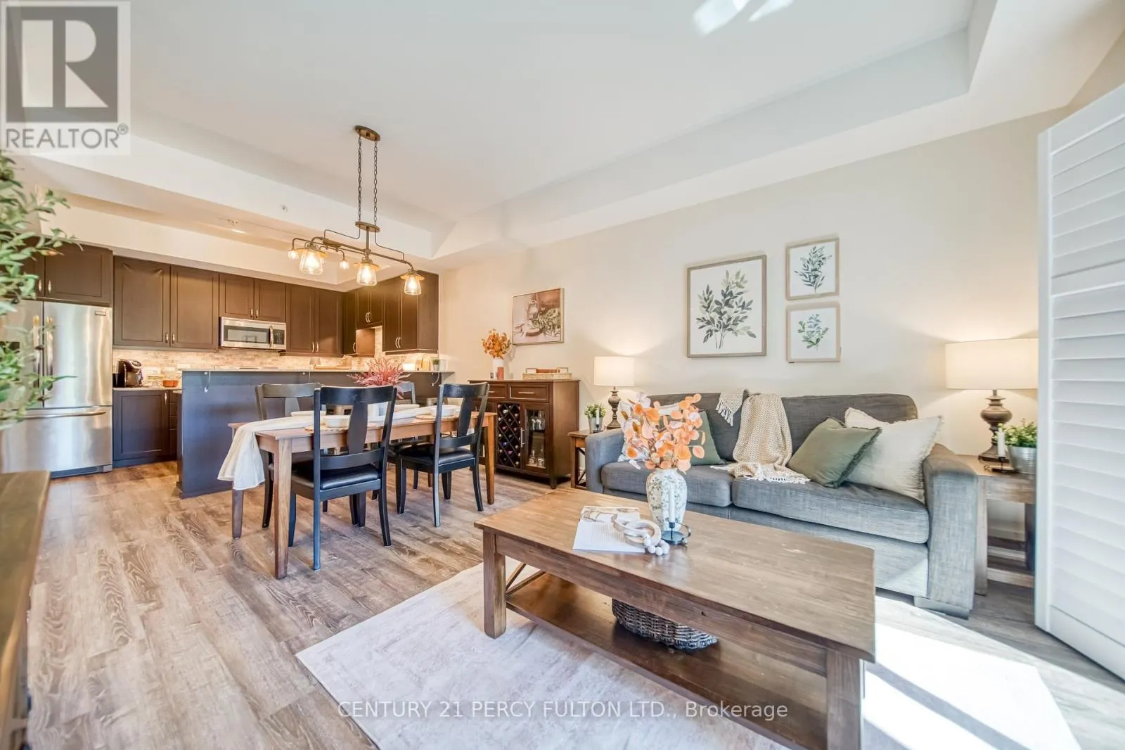 Cross Streets: Victoria & Gordon. ** Directions: Drive South on Victoria until you hit the water. Welcome To Your Lakeside Retreat! This Rarely Offered Freshly Painted South-Facing Suite At Harbourside Condos Combines A Smart 1+1 Bedroom Layout With Thoughtful Upgrades Throughout. The Kitchen Features Quartz Counters, Undermount Sink, Upgraded Appliances With Microwave Above The Stove, Under-Cabinet Lighting, Extra Plugs, Added Storage Including A Larger Above-Fridge Cabinet & Side Panel, Plus Bonus Shelving. The Open Concept Design Flows Seamlessly From Kitchen To Dining To Spacious Living Area, Complete With Raised Breakfast Bar & Walkout To A Sun-Filled Covered Balcony. Enhanced Lighting With A Statement Island Fixture & Ceiling Lights In The Bedroom & Den Add A Modern Touch. All Tucked Away In Port Whitby Durhams Best Kept Secret, Just Steps To The Lake. (id:27476)