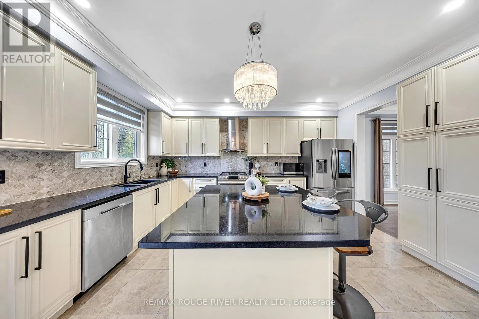 Cross Streets: Taunton & Baycliff. ** Directions: Taunton & Baycliffe. Absolutely Stunning Detached Home Situated In The Heart Of The Prestigious Williamsburg Neighbourhood, Boasting Over 3,000 Sq Ft Of Luxurious Living Space On A Rare And Serene Ravine Lot With A Spectacular Inground Pool, Double Waterfall Features, And Breathtaking Western Exposure For Sunset Views Plus This Family Home Perfectly Positioned Steps Away From The Iconic Rocketship Park Truly A Dream Location For Families! The Exterior Is Fully Landscaped With Stamped Concrete, Offering A Low-maintenance Lifestyle. Step Inside To An Inviting Open-concept Layout Enhanced By New Gleaming Hardwood Floors And An Upgraded Staircase. The Combined Living And Dining Areas Are Bathed In Natural Light From Oversized Windows. The Spacious Family Room Is Perfect For Entertaining Or Relaxing, Highlighted By Crown Moulding, Large Windows With Ravine Views, And A Coffered Ceiling That Adds Architectural Elegance. The Upgraded Kitchen With Stainless Steel Appliances, A Large Centre Island, Granite Countertops, Stylish Backsplash, And A Breakfast Area With Walk-out To The Elevated Deck Overlooking Your Backyard Paradise. Upstairs, You'll Find Five Spacious Bedrooms, Perfect For A Growing Family. The Primary Suite Offers A 5-piece Ensuite, Walk-in Closet, And Ravine Views. The 4th Bedroom Also Features Its Own 4-piece Ensuite And Walk-in Closet. The Remaining Bedrooms Are Spacious, Each With Large Windows And Ample Closet Space, Providing Comfort And Functionality For Everyone. The Fully Finished Walk-out Basement With A Separate Entrance Offers Endless Possibilities An Ideal Setup For Extended Family, Guests, Or Potential Rental Income. Basement Includes Two Bedrooms And A Kitchen, Providing Comfort And Privacy For A Fantastic Investment Opportunity. This Home Truly Has It All. Located Steps Away From Top-rated Schools Like Williamsburg Public, Parks, Shopping, Restaurants, Hwy 401, 412, And The Go Station. Truly A Forever Home. Property Was Previously Staged. (id:27476)