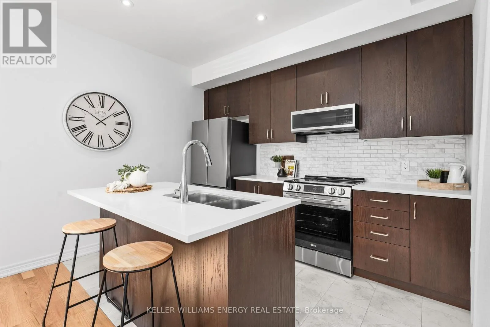 Cross Streets: Baldwin St & Carnwith Dr. ** Directions: Head north on Baldwin St, turn right on Carnwith Dr E, then left onto Sorbara Way. The complex loops around and 62 Sorbara Way is along the inner curve. Location, location, location! Welcome to this rarely offered end-unit townhome nestled in the heart of Brooklin, one of Whitby's most sought-after communities. This home offers over 1300 sq. ft. of thoughtfully designed living space with 3 bedrooms and 3 bathrooms, this home perfectly combines modern comfort, functionality, and everyday convenience. Situated steps from highly rated schools, parks, baseball diamonds, and public transit, and just a short drive to downtown Brooklin, Hwy 407, and Hwy 412, this home provides access to all essential amenities while maintaining the charm of small-town living. Step inside to discover a bright, open-concept main floor where the living, dining, and kitchen areas flow effortlessly together ideal for everyday living or entertaining guests. The modern kitchen features quartz countertops, stainless steel appliances, smooth ceilings, and pot lights, offering a fresh and stylish space to gather and unwind. Natural light fills the home, enhanced by the desirable end unit layout. Upstairs, retreat to three spacious bedrooms, each with hardwood flooring throughout. The primary bedroom serves as a peaceful escape, complete with a walk-in closet and a four-piece ensuite featuring a double vanity and glass shower. Convenient upper level laundry adds practicality and ease to your daily routine. Venture downstairs to find an unfinished basement offering endless potential for a recreation room, home gym, or future living space ready for your personal touch. Outside, enjoy a private backyard and a 1-car garage with additional driveway parking, enhanced with garage ceiling insulation to keep the above bedroom warm and a smart MyQ garage door opener. Don't miss your chance to experience modern living in the heart of Brooklin. With its open concept layout, stylish finishes, and prime location, this home truly offers the best of comfort and community living. (id:27476)
