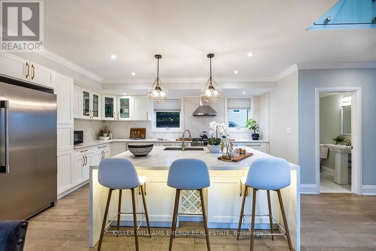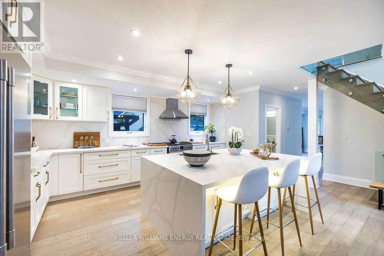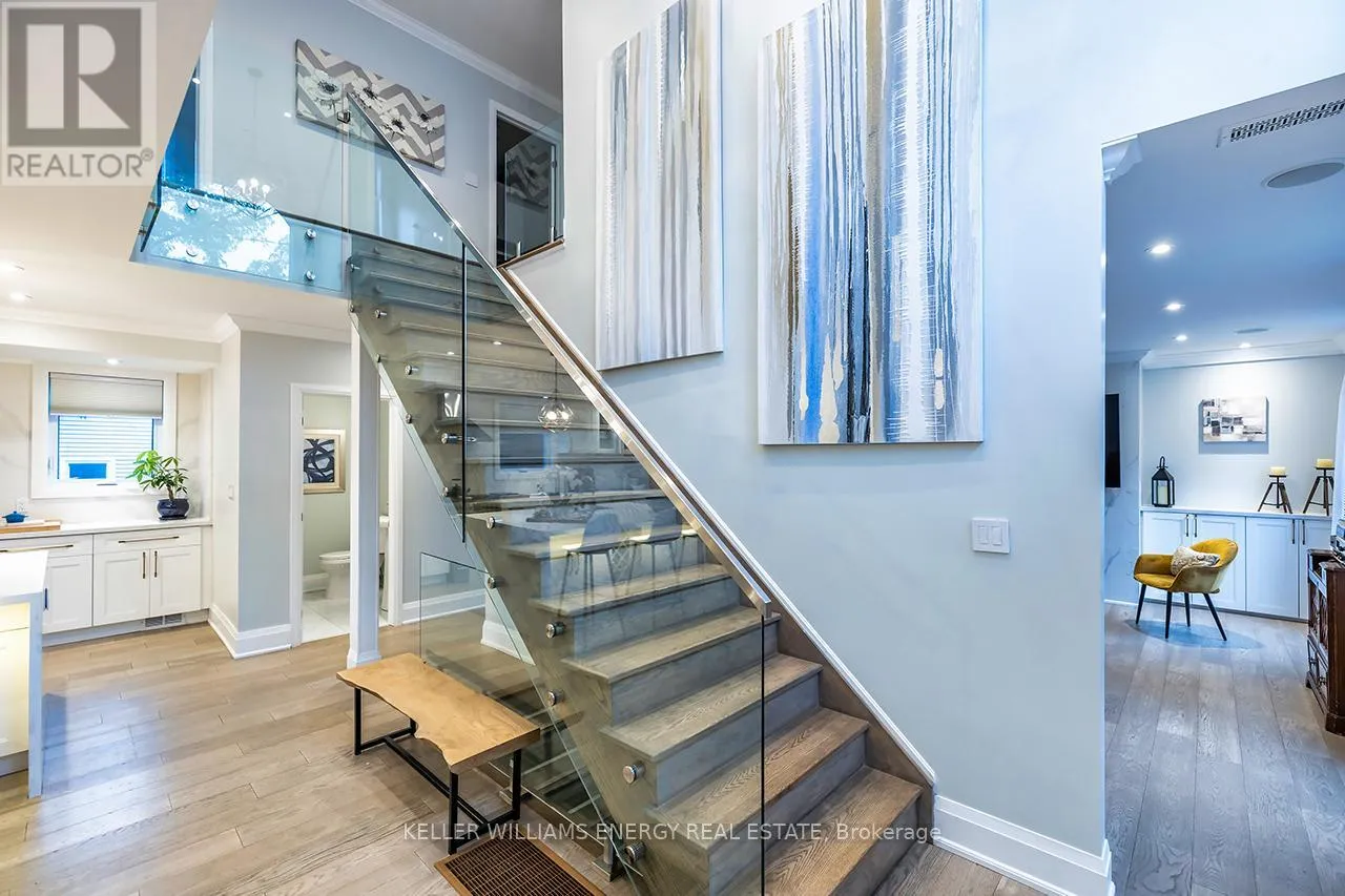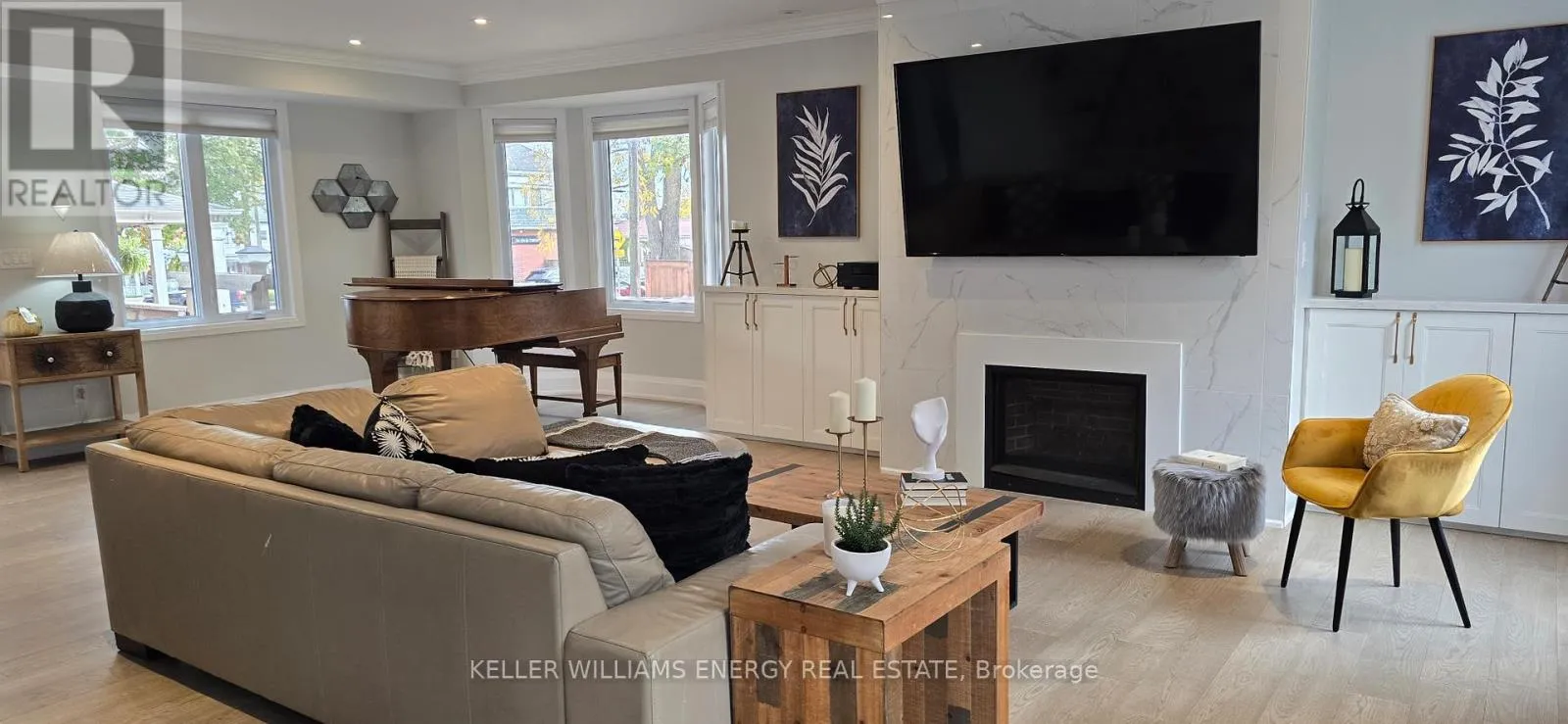Centre St. N and Mary St. N A Home That Defines WOW Factor! This custom-built 4+1 bedrm, 4-bath home blends timeless design with modern comfort, offering an unparalleled living experience, ideal for families or multi-generational living.Fr the moment you enter, the stunning 20 ft foyer where a breathtaking glass staircase serves as the centerpiece, leading gracefully to the upper level & setting the tone for the modern elegance found throughout.The chef-inspired kitchen is a showstopper, featuring quartz counters, backsplash, waterfall island, gas stove, custom cabinetry, professional b/i fridge & freezer, under-cabinet lighting & integrated surround sound-perfect for everyday living or entertaining.The spacious living room offers a separate entrance, gas fireplace, b/i cabinetry & an abundance of natural light, blending comfort & style. Upstairs, you'll find 4 generous bedrms & a convenient 2nd flr laundry rm with motion-sensor lighting. The primary suite is a true retreat with cathedral ceilings, a spa-inspired ensuite & w/i closet. One of the additional bedrms includes a sleek electric fireplace, adding warmth & charm.The lower level offers exceptional versatility for extended family or guests, boasting a large Open concept family rm, fifth bedrm with w/i closet & a 3 pc ensuite.With pot lights, hardwood flring & above-grade windows, the space feels bright, open, & inviting.Step outside to a professionally landscaped, low-maintenance backyard designed for privacy & relaxation. Featuring interlocked stamped concrete, custom gardens & a hot tub, every element of the outdoor space has been thoughtfully curated for year-round enjoyment.Parking is unmatched with both a private triple driveway & a separate private double driveway, offering exceptional space & flexibility.With unparalleled upgrades, a functional multi-generational layout & a prime location this rare gem combines luxury, lifestyle & comfort in one extraordinary package.Don't miss your chance to call this truly unique property home! (id:27476)