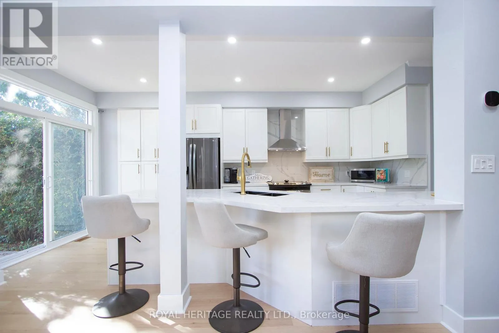 Cross Streets: Victoria St W/Seaboard Gate. ** Directions: Victoria St. W/Seaboard Gate. Welcome to this Turn-Key, Upgraded Detached Home in Desirable Port Whitby! Situated on a large premium lot, this beautifully renovated 3-bed, 4-bath home offers modern style and comfort throughout. The upgraded kitchen features quartz counters, quartz backsplash, a large island and an open layout flowing to the bright living and dining areas with fireplace. Main floor showcases new engineered hardwood; upper level offers hardwood, a spacious family room with fireplace and walkout to balcony, plus a primary suite with fireplace and spa-like ensuite. Finished basement with vinyl plank flooring, extra bath, gym area, and office. Loads of natural light throughout the house! Walk out to a huge patio and extra-deep fenced yard with newer above-ground pool and deck-perfect for entertaining. Prime location close to parks, Lake Ontario, schools, Abilities Centre, shopping, restaurants & GO Transit. Truly move-in ready-you'll be impressed! See drone video. (id:27476)