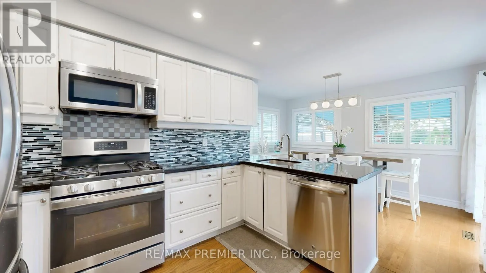 Thickson and Rossland Impeccably renovated 4-bedroom home on a large pool-sized lot, offering a spacious combined living/dining room, a bright greenhouse kitchen with granite counters, backsplash, stainless steel appliances, and walk-out to a covered patio. The inviting family room features a cozy fireplace and modern pot lights, while the upper level boasts 4 generous bedrooms including a primary retreat with walk-in closet and ensuite bath. Renovated throughout with elegant crown moulding, hardwood staircase, newer garage doors, 200 AMP service, roof (2016), furnace (2014), and HWT (rental). Major upgrades include a Reliance Smart Air conditioning system (2021), exterior painting (2024), full interior paint (2025), interlocking patio (2022), and pot lights around the home (2023). The finished basement with separate entry showcases a stunning Italian kitchen with marble counters, washer/dryer connections with modern cabinetry, high ceilings with extra insulation, pot lights, waterproof vinyl flooring (2023), an additional bedroom/gym, den/office, rec room, 3-piece bath, and a newly purchased refrigerator (2025). A true move-in ready residence combining timeless elegance, thoughtful upgrades, and endless possibilities. perfect Basement for in-law family or potential income. (id:27476)
