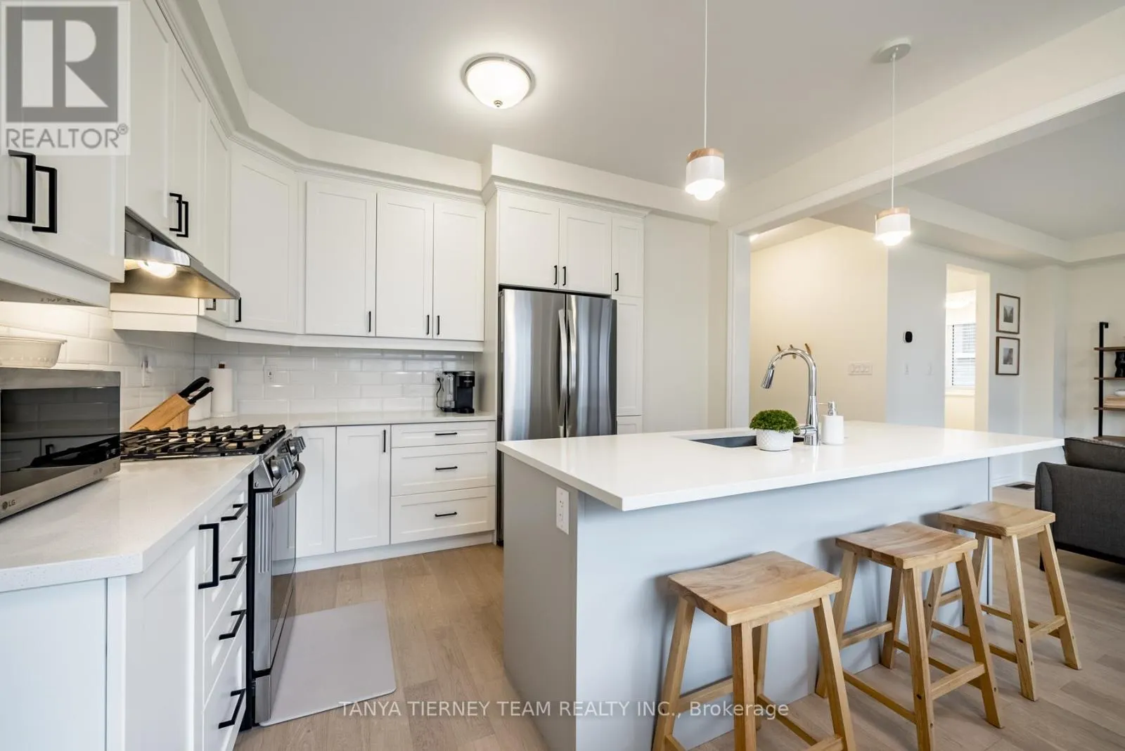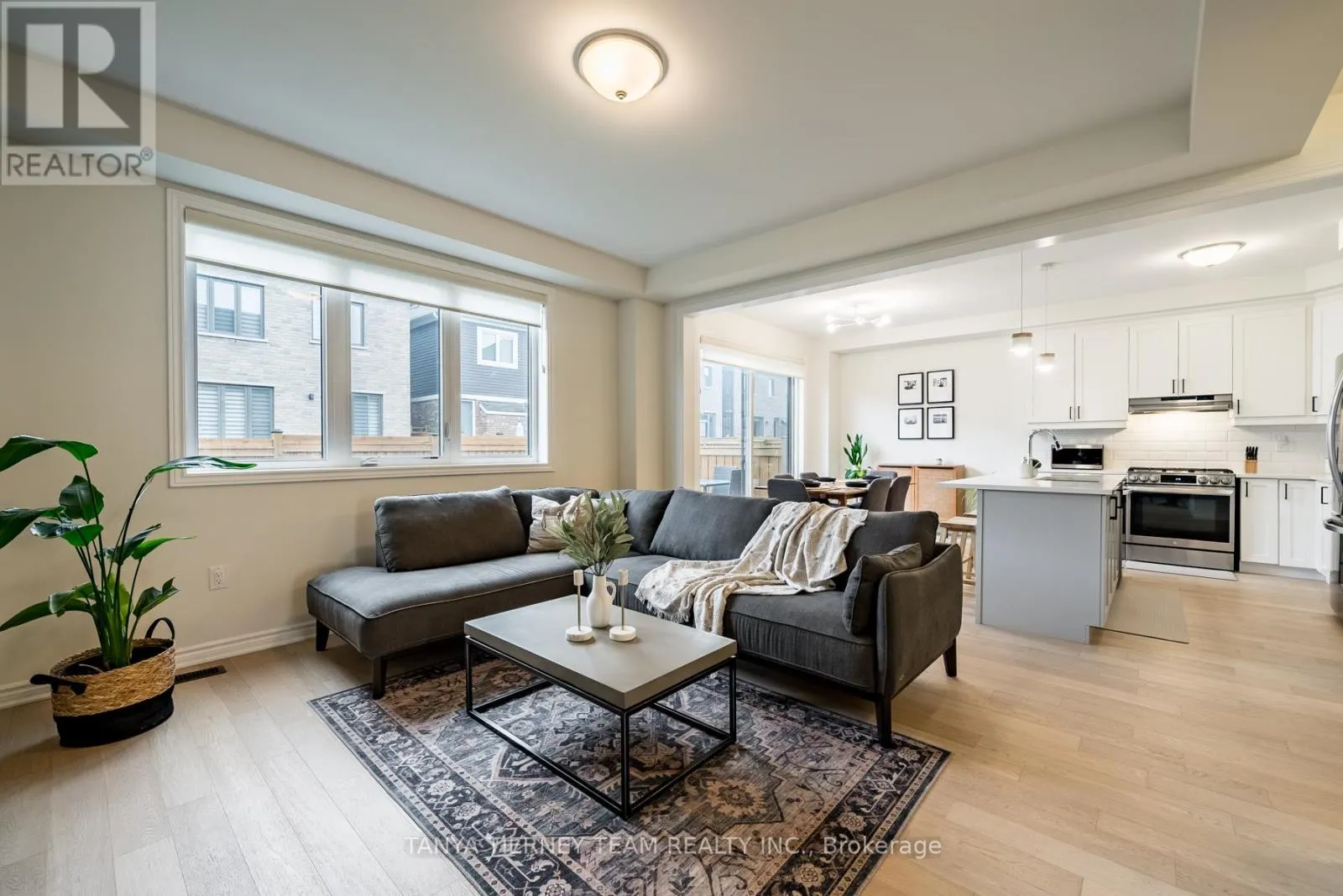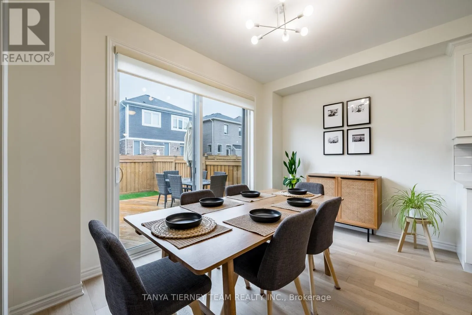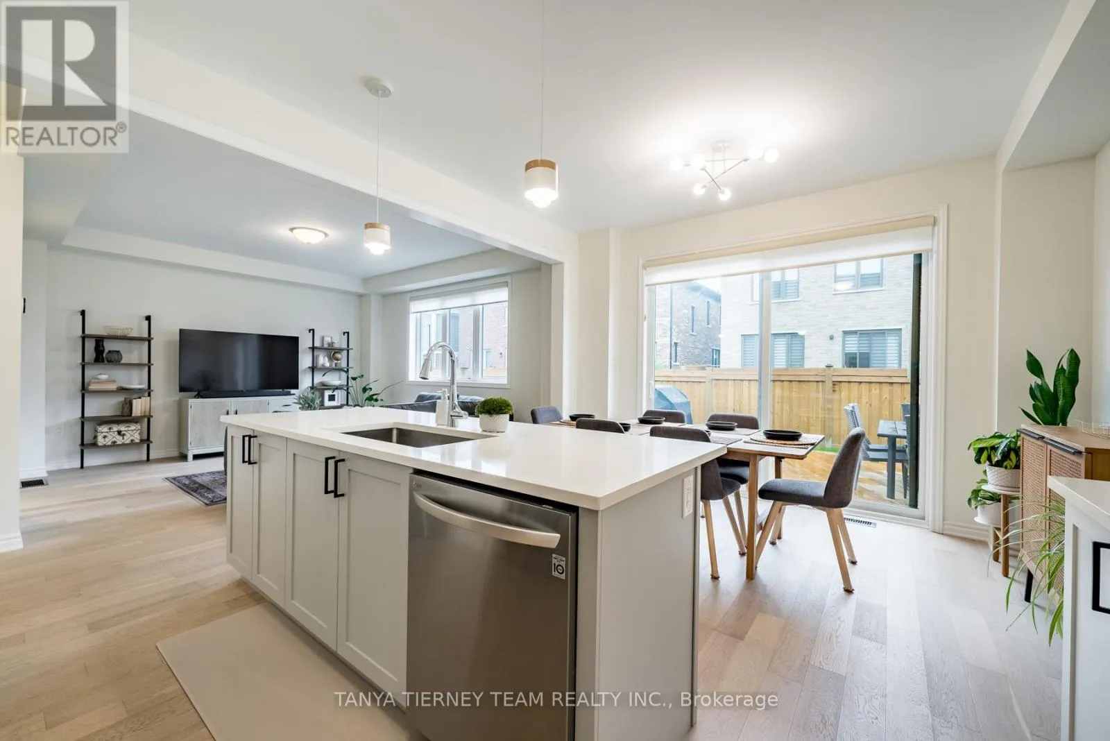 Rossland Rd E & Des Newman Blvd Amberlee model by Mattamy Homes! This 4 year new, 3 bedroom, detached home features an inviting front porch that leads through to the gorgeous open concept main floor plan with cathedral ceilings in the foyer, hardwood floors including staircase & great size windows creating an abundance of natural light throughout. Gourmet kitchen complete with upgraded cabinetry, Caesarstone counters, working centre island with breakfast bar & pendant lighting, subway tile backsplash, pantry & LG stainless steel appliances including gas stove. The spacious breakfast area boasts a sliding glass walk-out to a new deck & fully fenced backyard - perfect for entertaining! Upstairs offers 3 very generous bedrooms, all with walk-in closets. The primary retreat with 3pc spa-like ensuite with Caesarstone vanity & glass shower. Parking is ample, with a 2 car garage plus driveway space for 4 additional vehicles. Situated mins to highway 401/412 for commuters, parks & all amenities! (id:27476)