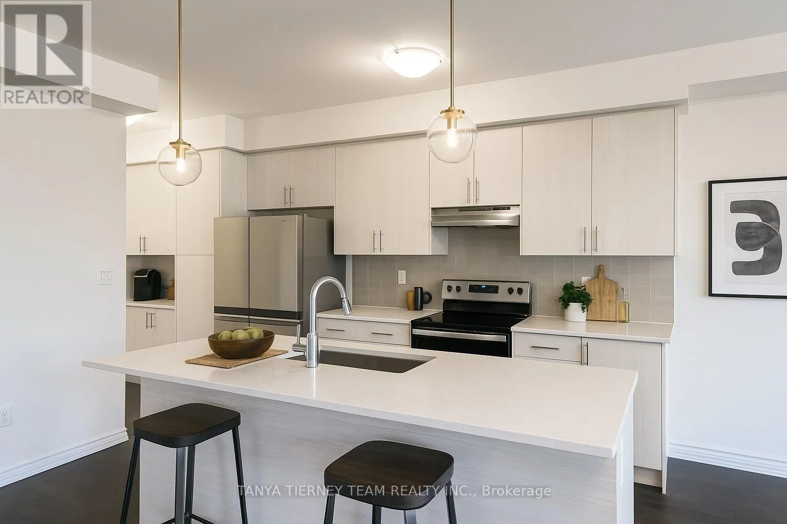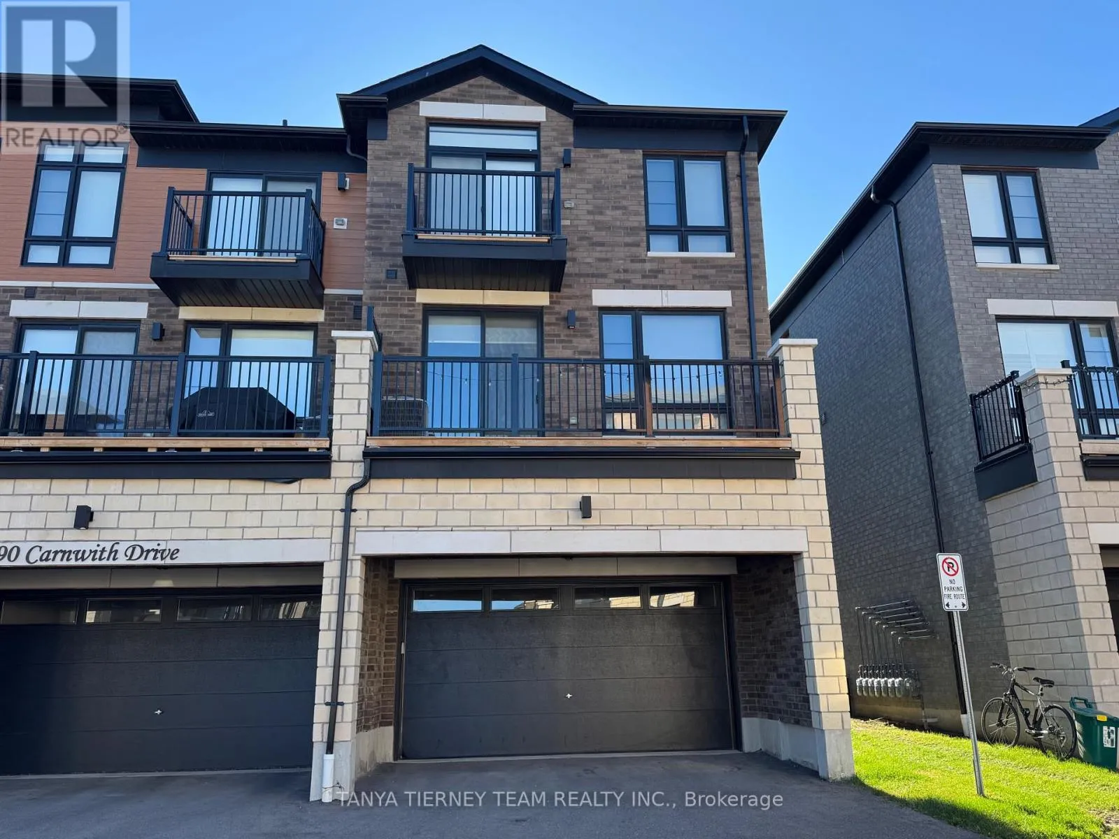 Thickson Rd & Carnwith Dr E Rarely Offered End Unit, Double Garage Townhome in Sought After Brooklin! Welcome to this stunning 3-bedroom, 3-year-new, 3-storey townhome, offering a perfect blend of modern luxury and everyday comfort in one of Brooklin's most desirable communities. With approximately 2188 sqft of beautifully designed living space, this home showcases bright, open-concept interiors filled with natural light and high-end finishes throughout. Step inside to discover gorgeous hardwood floors, an elegant staircase with wrought iron spindles, and spacious principal rooms that create an inviting flow ideal for entertaining or family living. The upgraded eat-in kitchen is a true showpiece, featuring butlers pantry, quartz countertops, a stylish subway tile backsplash, large centre island with breakfast bar, and stainless steel appliances-perfect for the home chef. The family room offers plenty of space to relax and unwind, complete with a sliding glass walk-out to an expansive deck/balcony-a perfect spot for summer BBQs or morning coffee. Designed for entertaining in the formal dining area with garden door walk-out to a balcony with front yard views. Upstairs, the primary retreat is a private sanctuary, boasting a walk-in closet, a 5pc spa-inspired ensuite with relaxing soaker tub, and a garden door walk-out to your own private balcony. Two additional bedrooms are generously sized and share a beautifully appointed main 4pc bathroom. This rarely offered model also includes a double car garage plus parking for 2 in the driveway, convenient 2nd floor laundry, and ample storage space throughout. Located just steps from top-rated schools, parks, trails, downtown Brooklin shops, dining, and transit, this home offers both elegance and convenience in an unbeatable location. Move-in ready and truly turnkey - this is the one you've been waiting for! (id:27476)