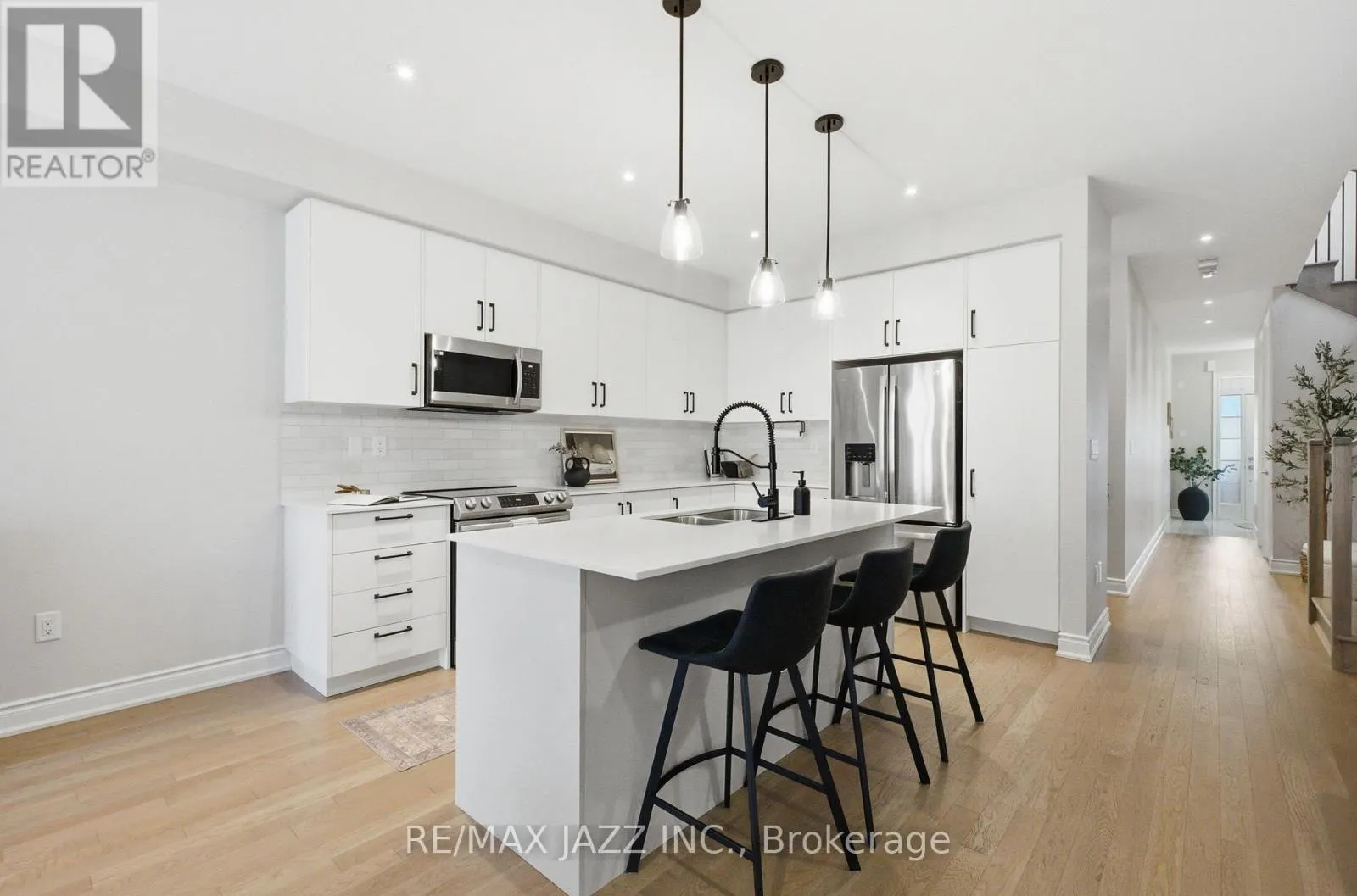 Cross Streets: Taunton Rd W & Coronation. ** Directions: Taunton Rd W to Coronation. Built in 2022, this stunning 3-bedroom, 4-bathroom home is a must see! Step inside to 9-ft ceilings and beautiful hardwood floors throughout the open-concept main floor; ideal for both entertaining and everyday living. The bright, airy layout is filled with natural light, featuring a gorgeous kitchen that flows effortlessly into the dining and living areas. Upstairs, enjoy the convenience of a laundry room, two spacious bedrooms, and a luxurious primary suite complete with two walk-in closets and a private ensuite. The fully finished versatile basement includes a separate side entrance; ideal for extended family, guests, or recreation space. Outside, the home shines with interlocking along the side and backyard, plus a 10x10 shed for extra storage. With space for four cars and no sidewalk to shovel, this property delivers effortless comfort and convenience! Perfectly located in the highly sought-after Whitby Meadows, just minutes from Highway 412 with easy access to 407 and 401, this home keeps your commute simple and your weekends full. Enjoy being close to shopping, parks, splash pads, and green space; everything your family needs right at your doorstep! (id:27476)