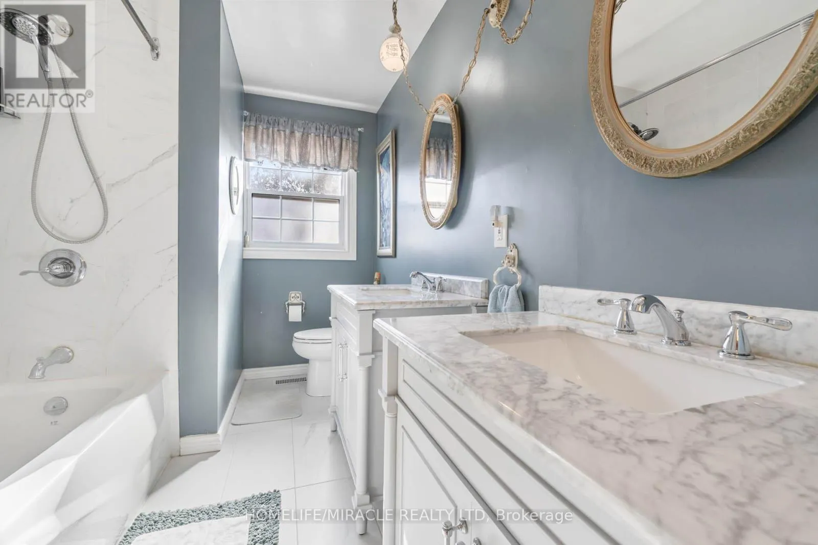 Dundas/Garrard 73 Garrard Rd presents a once-in-a-lifetime chance to own a substantial property on an unparalleled, oversized 60' x 190' lot in the prime, highly-sought-after Blue Grass Meadows community of Whitby. This meticulously maintained 4-bedroom, 4-bathroom detached backsplit is the epitome of pride of ownership, offering an exceptional blend of suburban tranquility and urban convenience. The home boasts four levels of finished living space, perfect for any large or extended family. The main floor features newer hardwood flooring in the bright, combined living and dining area, ideal for hosting. The heart of the home is the expansive, sunken family room, complete with newer hardwood, a beautiful fireplace and a desirable walk-out to the incredible backyard oasis. The family-sized, eat-in kitchen overlooks the stunning grounds, awaiting your personal touch. The upper level provide privacy with three generously sized bedrooms, including a master suite with a 3-piece ensuite. The Master and the second bedroom both feature walk-outs to a shared sun deck, a quiet retreat for morning coffee. The lower level is a fantastic asset for savvy investors or those seeking flexible living, as it offers a large recreation room and a dedicated separate entrance, creating excellent potential for a future in-law suite or rental unit (Buyer to verify zoning and permits). The defining feature remains the massive, park-like backyard, a genuine rarity in this area. Imagine endless summer possibilities, from gardening to family gatherings, all within your private domain. Located moments from Dundas Street amenities, highly-rated schools (Dr. Robert Thornton PS), and seamless access to the 401/412/407, this location ensures minimal commuting time and maximum lifestyle convenience. Homes with this lot size and potential are exceptionally scarce. Don't miss this outstanding opportunity to invest in your future and secure a truly unique Whitby address! (id:27476)