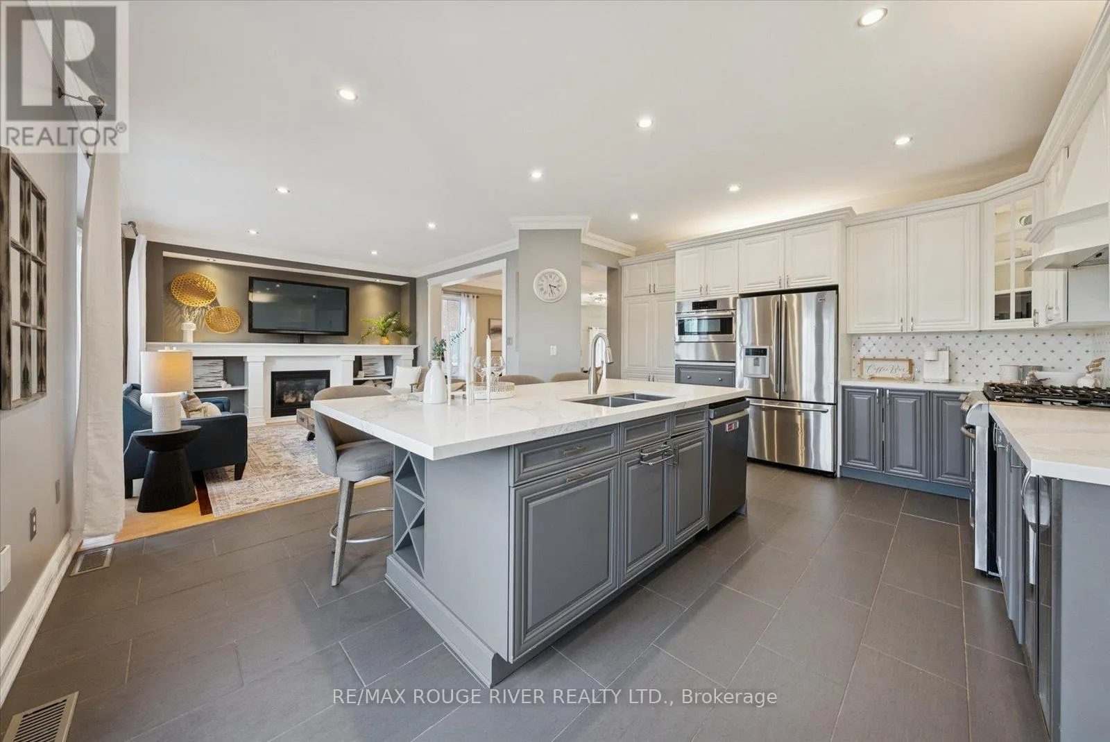 Cross Streets: Carnwith/Montgomery. ** Directions: West Brooklin. Welcome to 15 Eastgate Circle, one of Brooklin's most sought-after layouts set on a rarely offered, premium 150-foot pie-shaped lot with no neighbours behind - the ultimate in privacy and tranquility.This stunning home offers over 3,000 sq. ft. of bright, open-concept living space and features 3+1 bedrooms and 4 bathrooms. The beautifully renovated kitchen is a true showpiece, complete with stainless steel appliances, a gas stove, built-in oven, quartz countertops, and an impressive island, perfect for family gatherings and entertaining.Relax in the dramatic family room with soaring 14-foot ceilings and a walkout to a private balcony, ideal for enjoying warm summer evenings. Additional highlights include gleaming hardwood floors, abundant pot lighting, second-floor laundry, and a professionally finished basement with above-ground windows, a fourth bedroom, and a three-piece bathroom.Step outside to your fully hardscaped backyard oasis, featuring a large multi-tiered deck with glass railings, a hot tub and gazebo - the perfect retreat for relaxation or entertaining, with plenty of space for children to play.Located just steps from top-rated schools, the high school, parks, and downtown Brooklin's amenities, this home offers the perfect blend of luxury, privacy, and lifestyle. (id:27476)