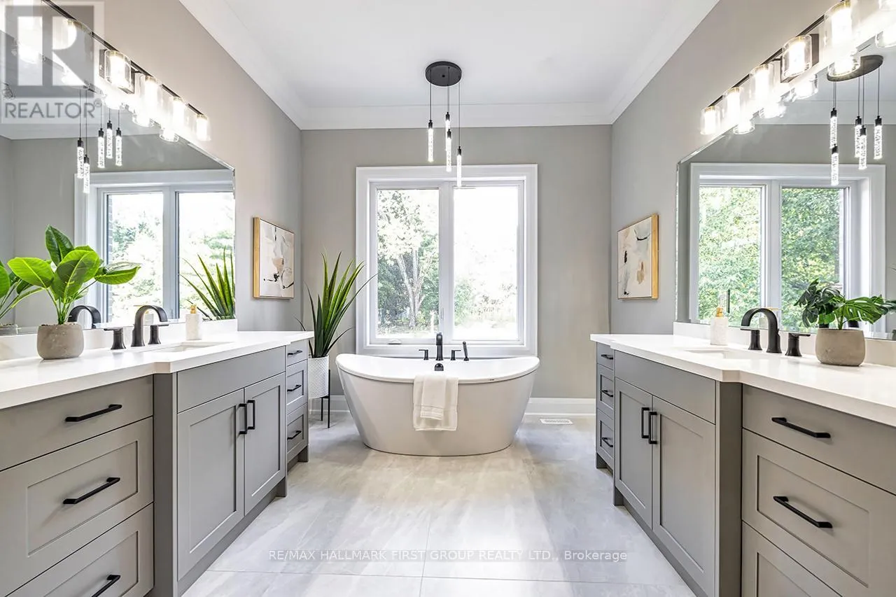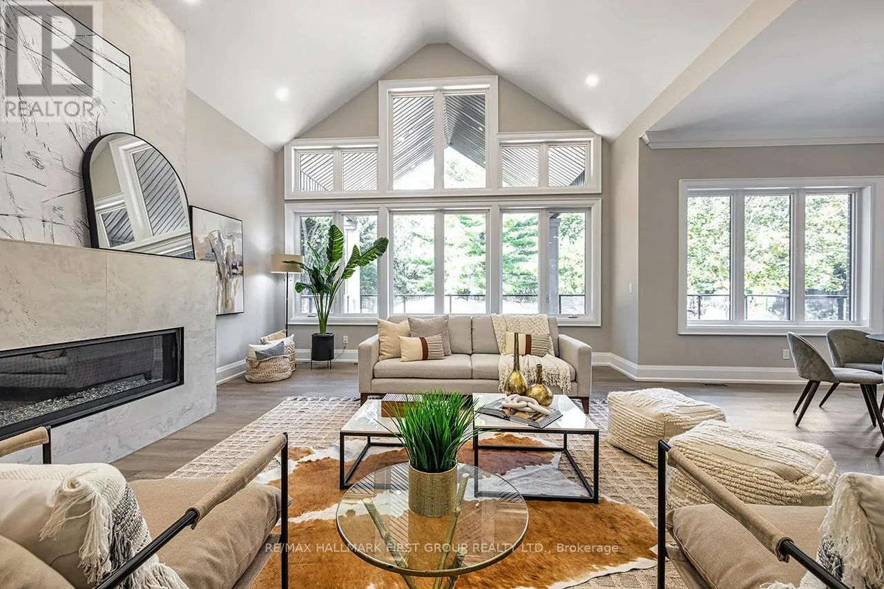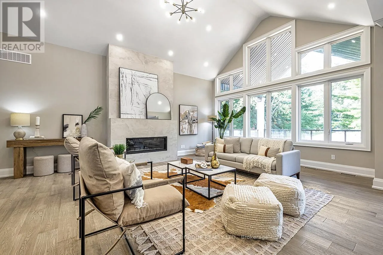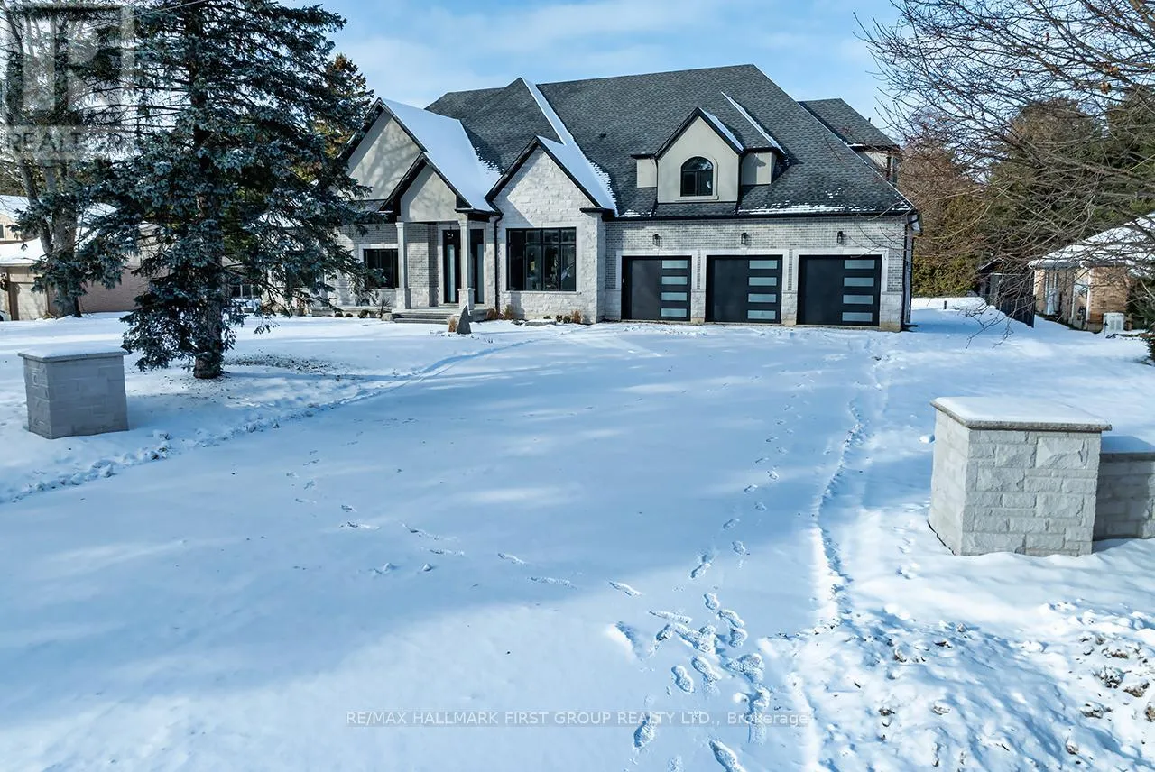 Coronation and Highway 7 Winter-Ready Estate-Style Bungaloft in Macedonian Village - Brand New with Tarion Warranty. Welcome to 10 Phillips Road, a custom-built luxury bungaloft with a walkout Basement nestled on a 125' x 278' premium lot in the exclusive, private community of Macedonian Village, Whitby. Surrounded by mature trees and winter scenery, and just a short walk to Heber Down Conservation Area, this Tarion-warranted residence offers over 4,000 sq. ft. of meticulously crafted living space-perfect for cozy winter living and year-round enjoyment. Step into the impressive 12-ft foyer, where an open-concept layout and expansive windows capture serene seasonal views and natural light. The great room is a true winter showpiece, featuring a 17-ft cathedral ceiling and a gas fireplace-an ideal setting for gathering, relaxing, and enjoying the warmth of home. The chef-inspired kitchen elevates every meal with Fisher & Paykel built-in appliances, quartz countertops, and a full-height quartz backsplash. A formal dining area allows for effortless entertaining throughout the winter season. The main-floor primary suite is a peaceful retreat, complete with an 11-foot tray ceiling with pot lights, an oversized walk-in dressing room with custom built-ins, and a spa-like 5-piece ensuite featuring a curbless glass shower and double vanity. Built-in speakers, a central vacuum, and upscale finishes add to the home's refined comfort. A third main-floor bedroom doubles perfectly as a home office. 10 Phillips blends architectural elegance with everyday functionality, all set within a tranquil community steps from trails and a neighbourhood park. Enjoy the peace of nature while staying close to town conveniences. Immediate occupancy available. (id:27476)
