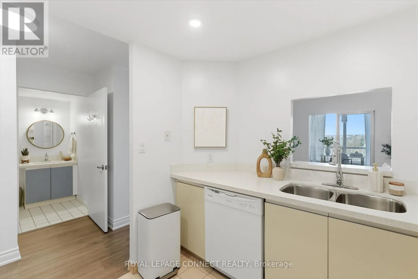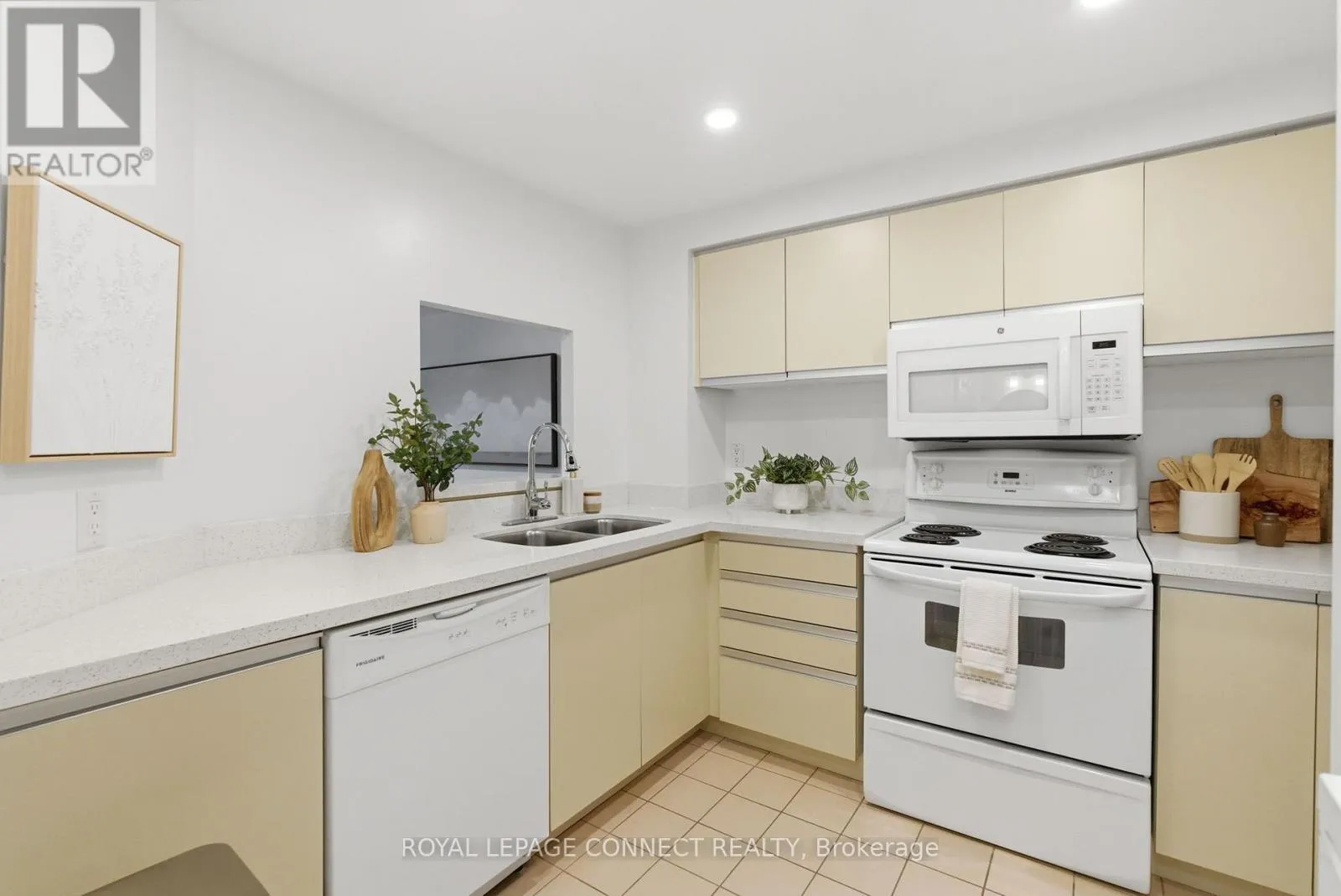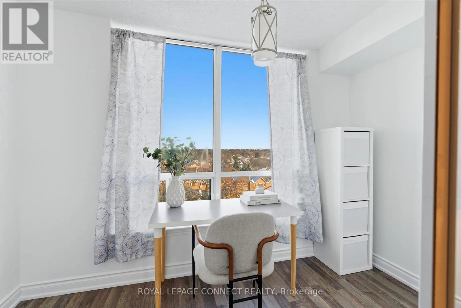 Cross Streets: Rossland Rd E/Garden St. ** Directions: Garden St N to Rossland Rd E. Updated and move in ready condo offers the perfect blend of comfort, convenience, and low maintenance living. Just 5 minutes to Highway 407 and surrounded by fantastic amenities, parks, and top rated schools, this location truly has it all. Inside, you'll find a functional floorplan with fresh neutral colours throughout, stylish new light fixtures, and sleek laminate flooring. The kitchen offers ample countertop space, new pot lights, ensuite laundry and overlooks the spacious main living area. A separate dining room is the perfect spot to host dinners but also provides flexibility - customize it to suit your lifestyle. Use it for meals, at home gym or office or convert it to another living space. Just off the living room, you can enjoy the lovely den with glass doors, showcasing an impressive easterly view and offering the perfect spot for a home office or reading nook. The generous primary bedroom features a large window that fills the space with natural light. You'll also enjoy the convenience of ensuite laundry and an updated washroom, plus one owned parking spot. Building amenities include an indoor pool, hot tub, billiards room, party room, and fully equipped fitness centre. This unit is an exceptional affordable opportunity - ideal for first time buyers, downsizers, or anyone seeking a modern, easy care home in a fantastic community. Move in and enjoy the best of Whitby living! (id:27476)