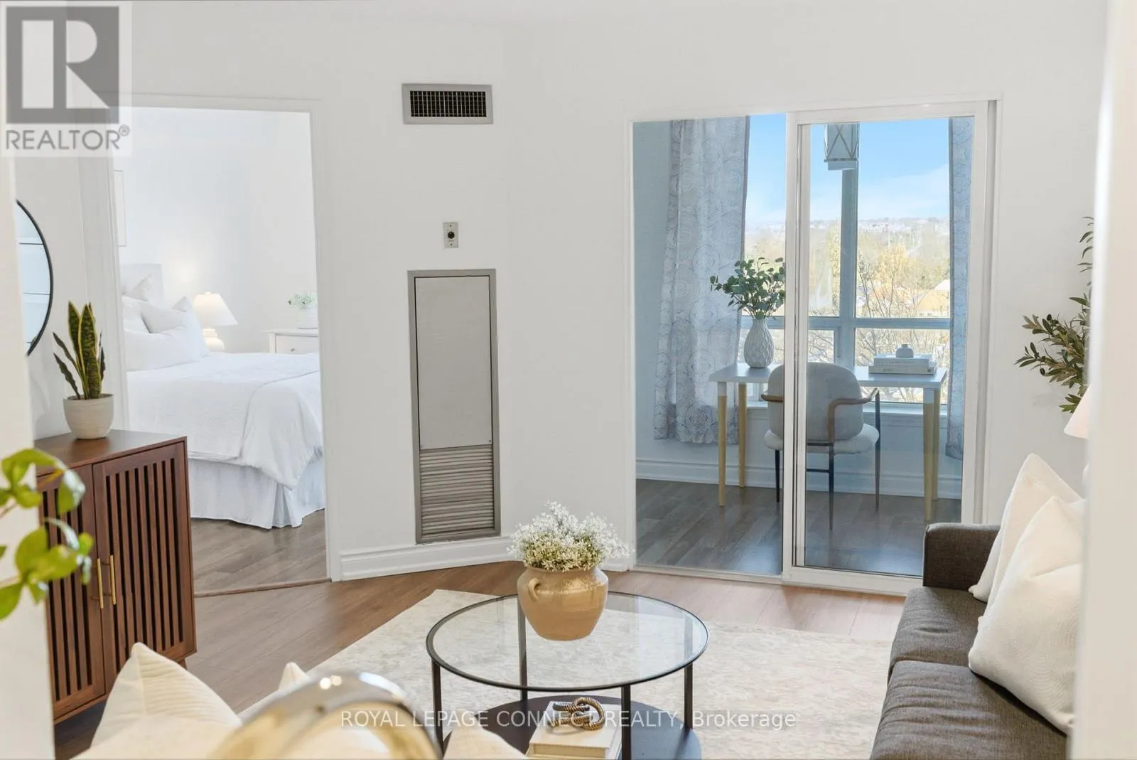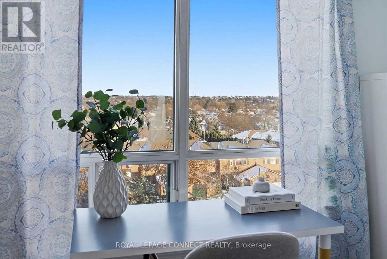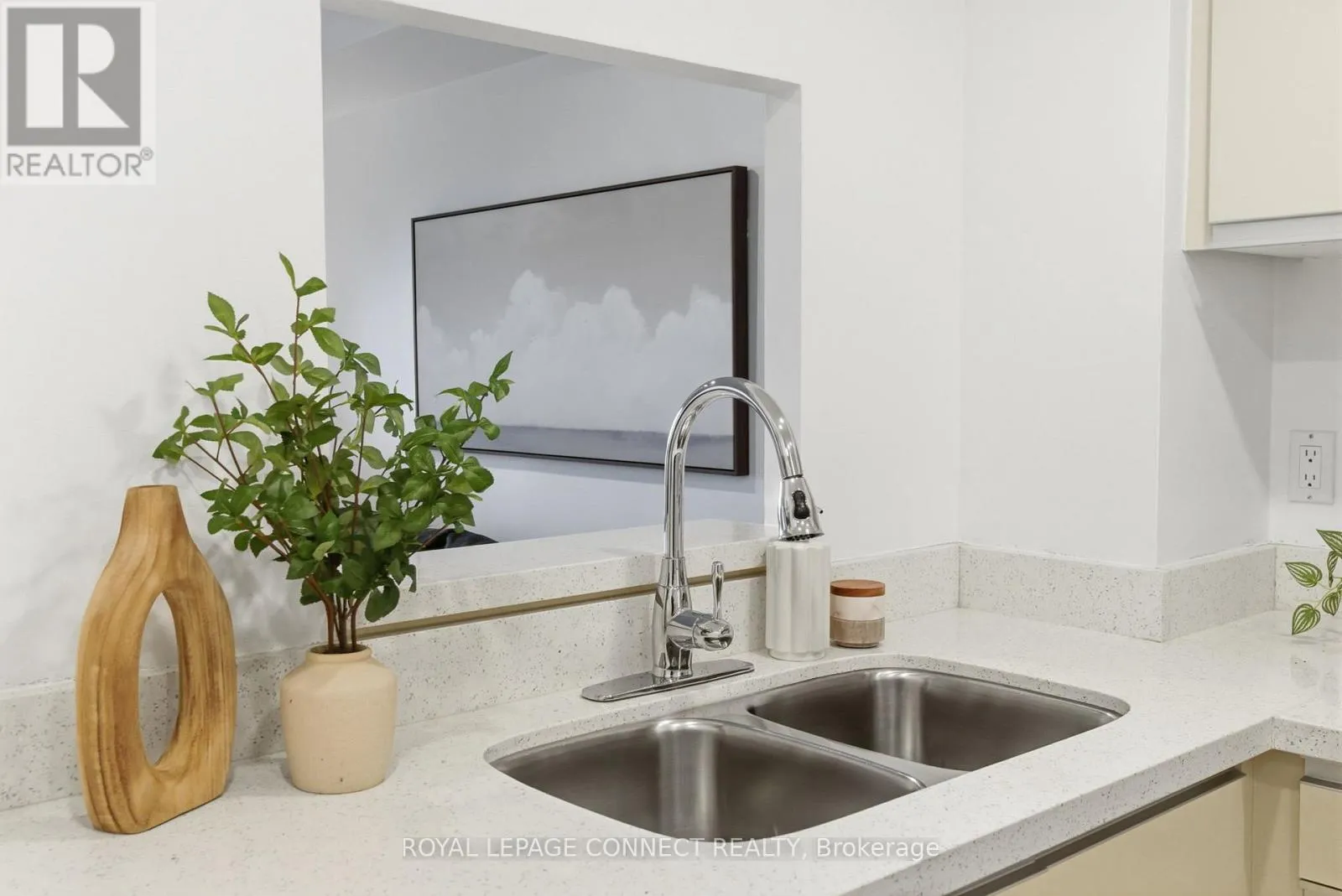 Cross Streets: Rossland Rd E/Garden St. ** Directions: Garden St N to Rossland Rd E. Updated and move in ready condo offers the perfect blend of comfort, convenience, and low maintenance living. Just 5 minutes to Highway 407 and surrounded by fantastic amenities, parks, and top rated schools, this location truly has it all. Inside, you'll find a functional floorplan with fresh neutral colours throughout, stylish new light fixtures, and sleek laminate flooring. The kitchen offers ample countertop space, new pot lights, ensuite laundry and overlooks the spacious main living area. A separate dining room is the perfect spot to host dinners but also provides flexibility - customize it to suit your lifestyle. Use it for meals, at home gym or office or convert it to another living space. Just off the living room, you can enjoy the lovely den with glass doors, showcasing an impressive easterly view and offering the perfect spot for a home office or reading nook. The generous primary bedroom features a large window that fills the space with natural light. You'll also enjoy the convenience of ensuite laundry and an updated washroom, plus one owned parking spot. Building amenities include an indoor pool, hot tub, billiards room, party room, and fully equipped fitness centre. This unit is an exceptional affordable opportunity - ideal for first time buyers, downsizers, or anyone seeking a modern, easy care home in a fantastic community. Move in and enjoy the best of Whitby living! (id:27476)