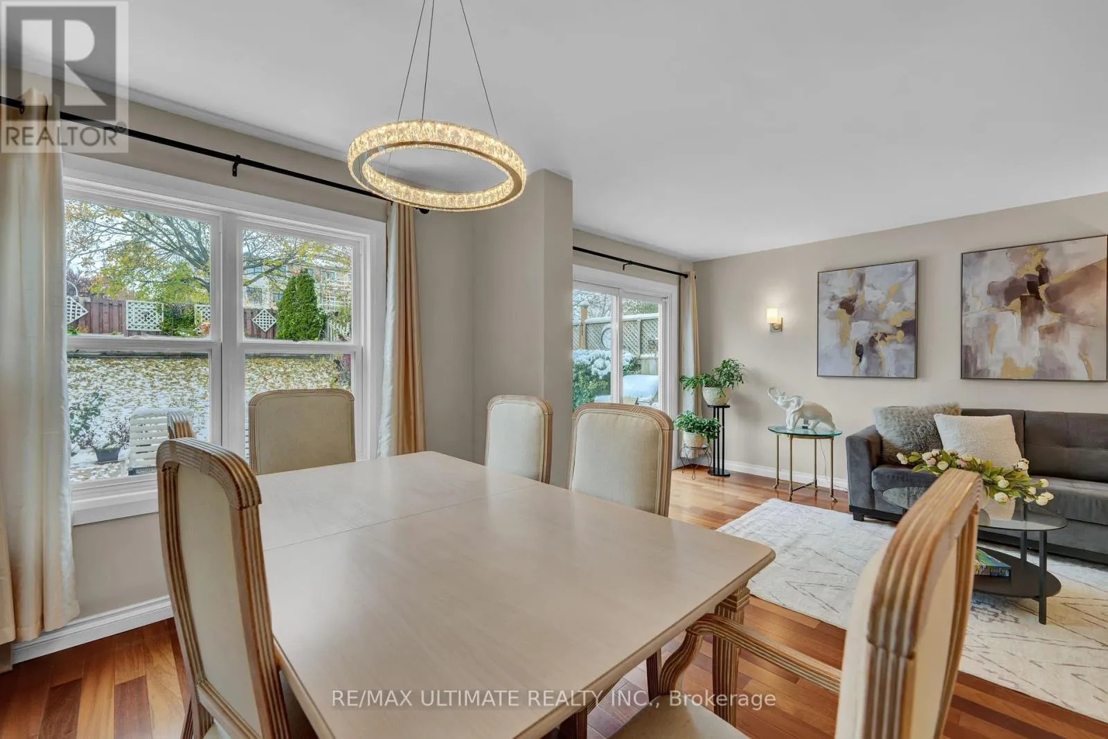 Cross Streets: Manning Rd/Garden St. ** Directions: North On Garden St, Left On Bradley, Right On Robinson Cres. This meticulously maintained all-brick family home sits on a rare, extra-deep 150 ft lot surrounded by a lush, professionally landscaped garden oasis, a true outdoor retreat. Step inside to discover a bright and airy open-concept living and dining area, ideal for entertaining family and friends. The modern custom kitchen is a chef's delight, featuring granite countertops, stainless steel appliances, pot lights, ample cabinetry and a built-in breakfast bar perfect for morning coffee or casual meals.The main floor boasts gleaming hardwood floors, an abundance of natural light with expansive windows and a seamless flow from the living/dining area to the private, fenced backyard. The family room offers its own cozy sanctuary, curl up with your favourite book or enjoy a movie night by the wood-burning fireplace. Upstairs, you'll find four generously sized bedrooms, including a primary suite with a custom 3-piece ensuite and a large walk-in closet with built-in organizers. All additional bedrooms are bright, spacious, and feature ample closet space. The professionally finished basement expands your living space with a large recreation/family room, a separate office or fifth bedroom, extra storage, and a cold room, perfect for in-laws, guests or teenagers seeking a little extra privacy. Step outside to your fully fenced backyard, a peaceful and private setting ideal for entertaining, gardenig or just relaxing under the stars. A convenient main floor laundry room adds to the home's functionality, as well as direct entry to garage from house. Recent Upgrades: Attic Insulation (Dec 2022), Windows (2023) Nestled in the desirable and family friendly Pringle Creek community surrounded by top-rated schools, beautiful parks, shopping and transit, this home offers the perfect balance of suburban charm and urban convenience. Fantastic curb appeal and stone walkway into home ** This is a linked property.** (id:27476)